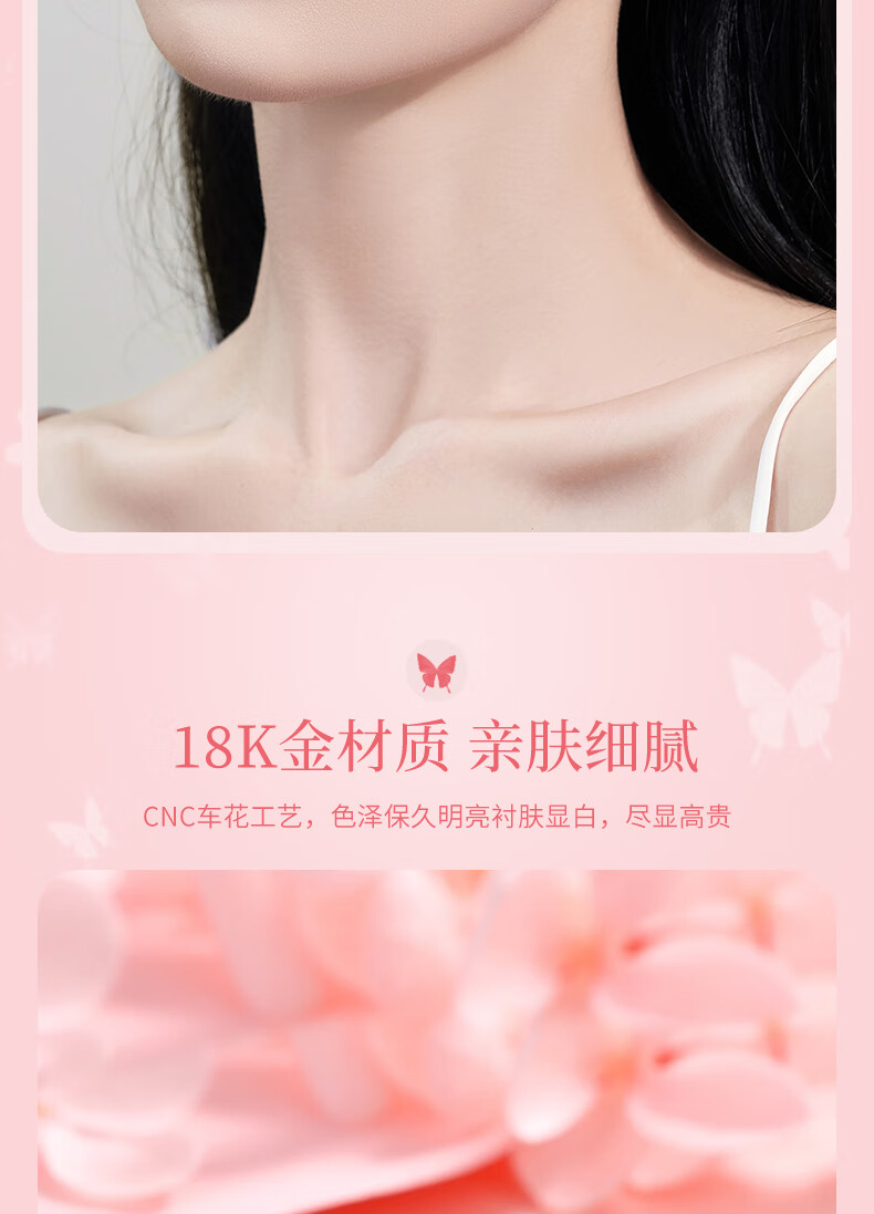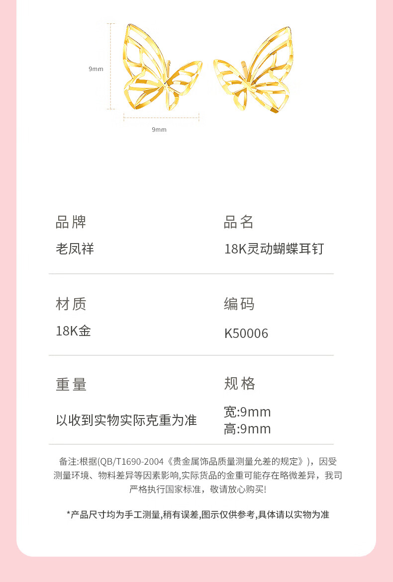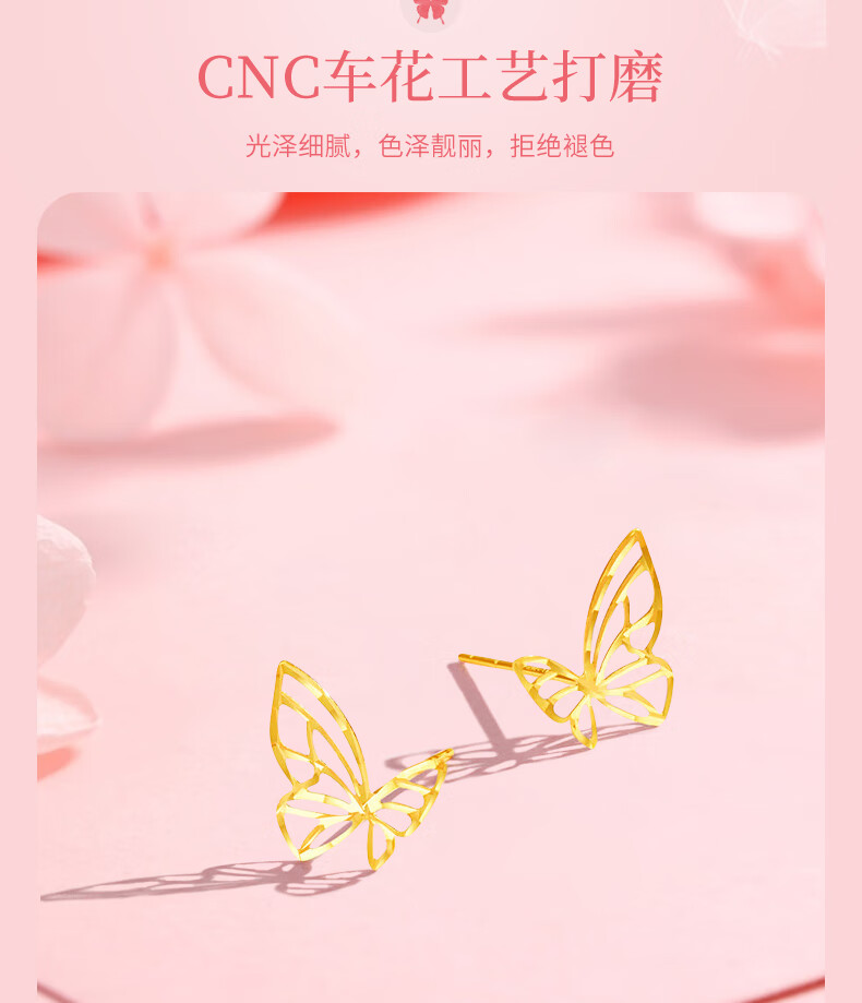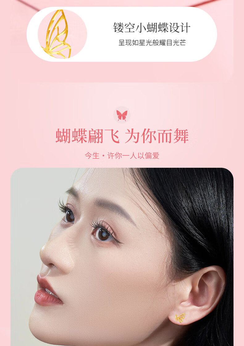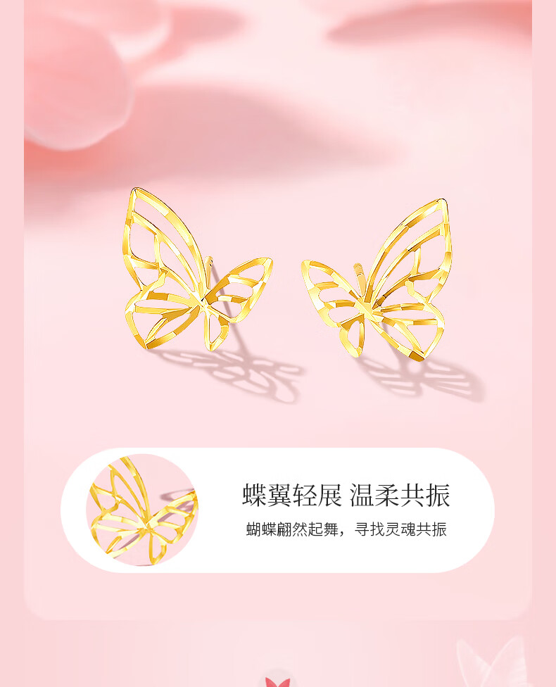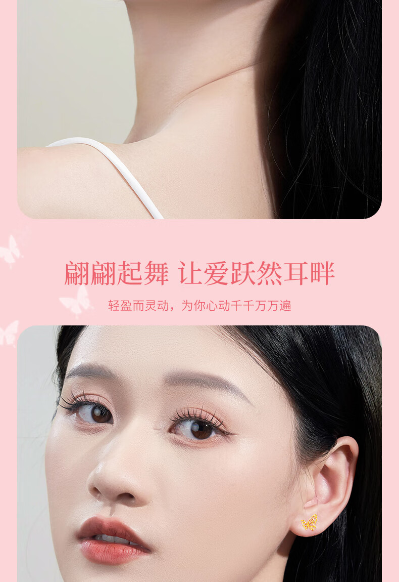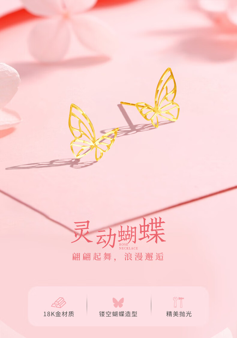 Lao Fengxiang Butterfly Gold Earrings for Women 18K Gold Earrings Wedding Anniversary Birthday Gifts for Girlfriends and Wife Smart Butterfly Earrings 18K