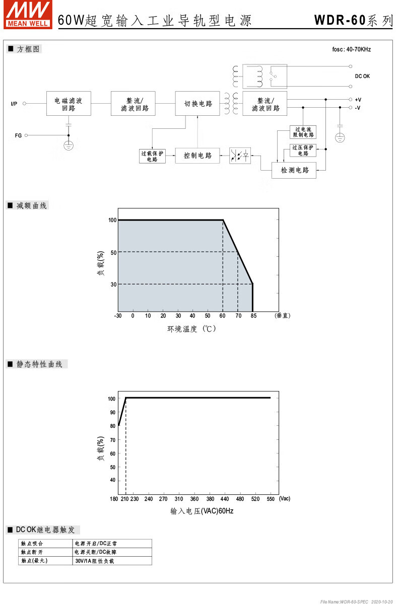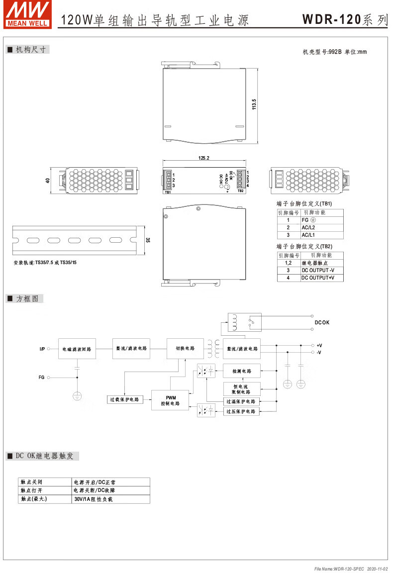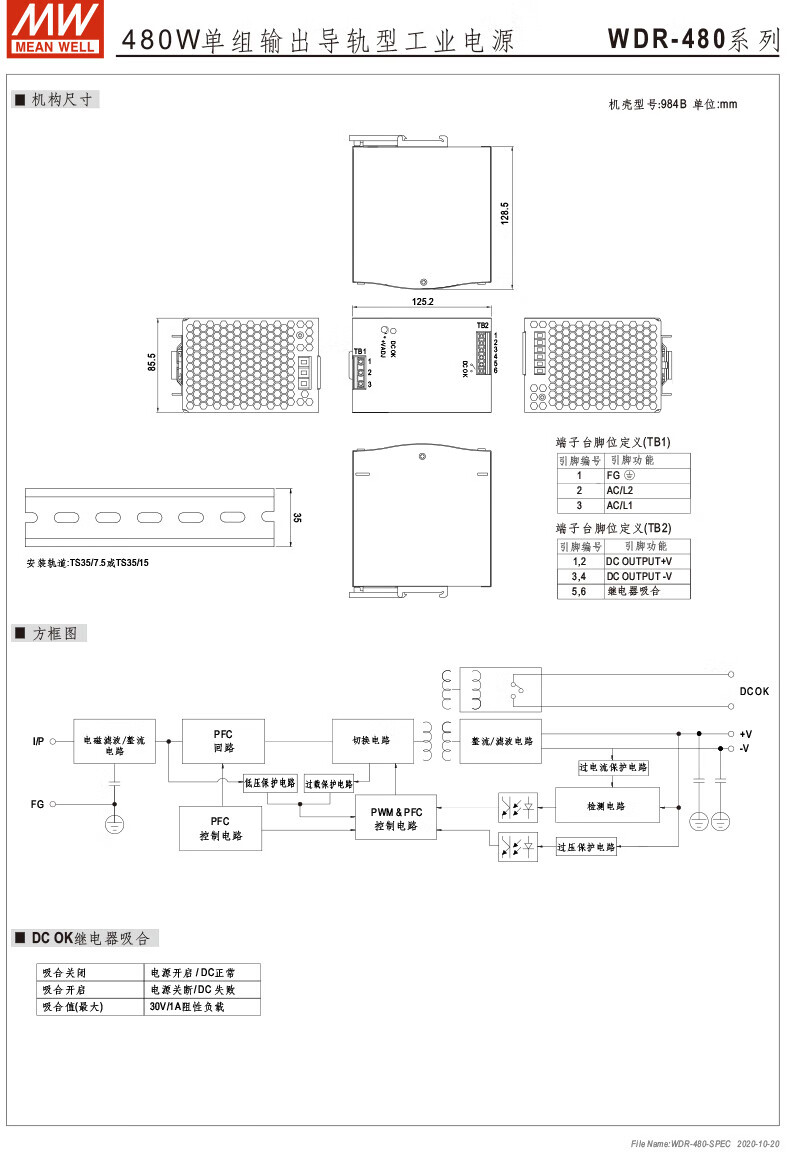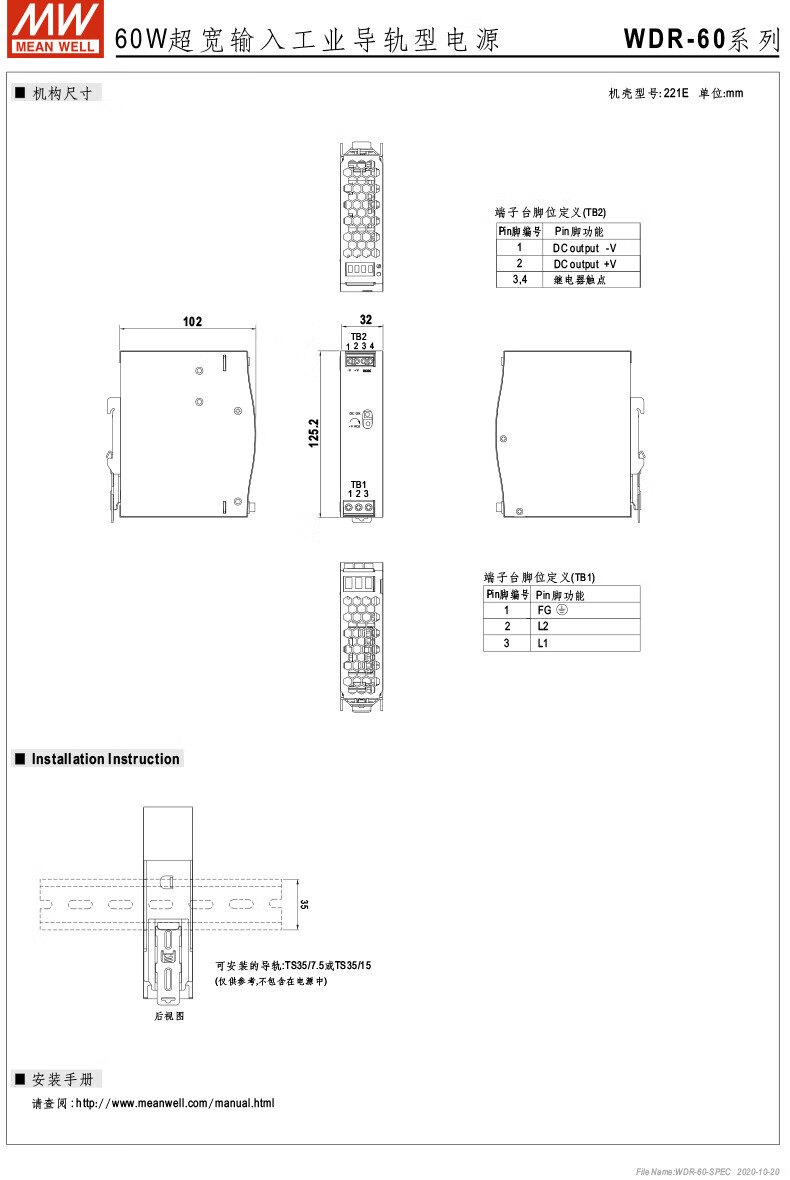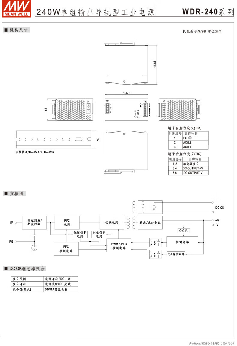 MEAN WELL guide rail 60/120/240/480 switching power supply 5/12/24/48 ultra-wide voltage input WDR-240-24