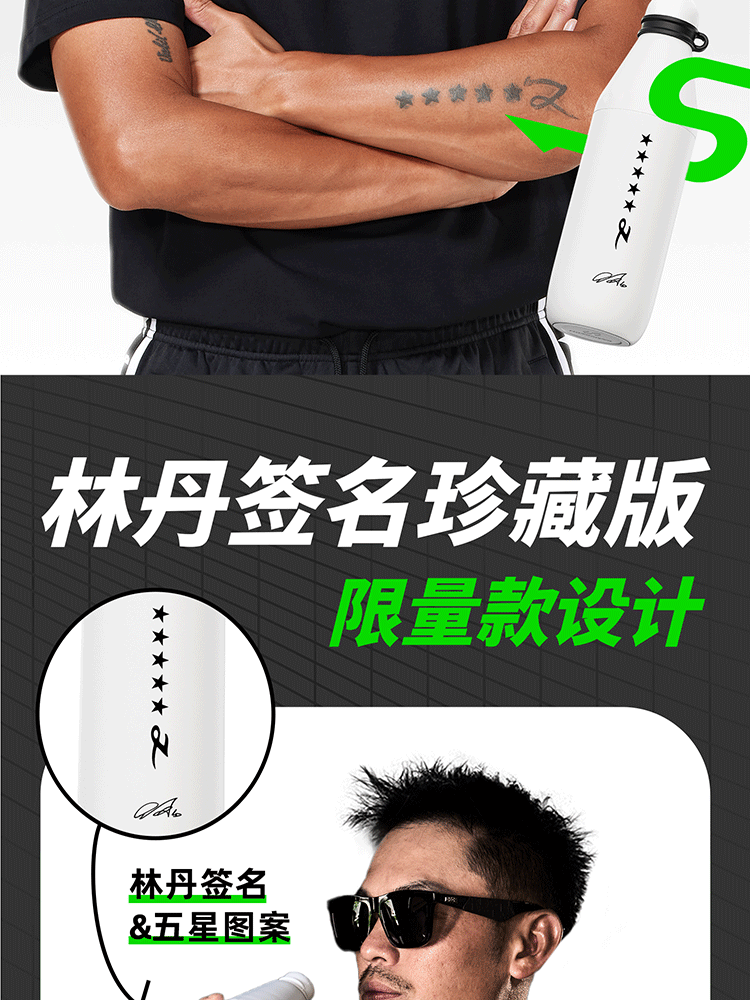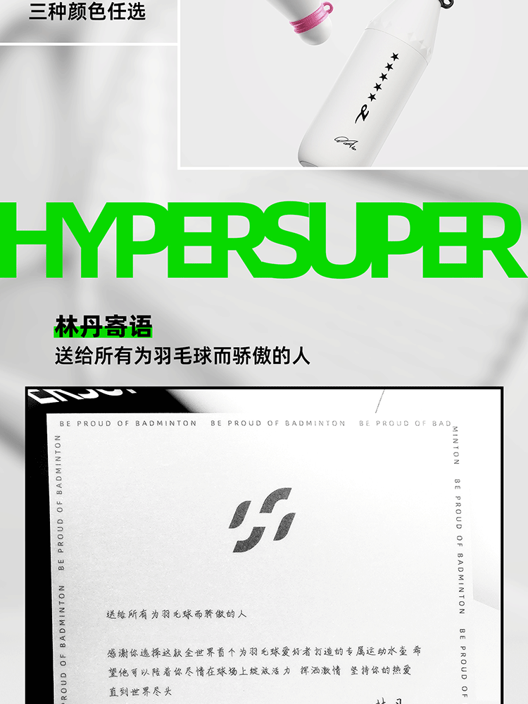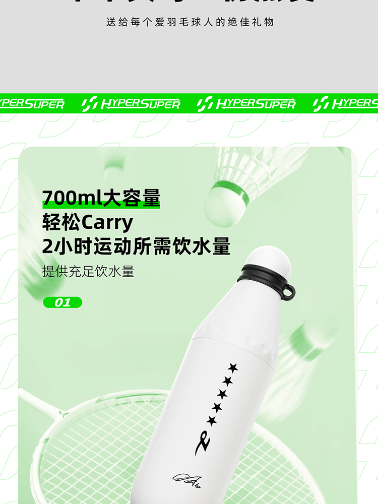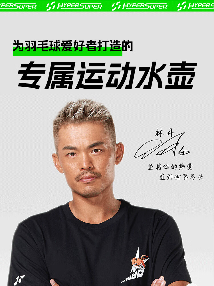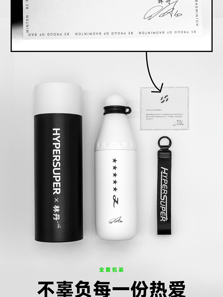 HYPERSUPER Lin Dan's signature limited edition badminton sports kettle large capacity hot and cold sports direct drinking water cup + badminton baby black 1 piece 700ml with badminton baby