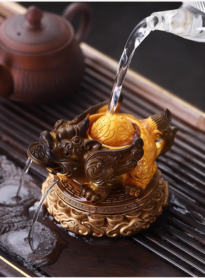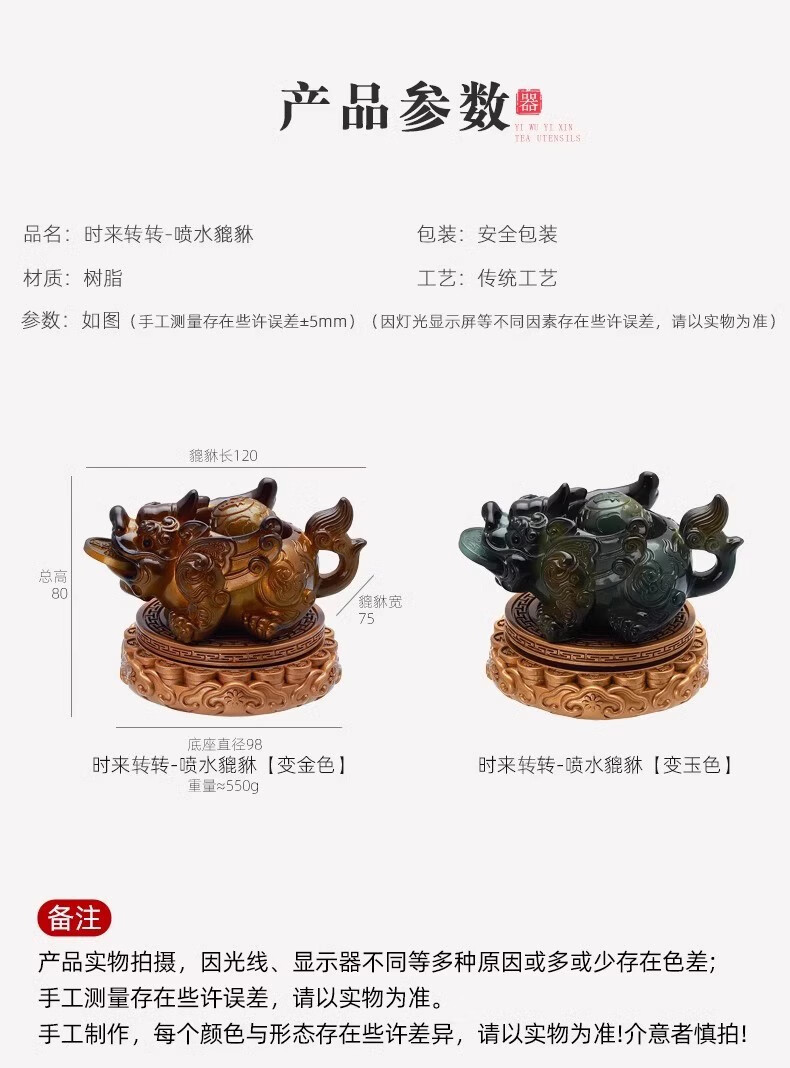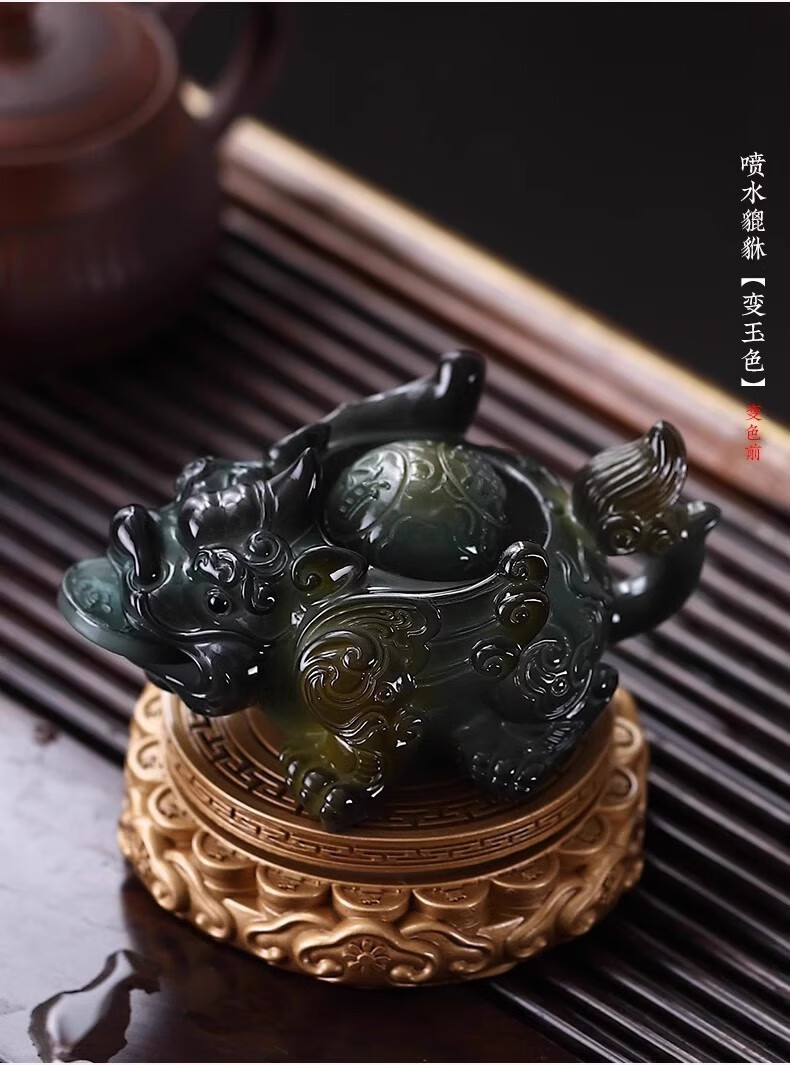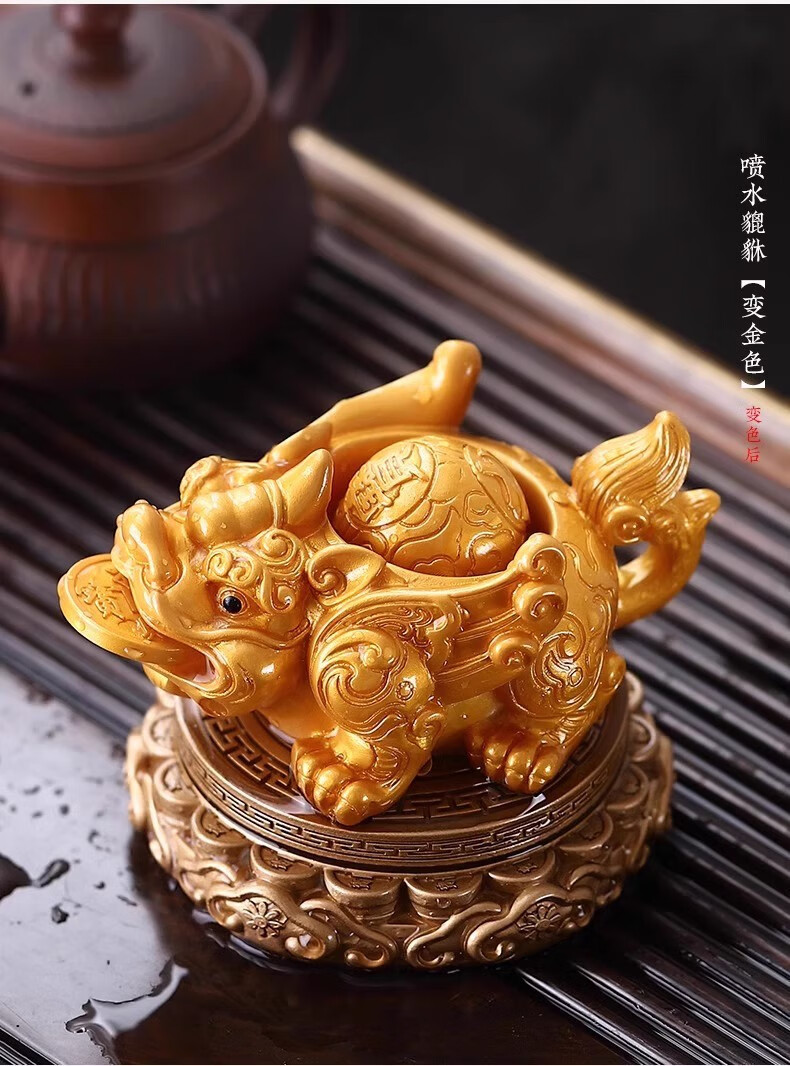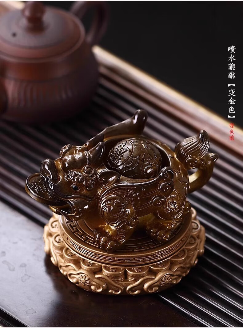 Baqianxing 2025 New Pixiu Tea Pet Ornament Tea Play Can Raise Color Changing Boutique Tea Set Tea Table Tea Table High-End Gift Water Spray Color Changing + Turn Base + Turn Dragon Ball + Turn Gold Coin + Long