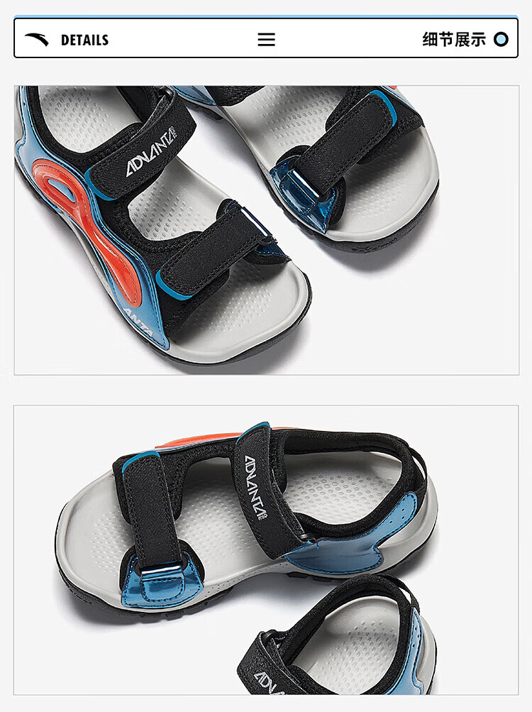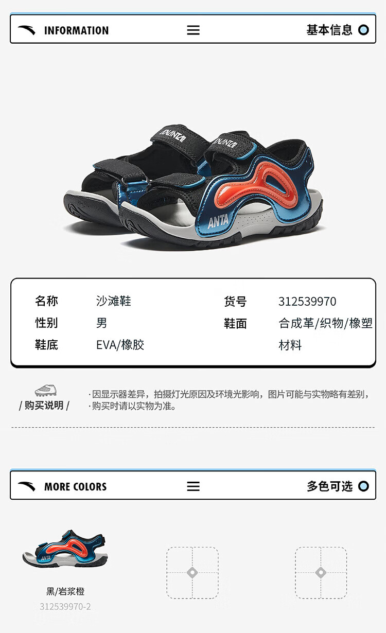 ANTA Children's Sandals Boys' Shoes Children's Wading Shoes 2026 Summer New Product Phantom Bullet Technology Outdoor Beach Shoes Black/Magma Orange-2 33