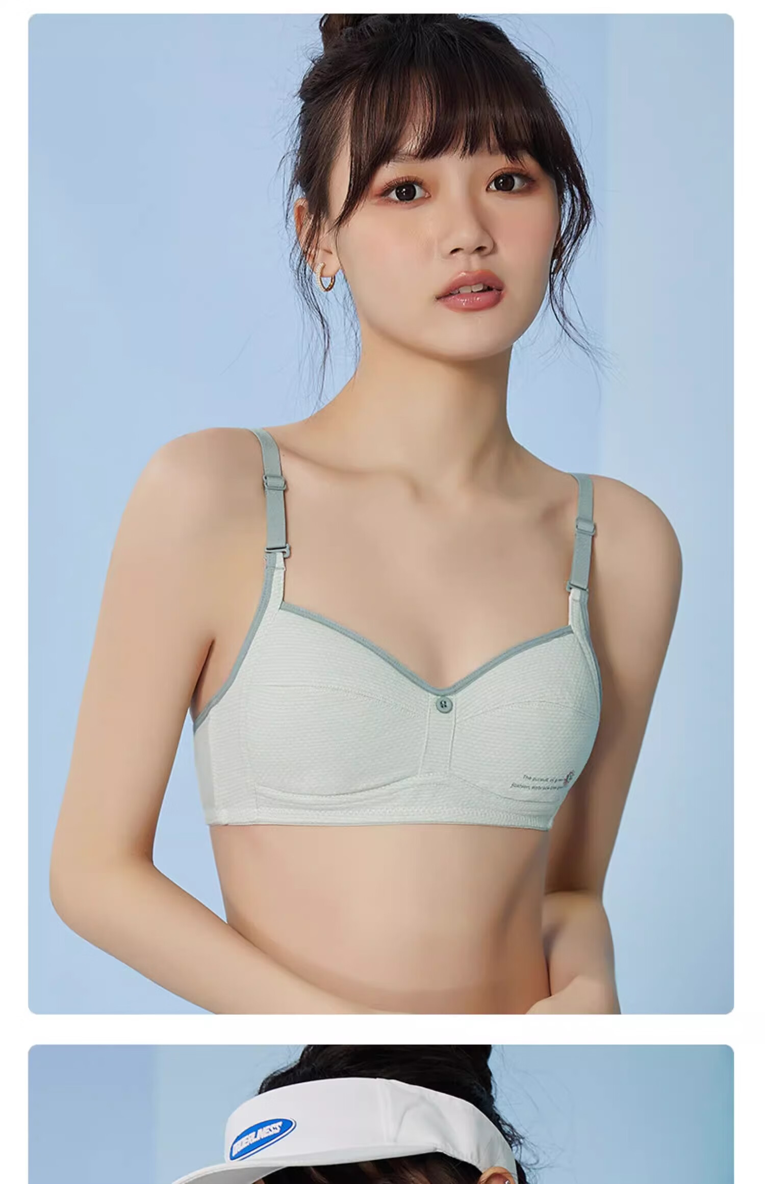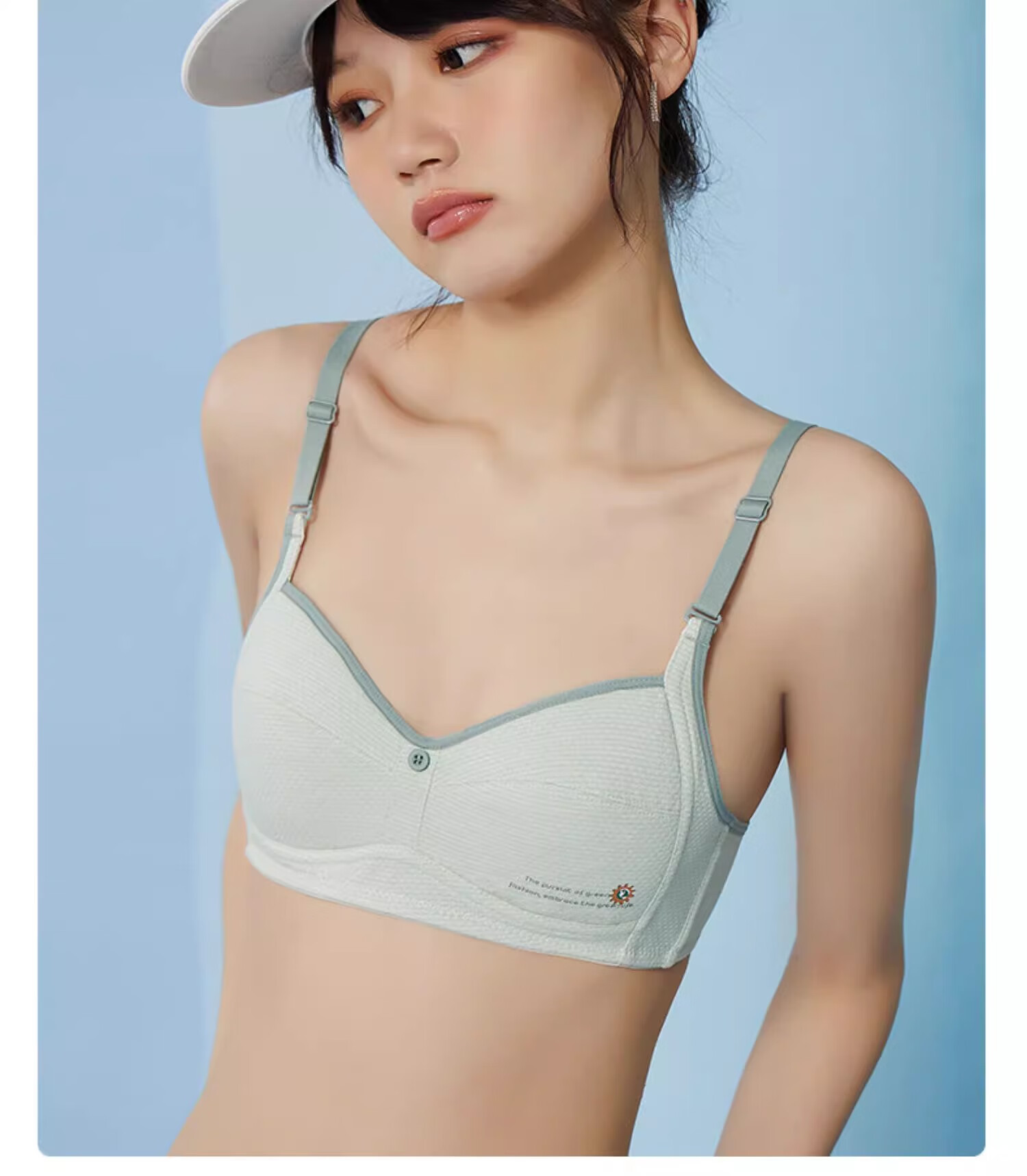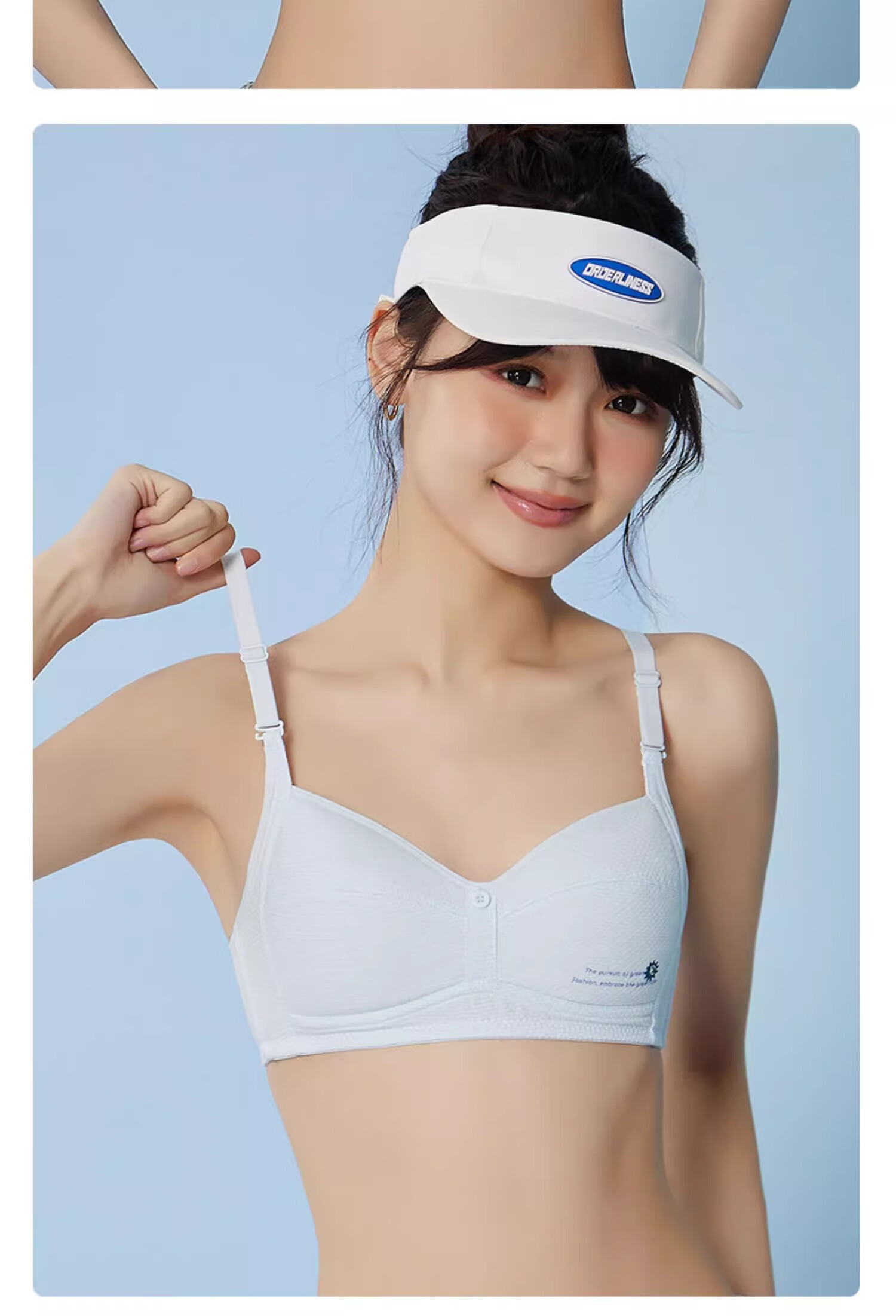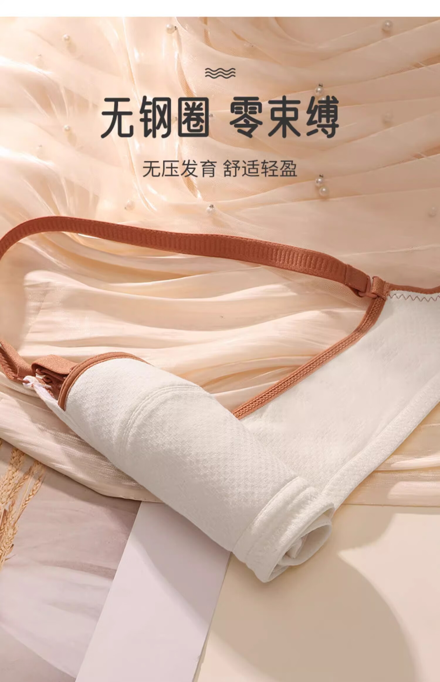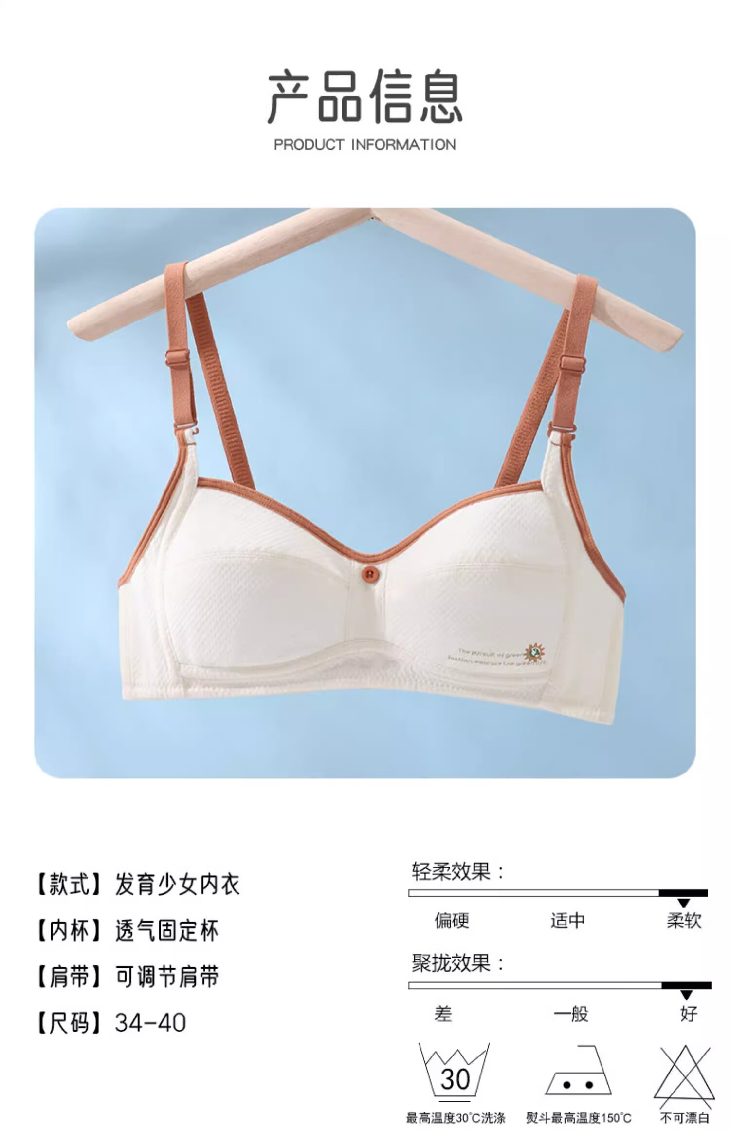 Beidi Chun Junior High School Girls Underwear Girls Developmental Primary School Students Breathable Bra Summer Thin Seamless Tube Top Wear Inside, Green Grass, Correcting Posture and Beautiful Back, One Size 38/85 (AB Cup)