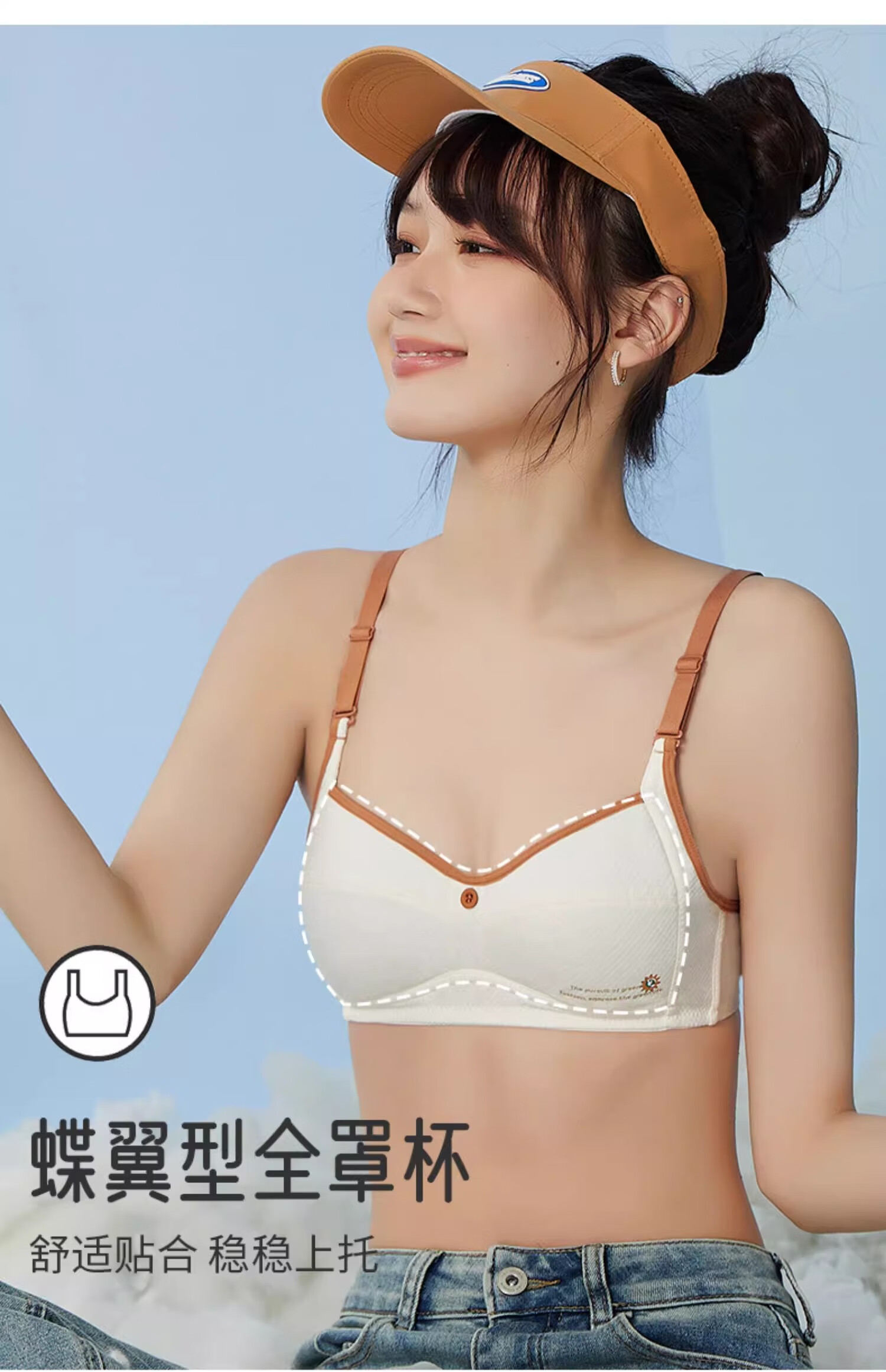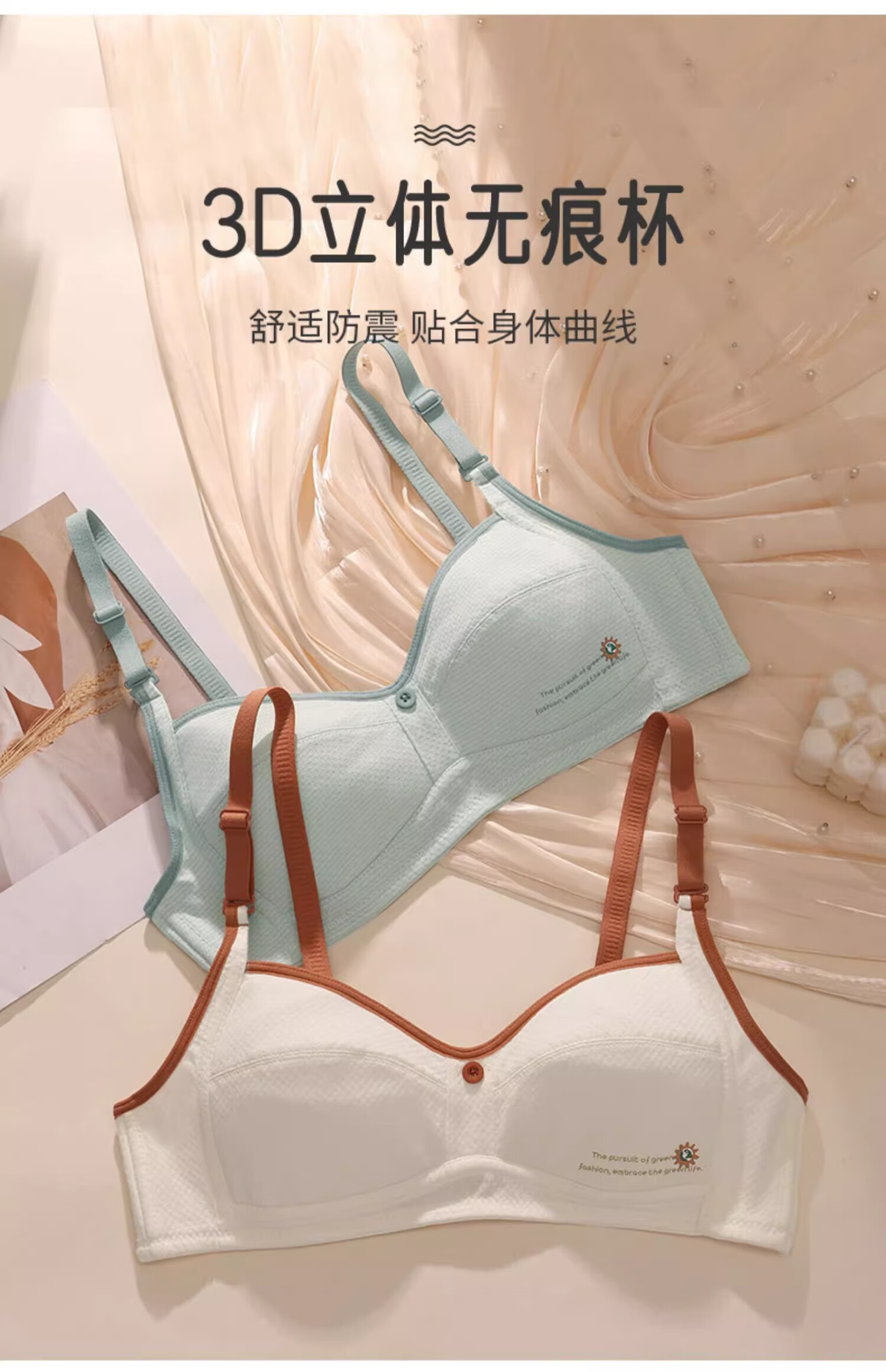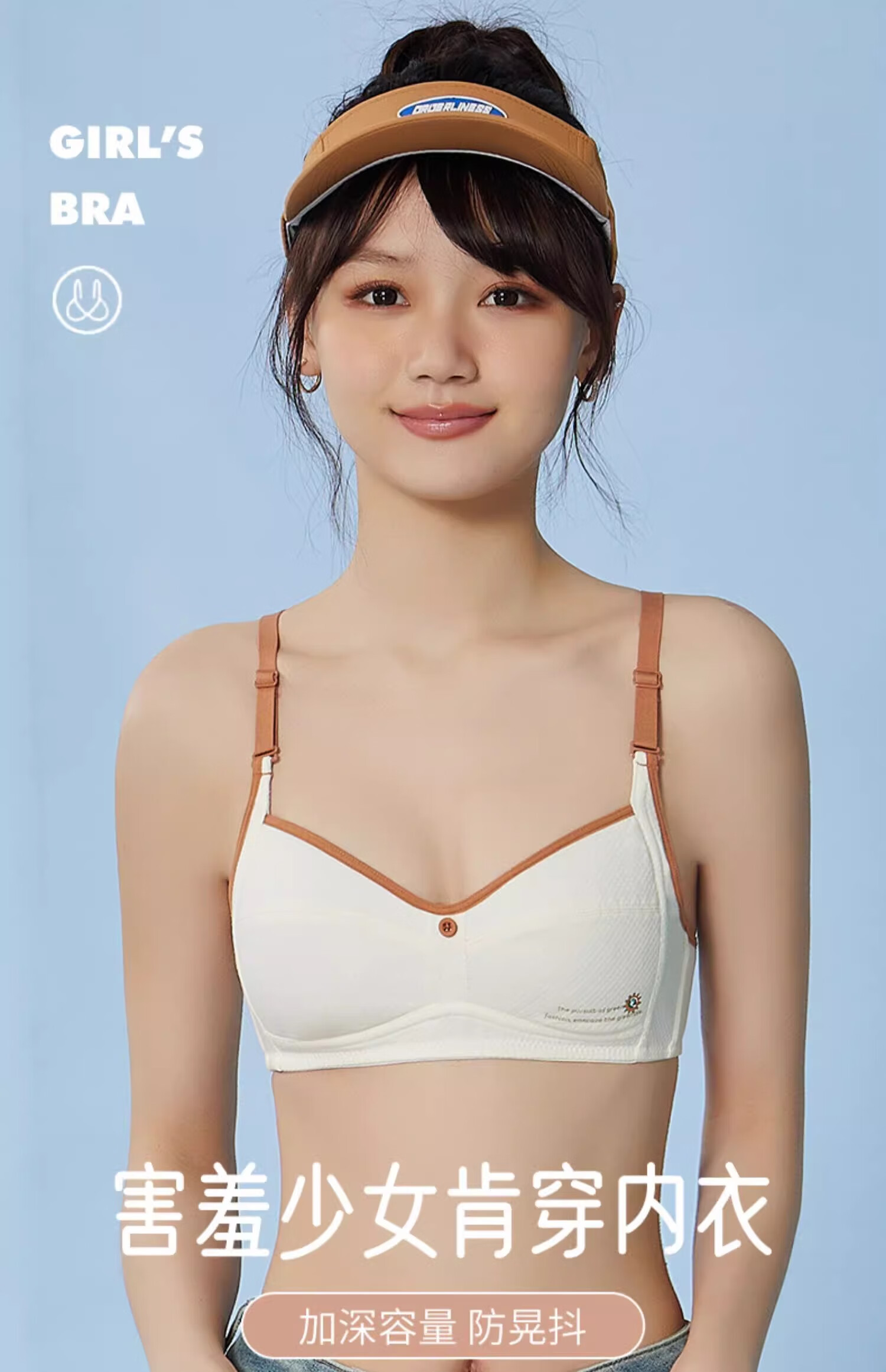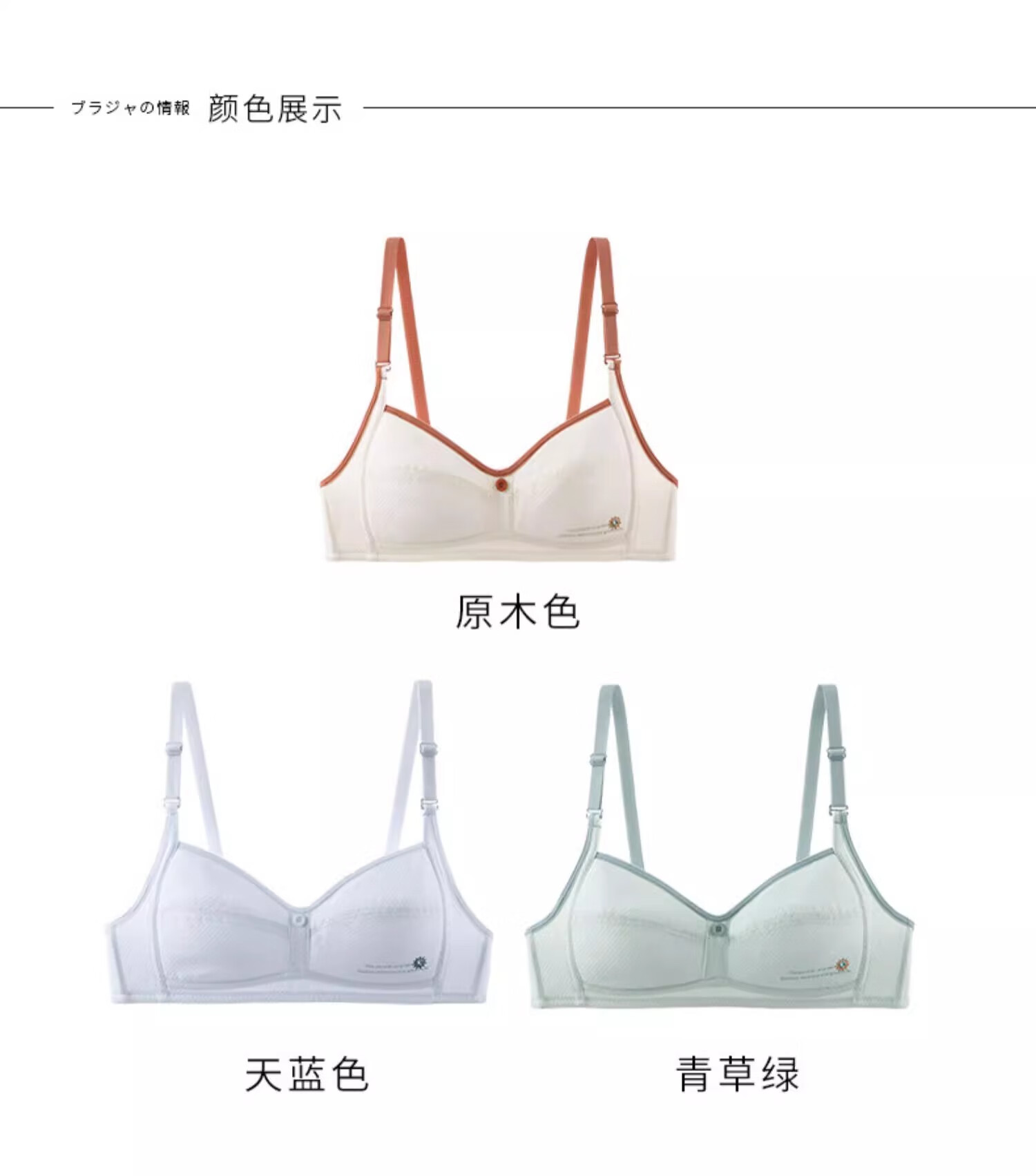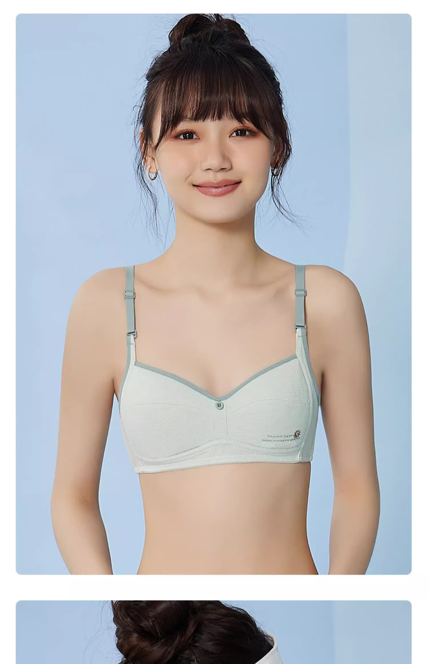 Beidi Chun Junior High School Girls Underwear Girls Developmental Primary School Students Breathable Bra Summer Thin Seamless Tube Top Wear Inside, Green Grass, Correcting Posture and Beautiful Back, One Size 38/85 (AB Cup)