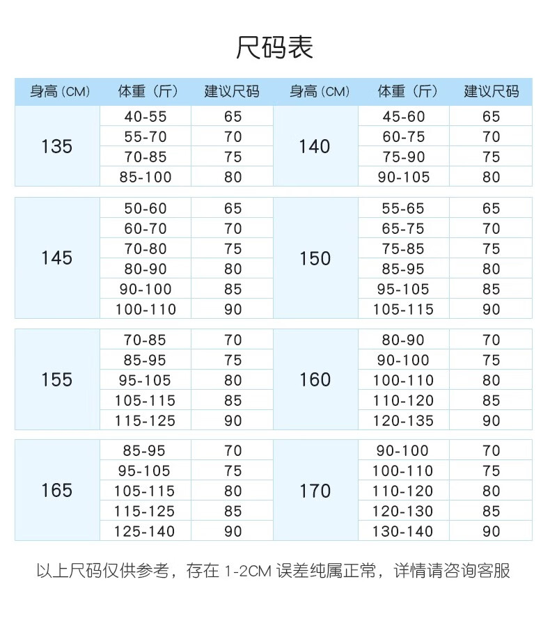 China (cm) 160-165/84-86 165-170 / 88-90 167-172 / 92-96 168-173 / 98-102 170-176 / 106-110