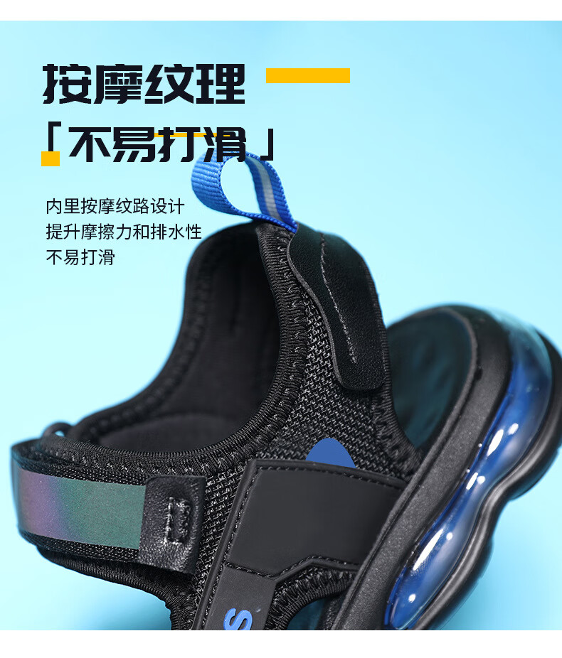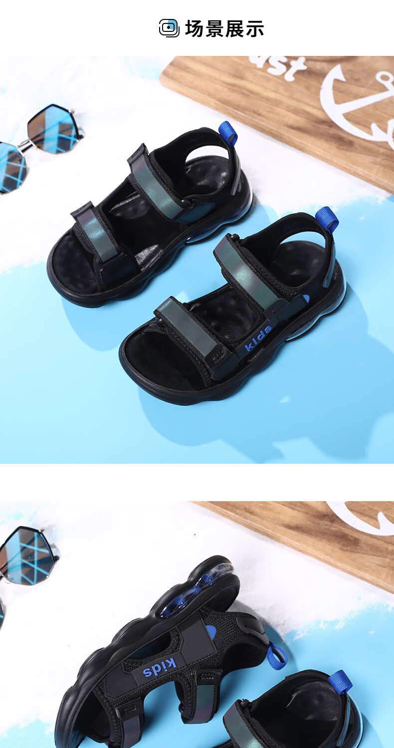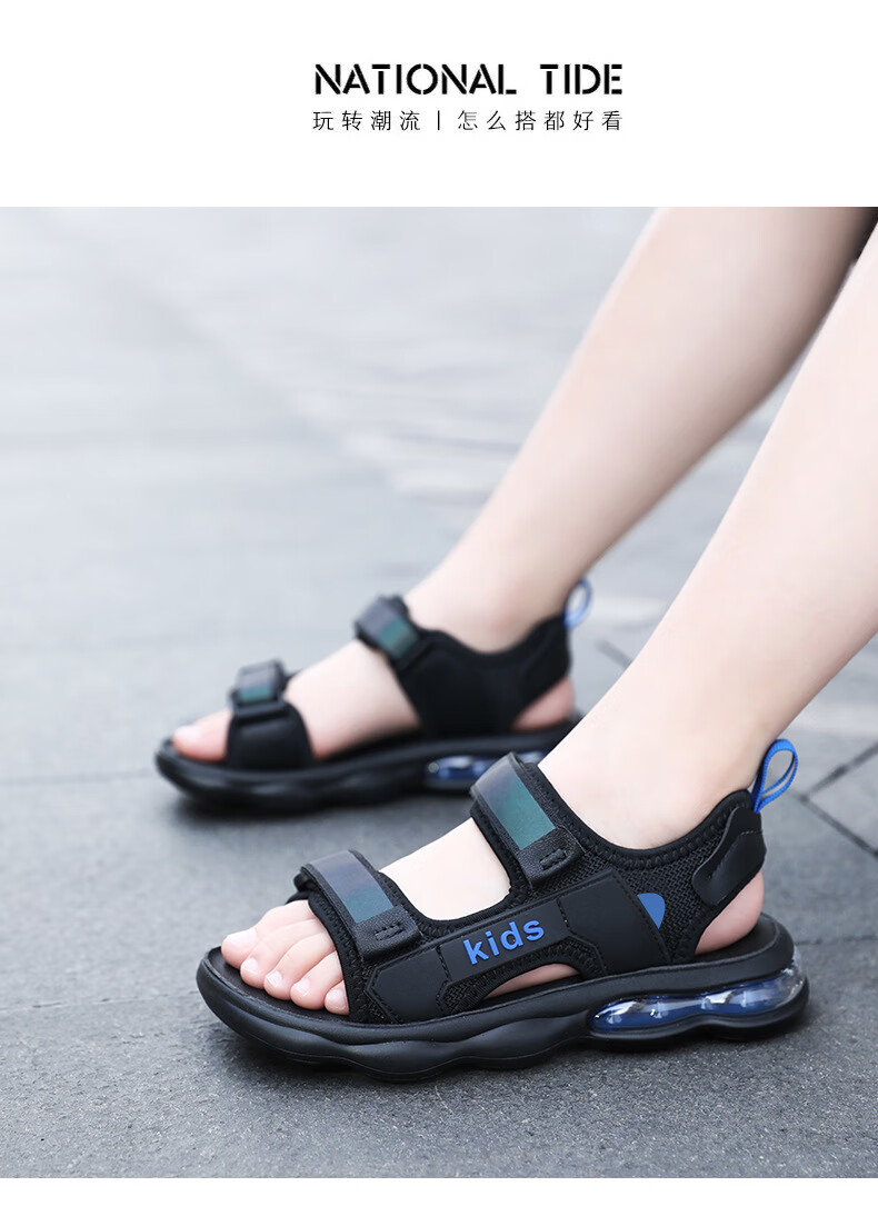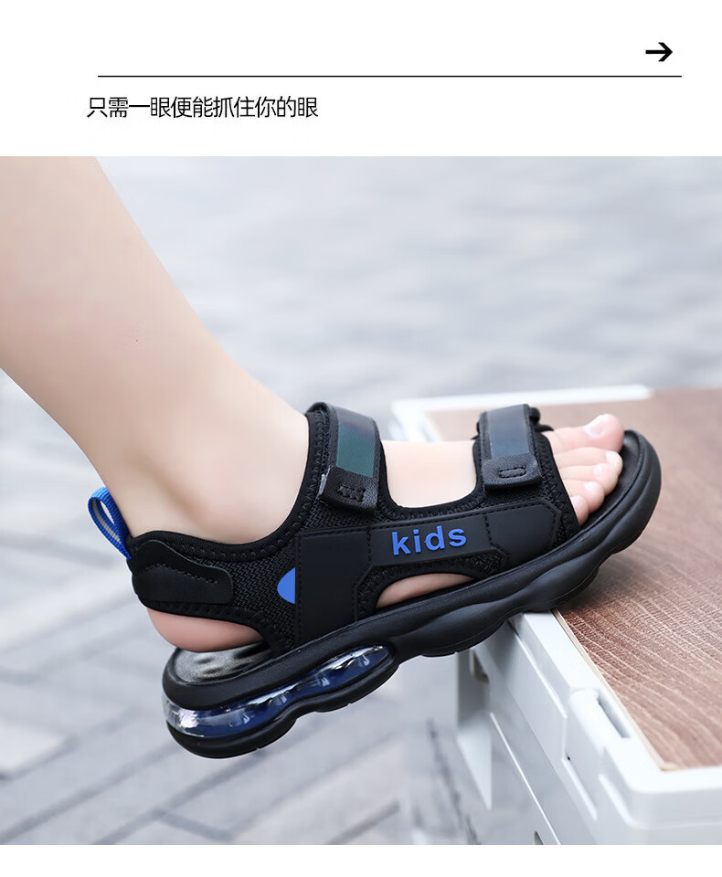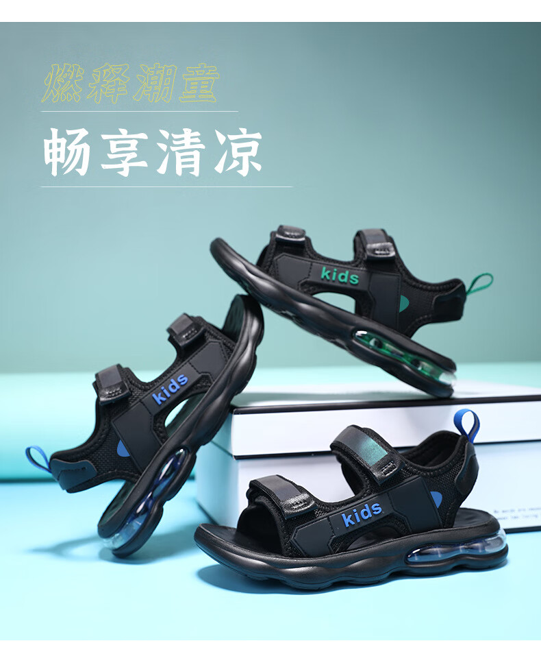男童凉鞋2025夏季新款中大童儿童沙滩鞋休闲户外青少年凉鞋8-15岁 黑蓝 39