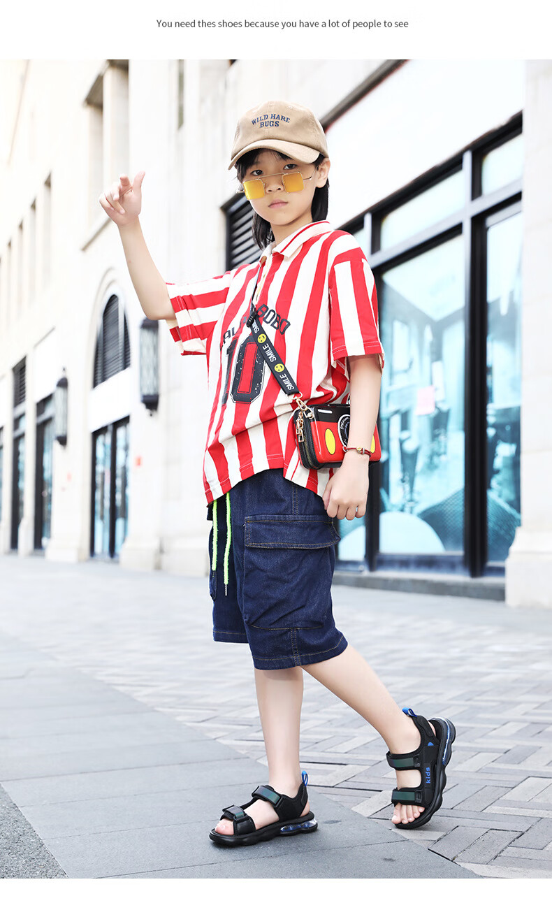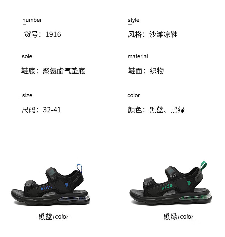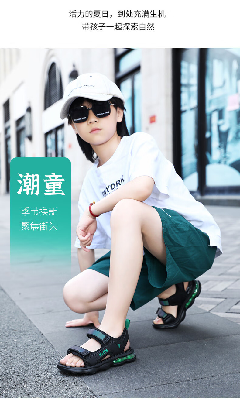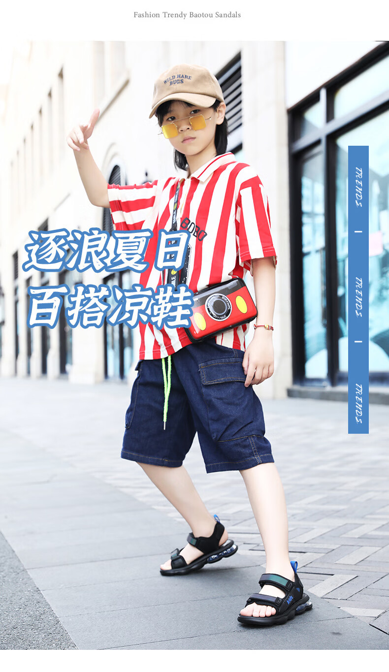 男童凉鞋2025夏季新款中大童儿童沙滩鞋休闲户外青少年凉鞋8-15岁 黑蓝 39