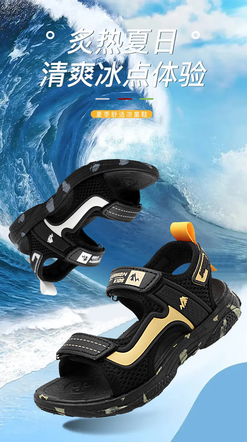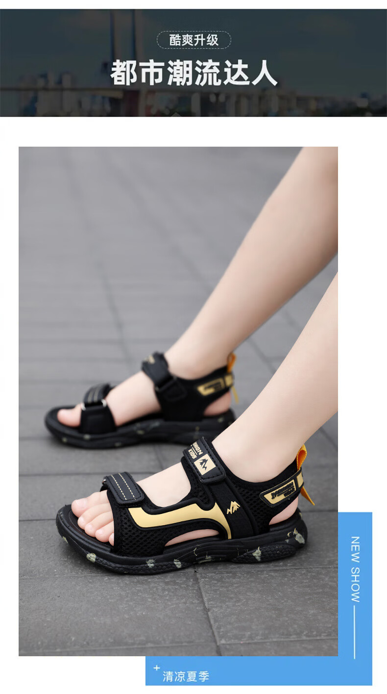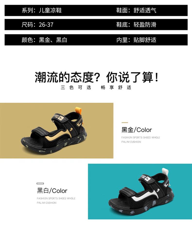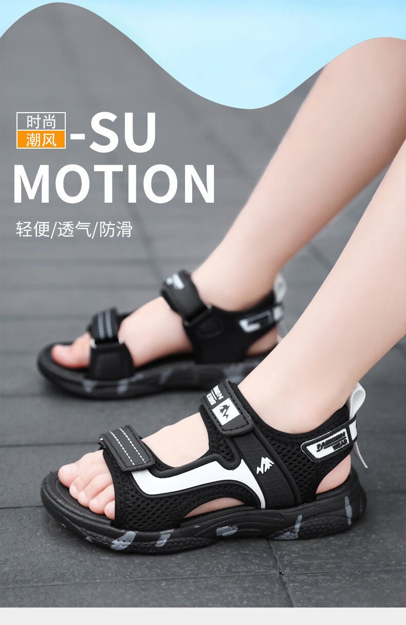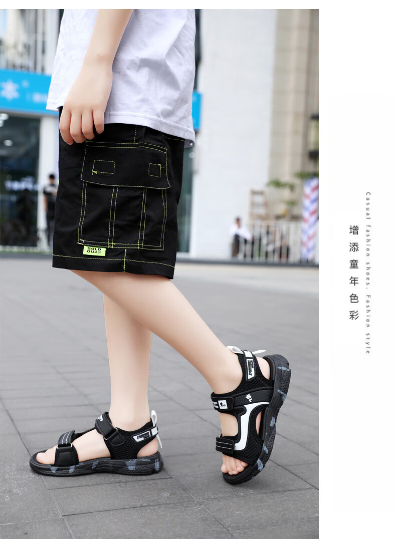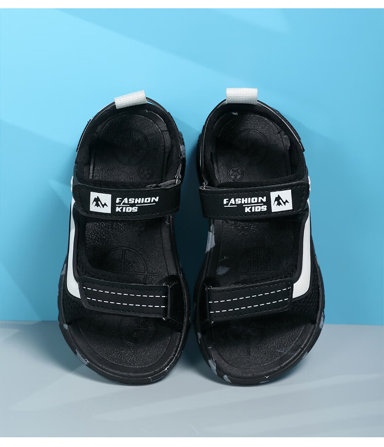 Boys' sandals 2025 new Korean style summer baby and children's non-slip soft bottom beach shoes for middle and large children 199-black and white 40 (inner length 25cm)