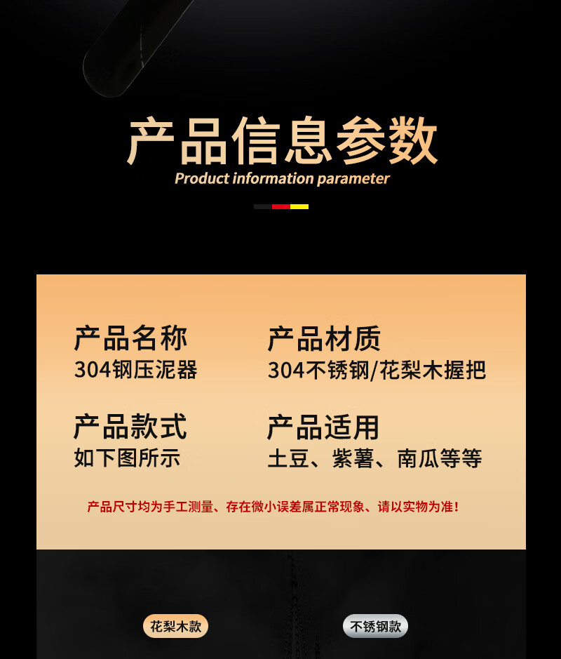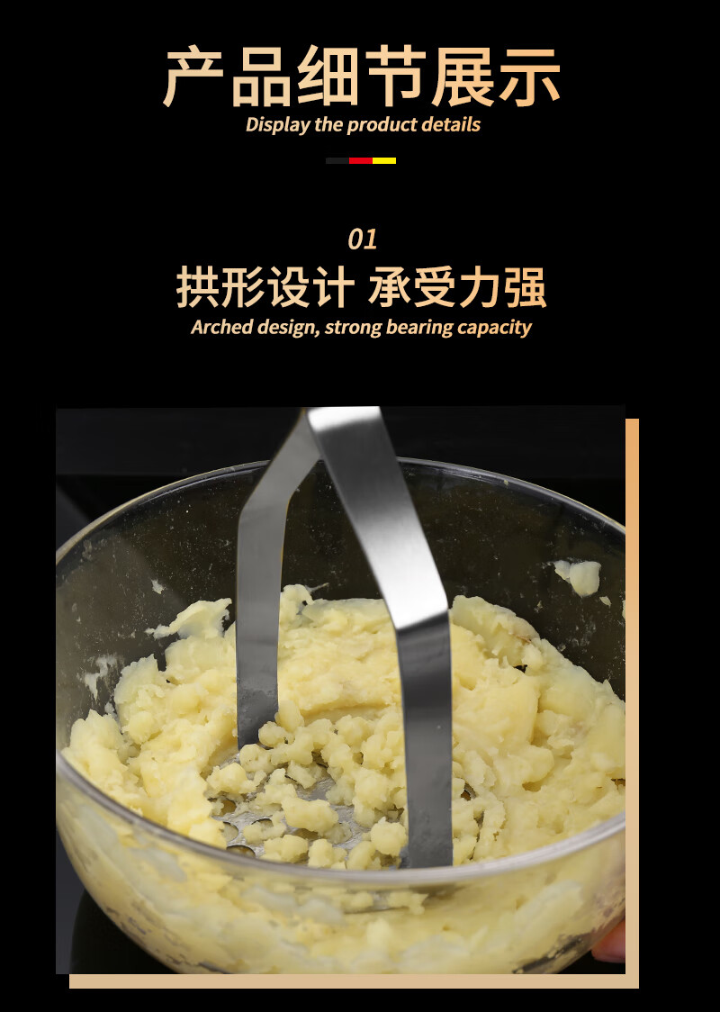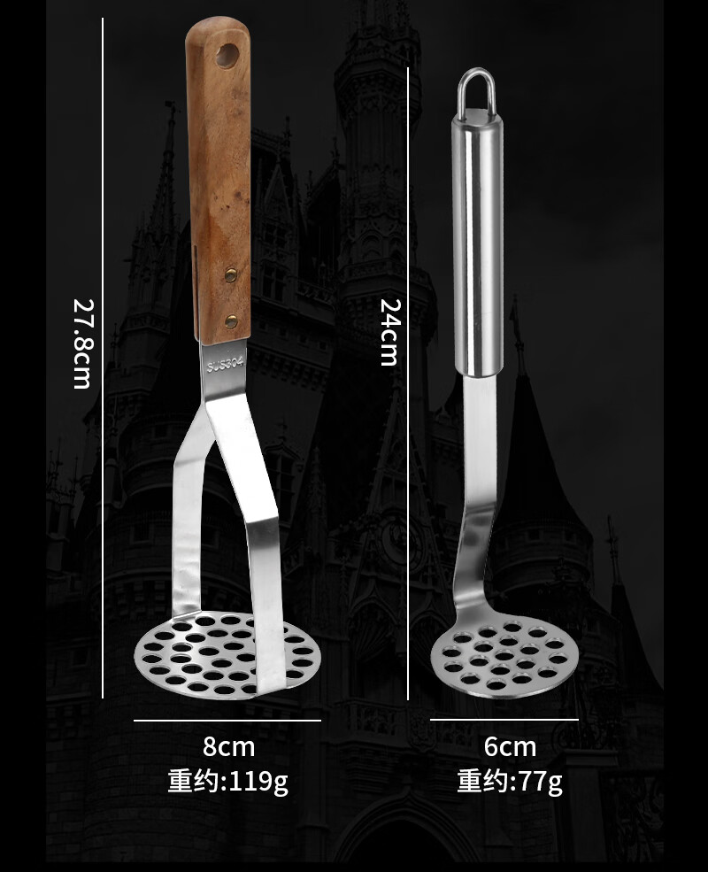 Potato mashed masher 304 stainless steel food grade manual masher fruit food supplement masher 430 steel // masher (thick and affordable)