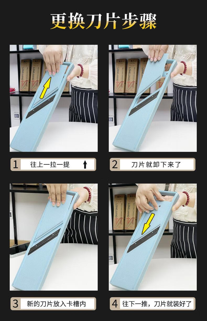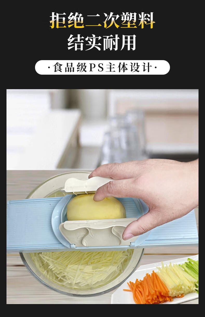 Longjiang S2 grater and shredder with handle, door opening, grating and vegetable cutting, anti-hand cutting, slicing and shredding protection, JD.com’s new S2-fine + medium + coarse + slicing + opening hand guard