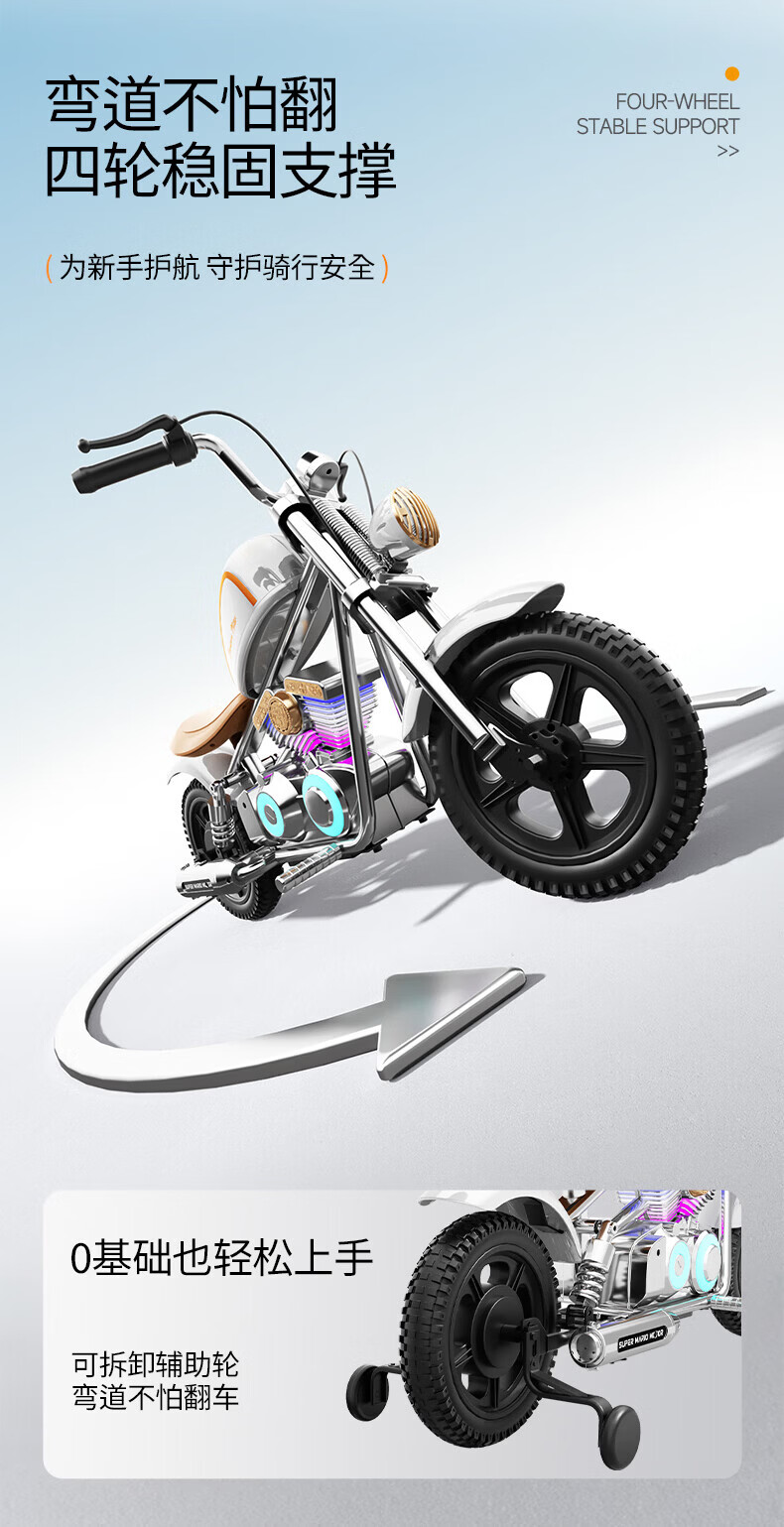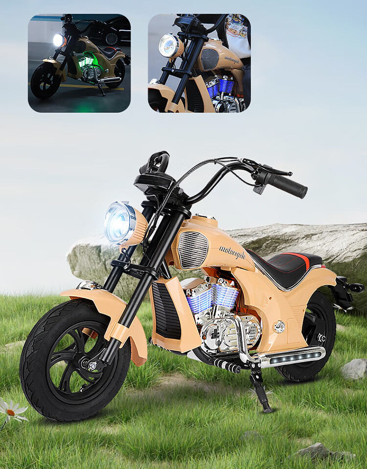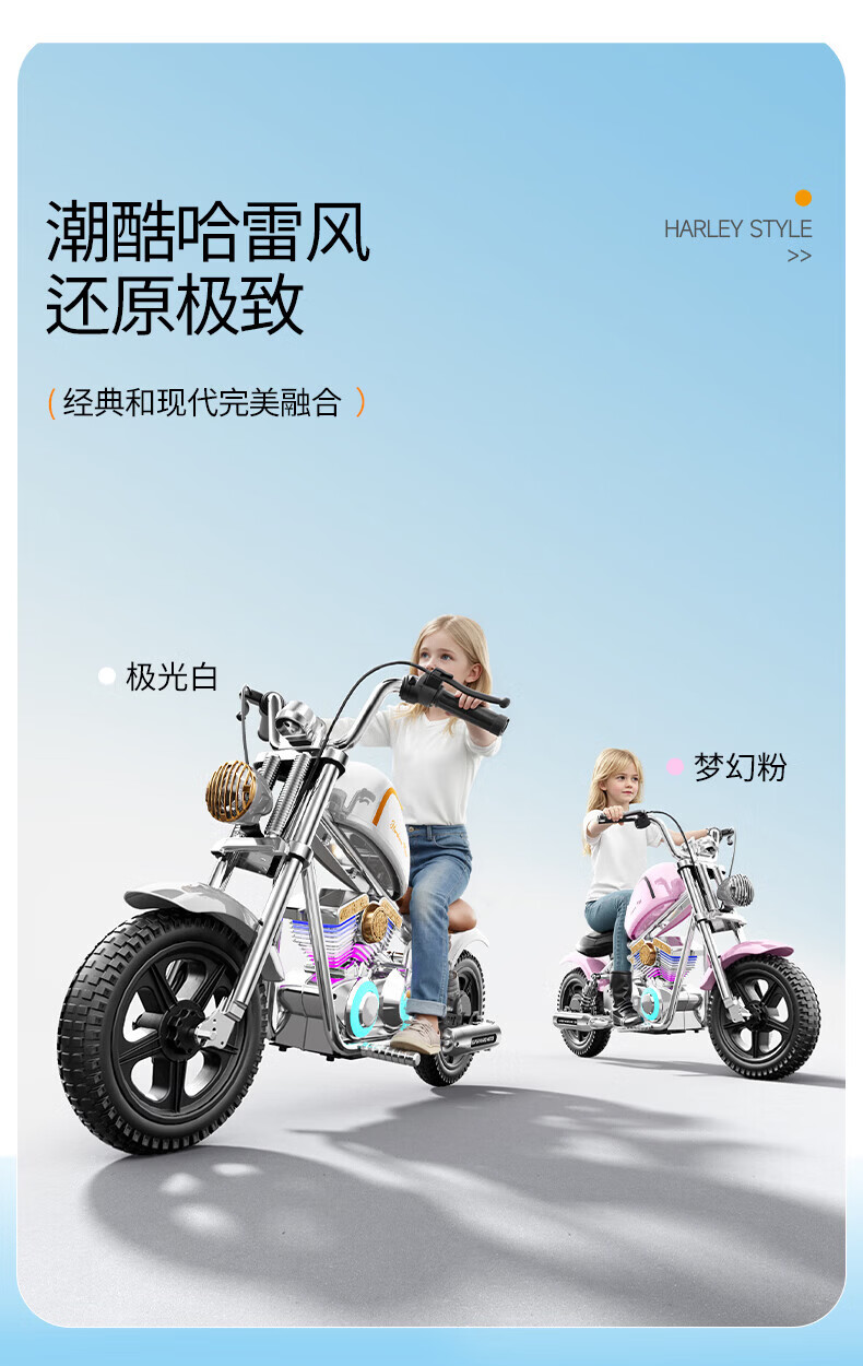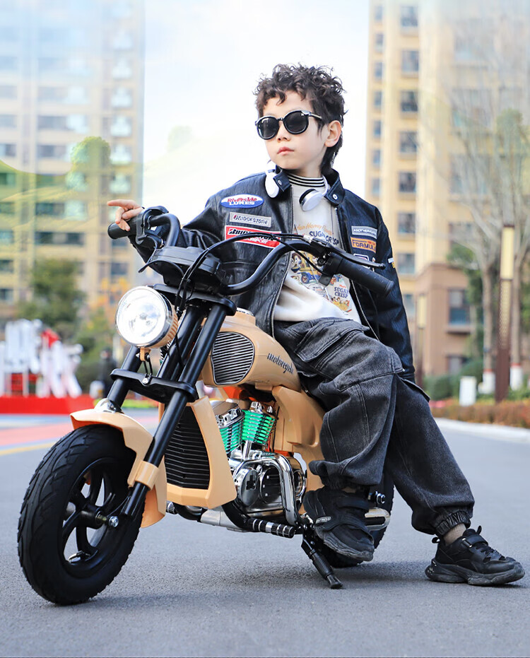 Bo'aotong children's motorcycle Storm Harley Rider motorcycle for boys and girls can sit on two-wheeled electric motorcycles for children. Model A black + high-speed brushless motor + 24V5A battery + auxiliary wheels. Comes with helmet and protective gear. Harley Rider motorcycle for children aged 4-15 years old.