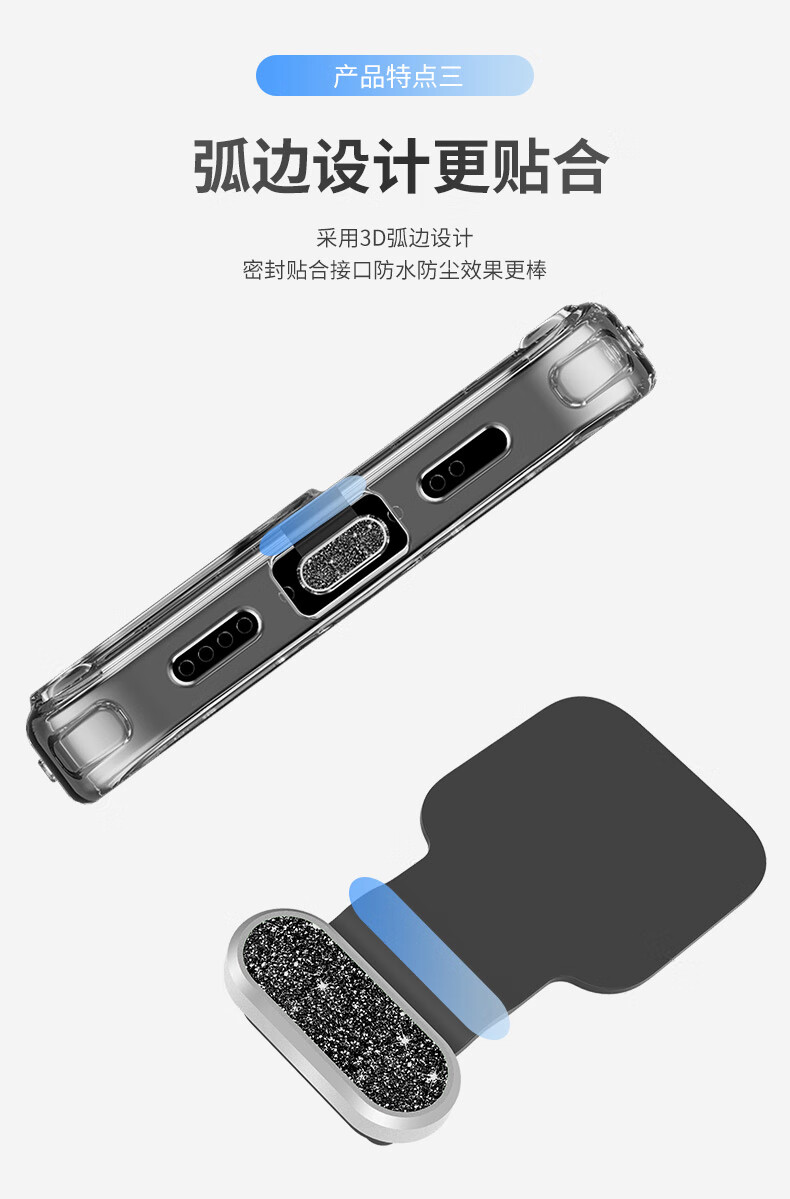 Yansha new trendy flash diamond alloy anti-lost integrated mobile phone charging port dustproof plug typec port waterproof splash suitable for iPhone15/16 Android fast charging universal luminous color 1 Android C port suitable for fast charging mobile phones