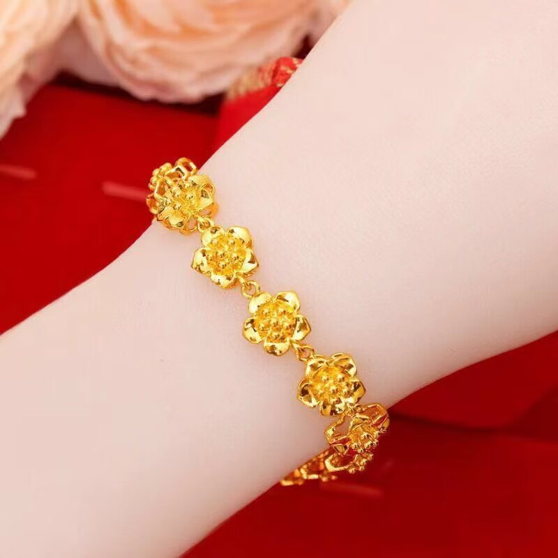 KZD Old Phoenix 999 Color Women's Gold Bracelet Women's Bracelet Adjustable Jewelry Gift for Wife and Mom Big S Ball Bead Bracelet Classic Ethnic