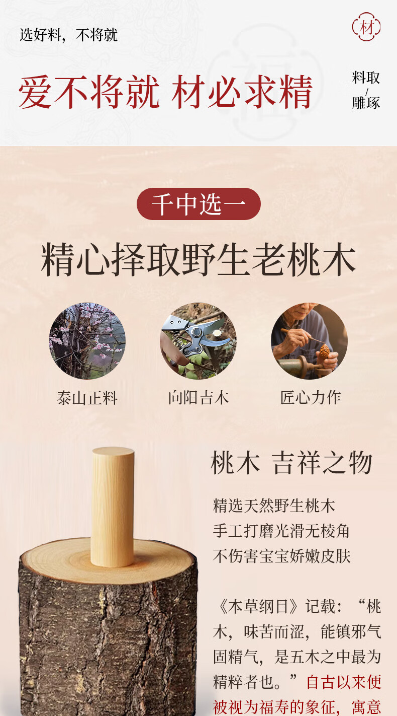 Jinshuitang Taishan straight hair baby pin peach wood baby fright sword children's amulet to suppress shock and prevent shock cinnabar pendant health and safety supreme version