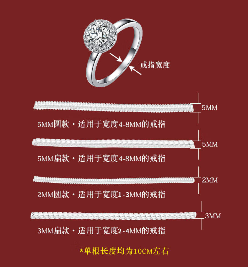 Ring size adjuster with invisible inner sticker. If the diamond ring is too big, change the elastic size of the ring. Fixed line. Anti-slip artifact. D type 5mm flat type.