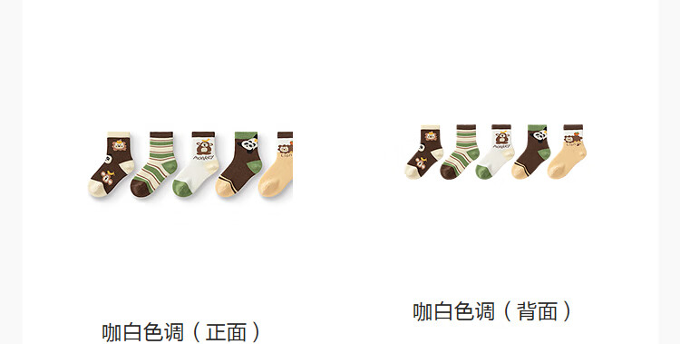 Balabala baby socks 2025 autumn new infant mid-calf socks soft and elastic boneless hand-sewn five pairs of coffee white tone 00351 1-3 years old 80cm