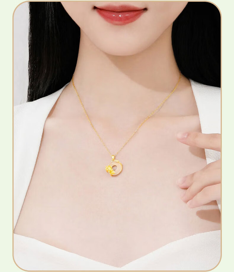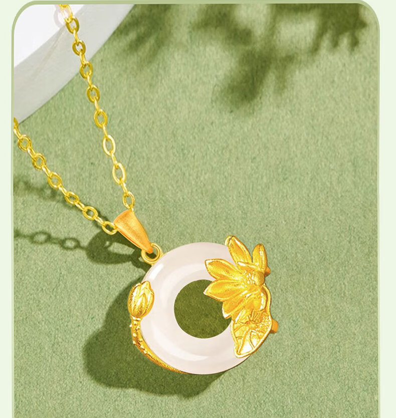 Lao Fengxiang S925 Anemone Peace Buckle Necklace Women's Flower Pendant Jewelry Valentine's Day Birthday Gift for Girlfriend Mom When/Next Day Delivery - Lotus Peace Buckle Necklace