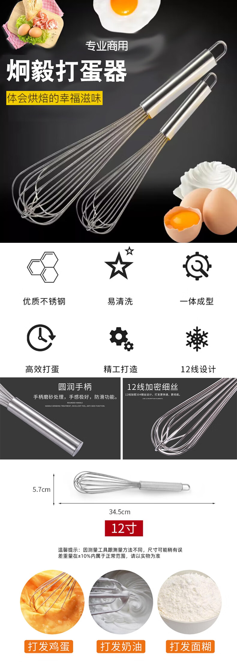 Jiongyi kitchen manual egg beater stainless steel egg mixer cream whipper egg beater 12 inches
