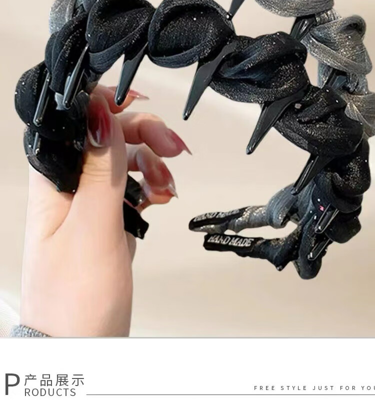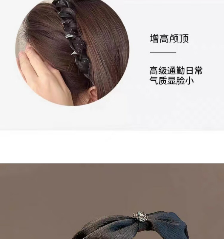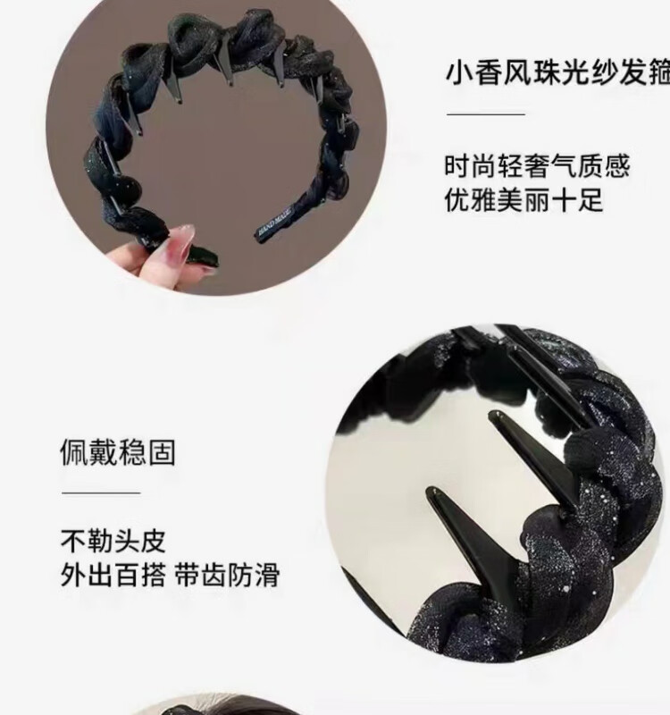 Versatile temperament small fragrance winding hair hoop non-slip toothed headband high-end hairpin women's headwear temperament black hair hoop pearlescent yarn