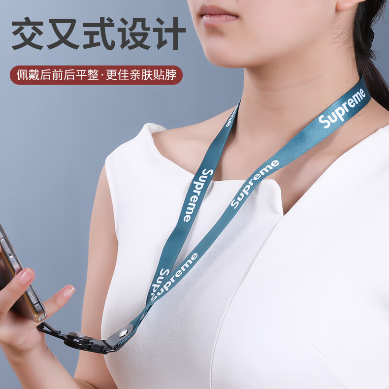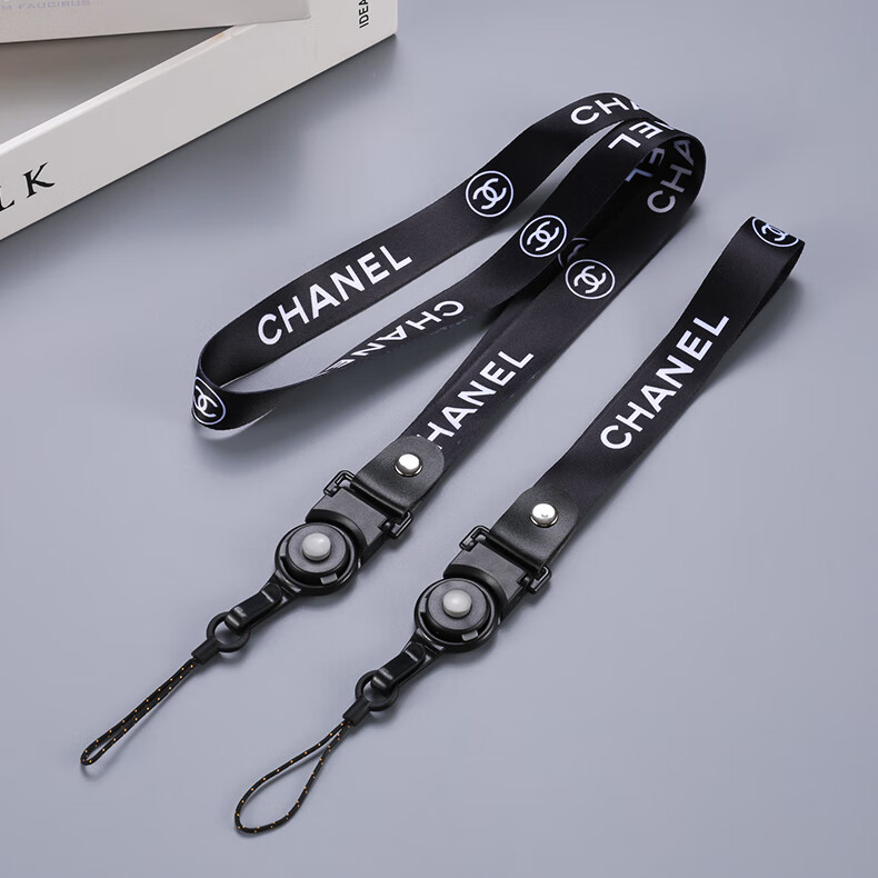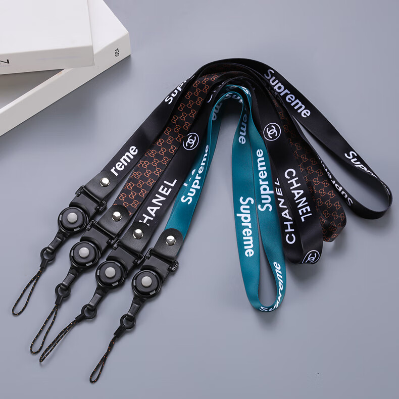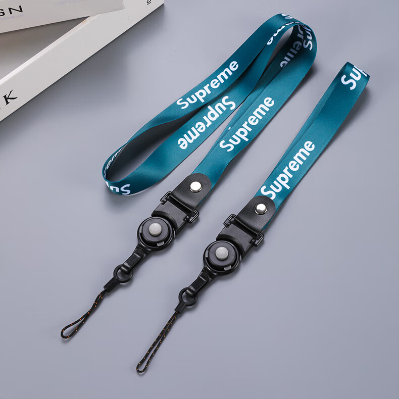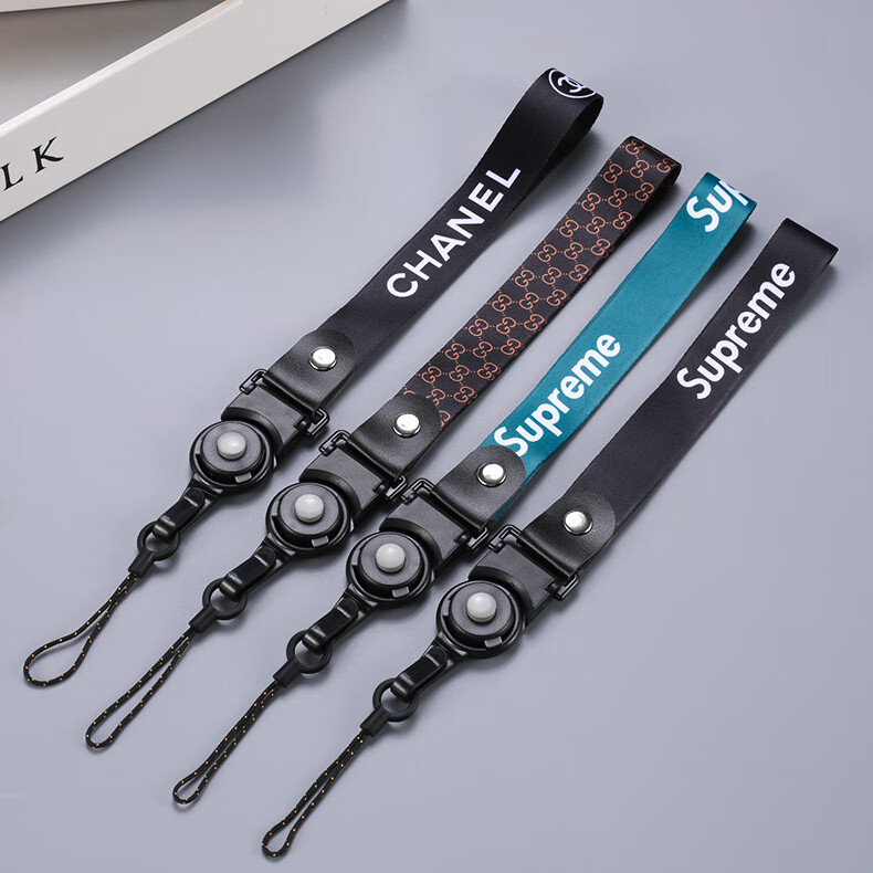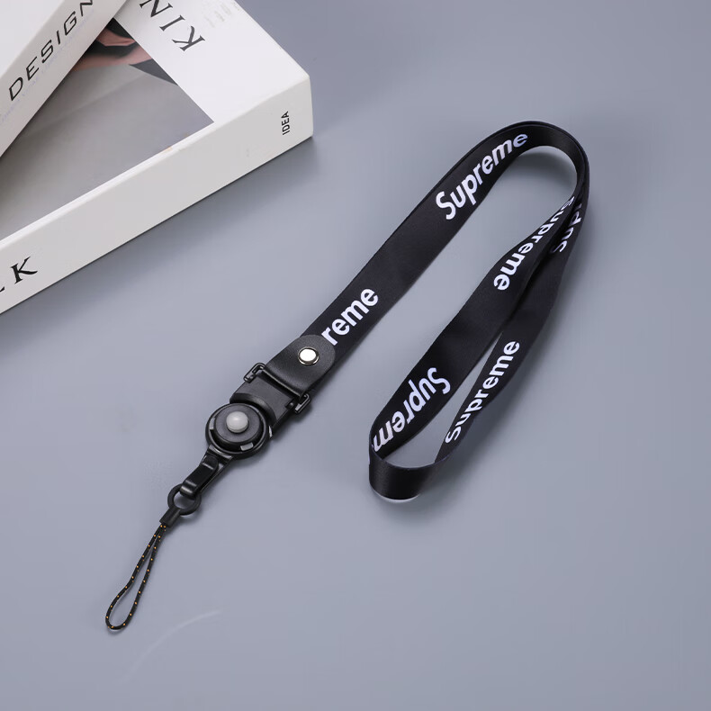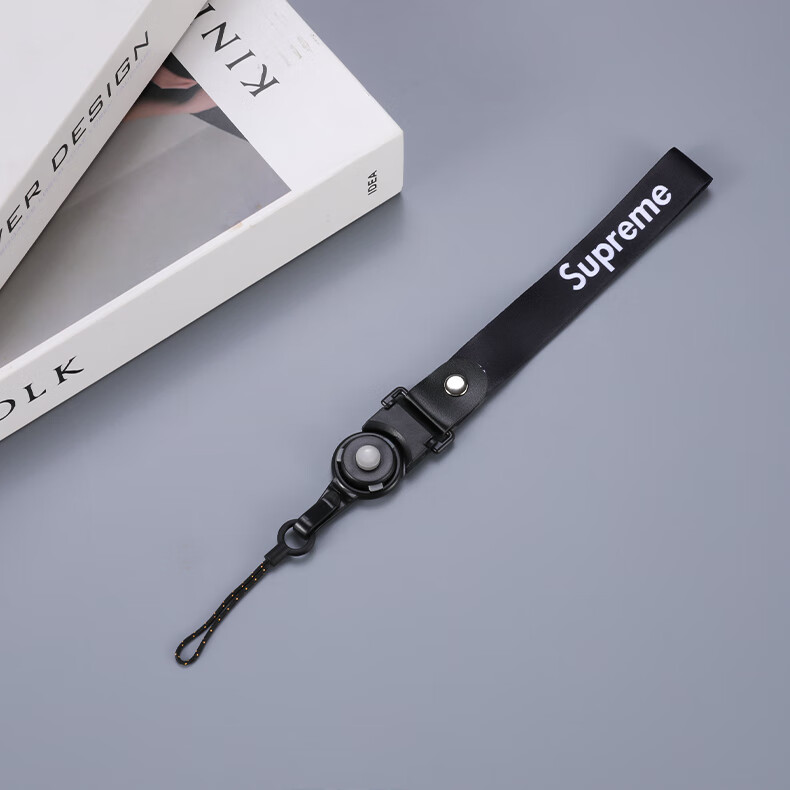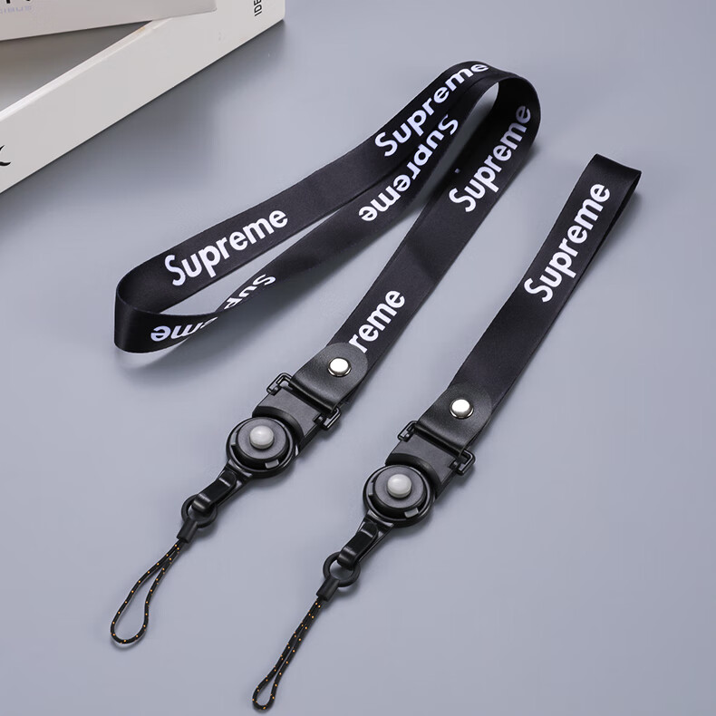 Adjustable anti-lost mobile phone lanyard, strong wrist phone lanyard, short hand lanyard, hand strap, unisex, long neck mobile phone chain, Supreme black - long and short set