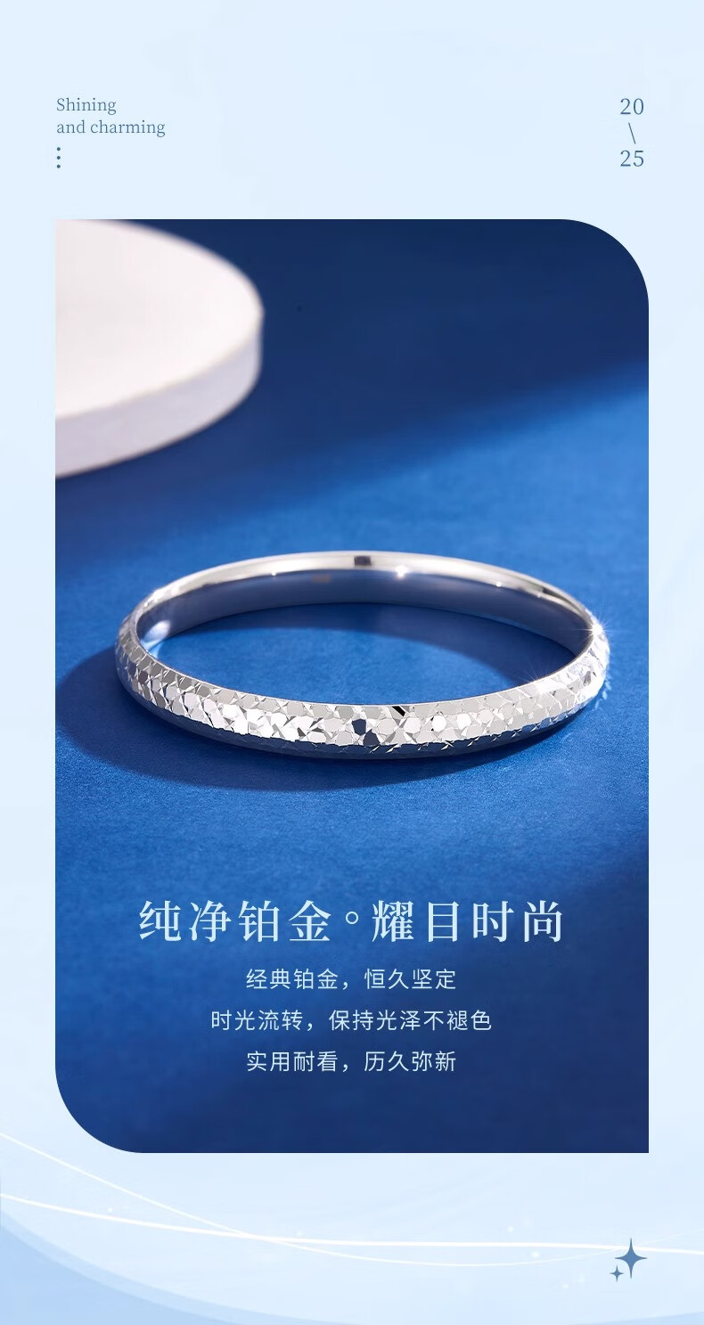 China Gold (CHINA GOLD) PT950 Platinum Starry Bracelet Women's Pure Platinum Hand Old Valentine's Day Birthday Gift for Girlfriend and Wife Platinum Starry Bracelet No. 52 Ring Approximately 15.5g