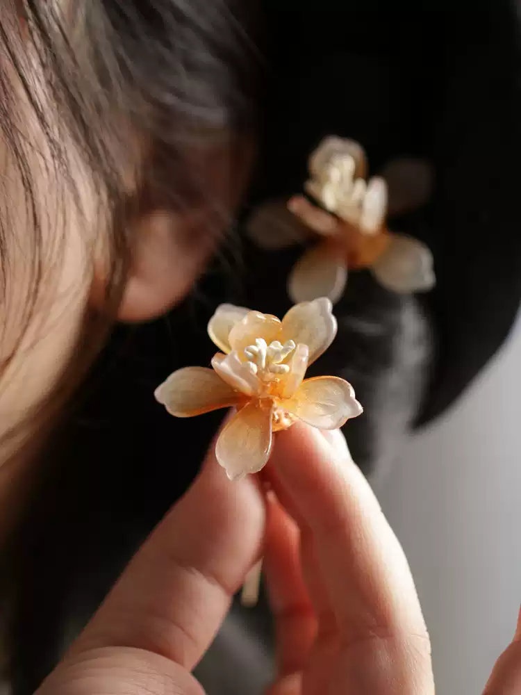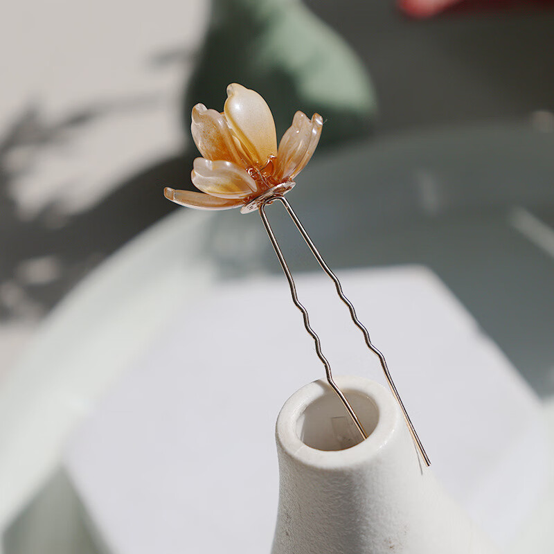 Jieyi Ancient Style Tang Style Hairpin Hanfu Accessories U Hairpin Ancient Costume Flower Embellishment Hairpin Hair Accessory Daily Matching Hairpin Headdress 1 Pack Magnolia Flower Hairpin About 8cm Long