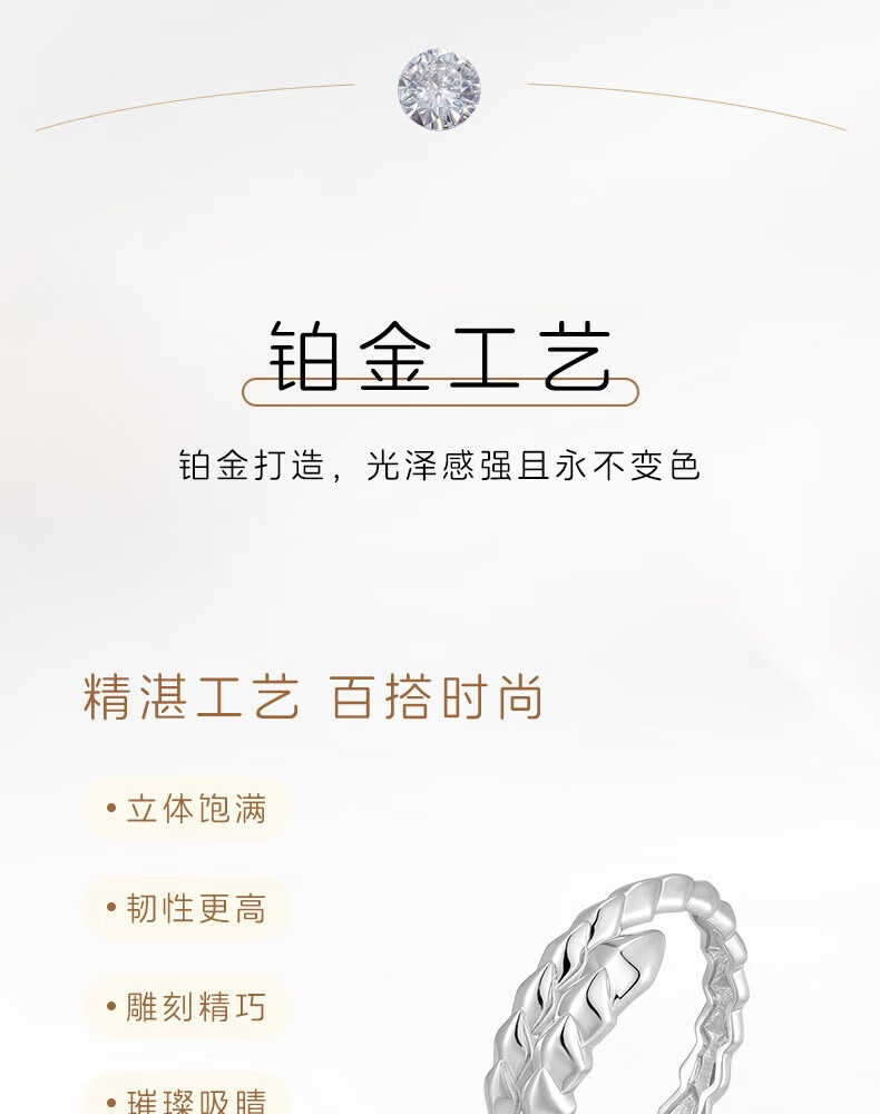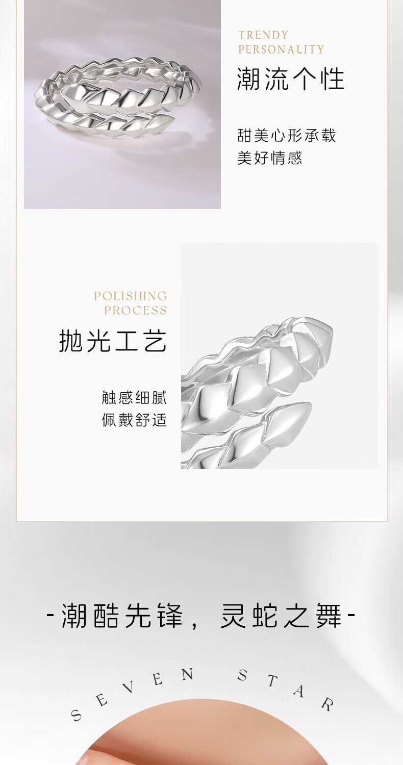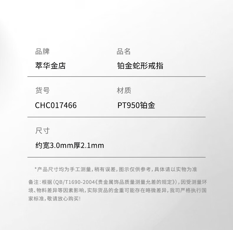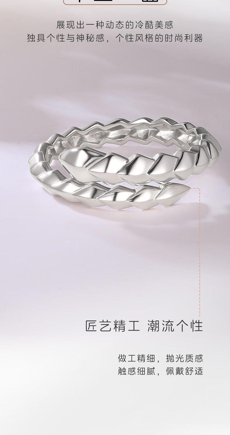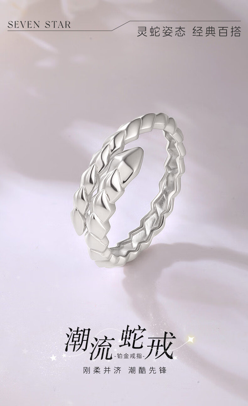 Cuihua Platinum Snake Ring for Girlfriend and Wife Valentine's Day Gift Platinum Jewelry Birthday Gift Platinum Snake Ring About 3.6g