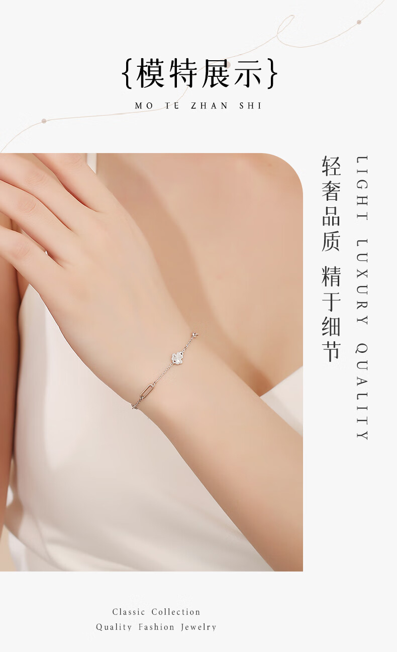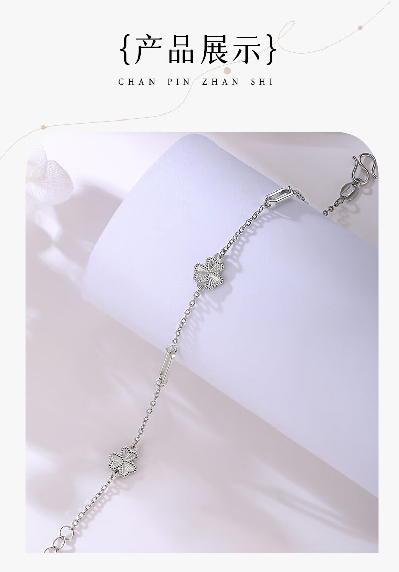 Cuihua Platinum Crushed Ice Clover Bracelet Valentine's Day Gift Jewelry for Girlfriend and Wife Birthday Gift Platinum Wufu Gourd Bracelet Total Weight Approximately 5.3g