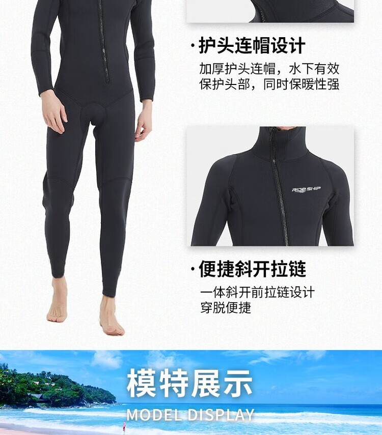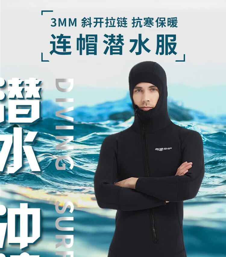 Pauline Pesery winter swimsuit cold-proof gelcoat 3MM hooded wetsuit one-piece thickened swimming long-sleeved surfing wetsuit black hooded wetsuit + diving socks 2XL