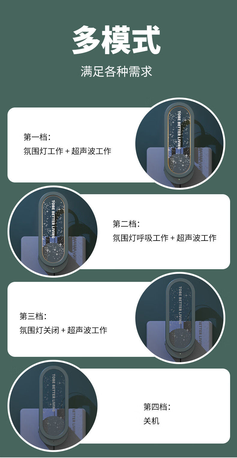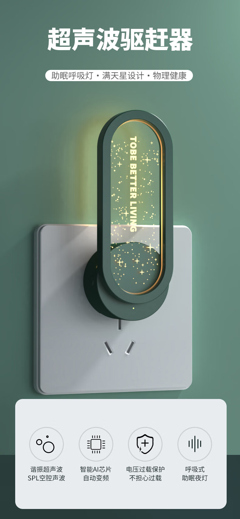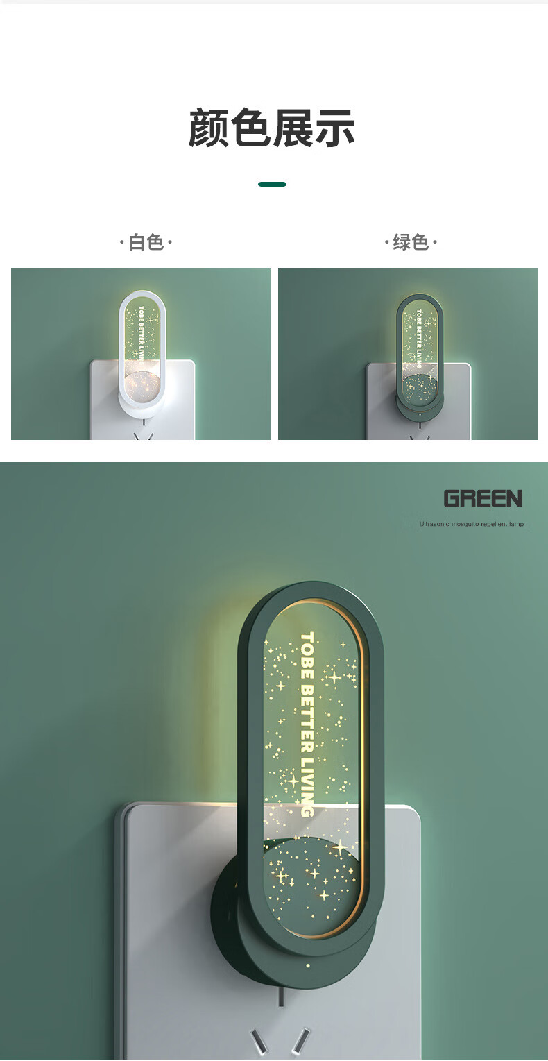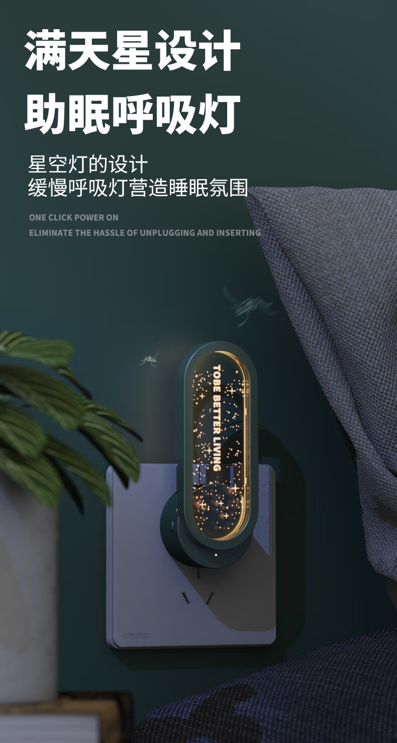 KYODO 2025 new ultrasonic mosquito repellent black technology plug-in indoor hotel home electronic mosquito killer lamp starry green
