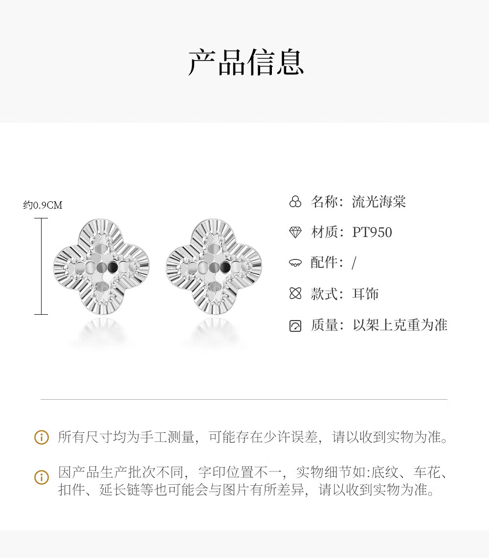 Ming brand jewelry platinum Pt950 platinum streamer begonia earrings gift for women BFH0106 platinum earrings about 2.37 grams