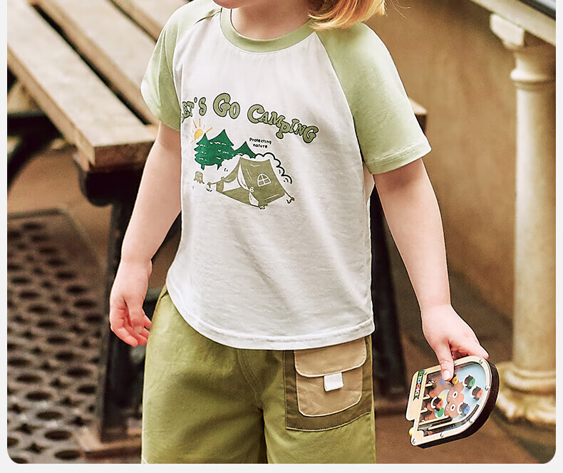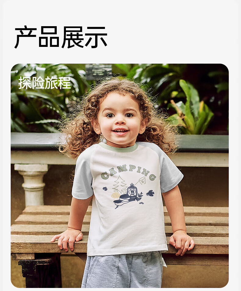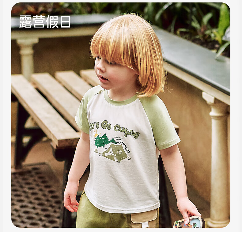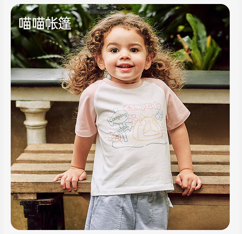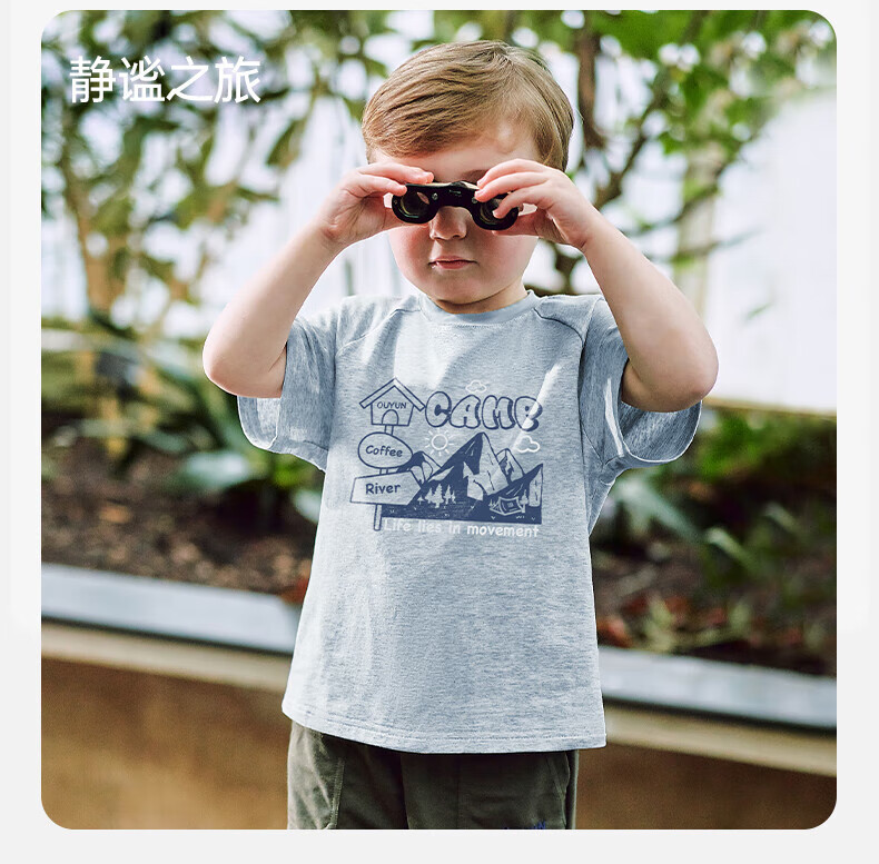 OUYUN children's short-sleeved T-shirt summer boys 2025 new baby baby girl pure cotton spring half-sleeved top camping holiday 90 cm