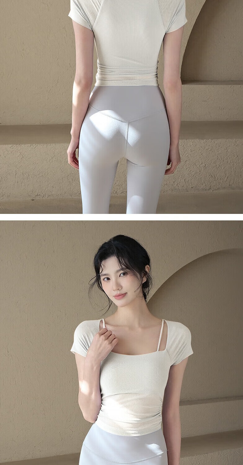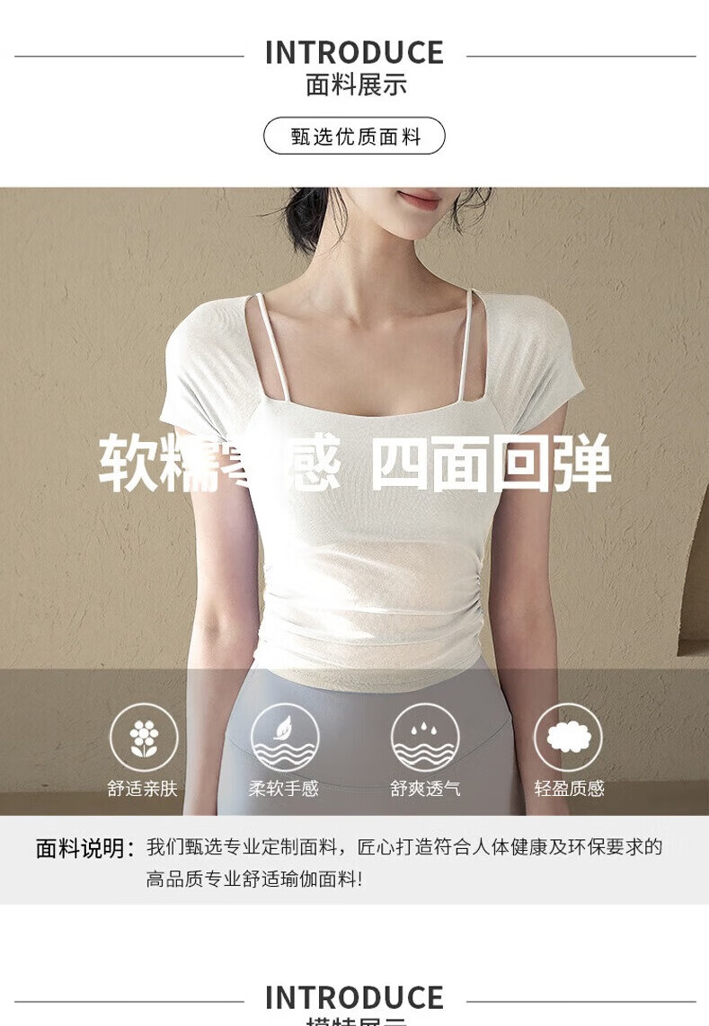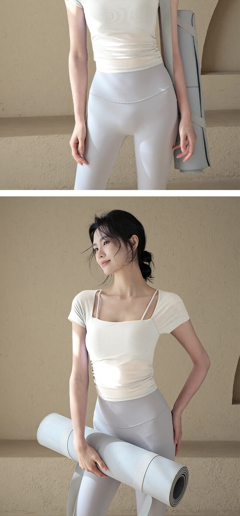 Yansitai yoga wear for women summer with chest pad short-sleeved T-shirt sports top high-end temperament slimming Pilates training fitness wear light ivory top S recommended 80-100Jin Jin equals 0.5 kg one size