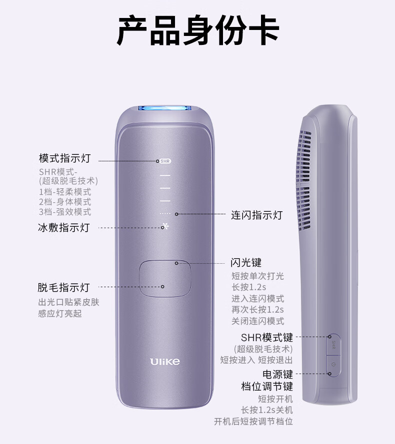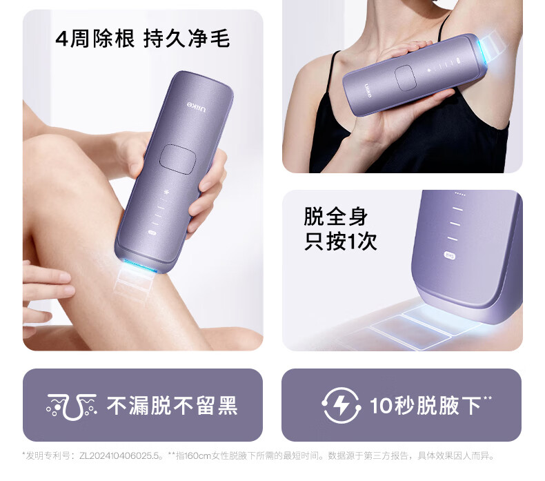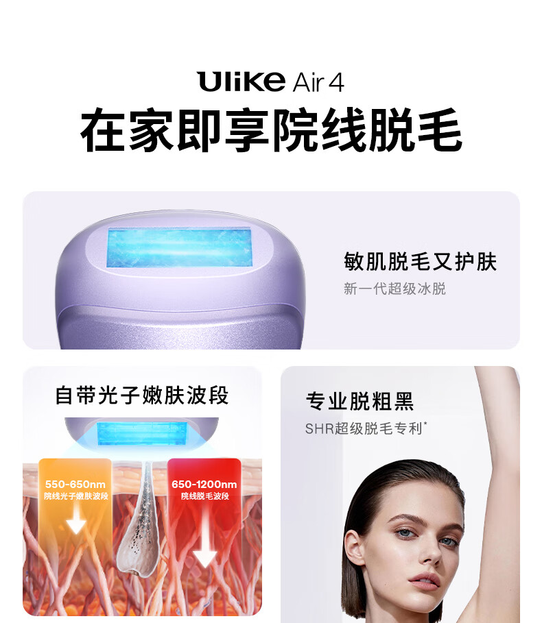 Ulike Air4 Government Subsidy Sapphire Freezing Point Hair Removal Device Women's Shaver Shaver Private Part Beauty Device Men's Gift Birthday Gift for Girlfriend Free 5 Small Scrapers Air4 Crystal Purple-Jingcang Straight Hair