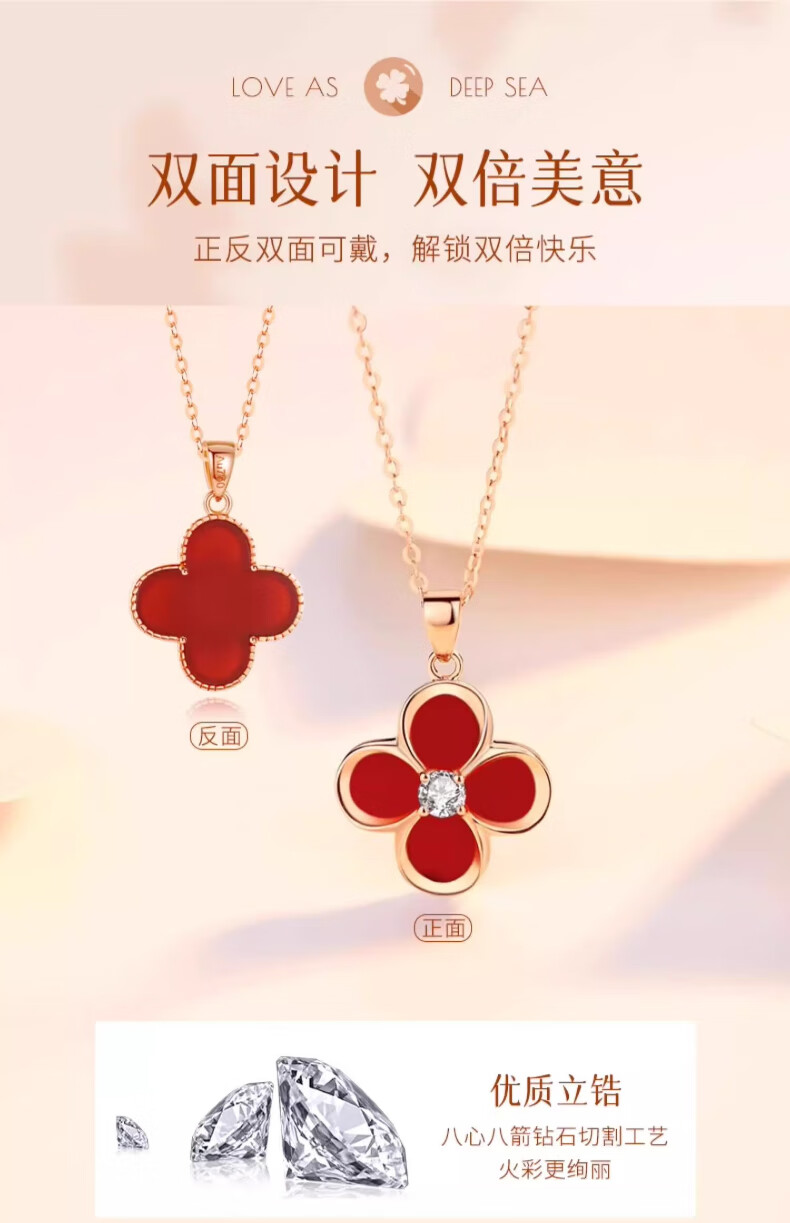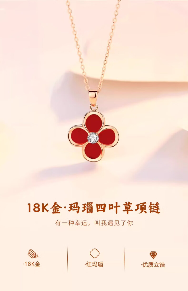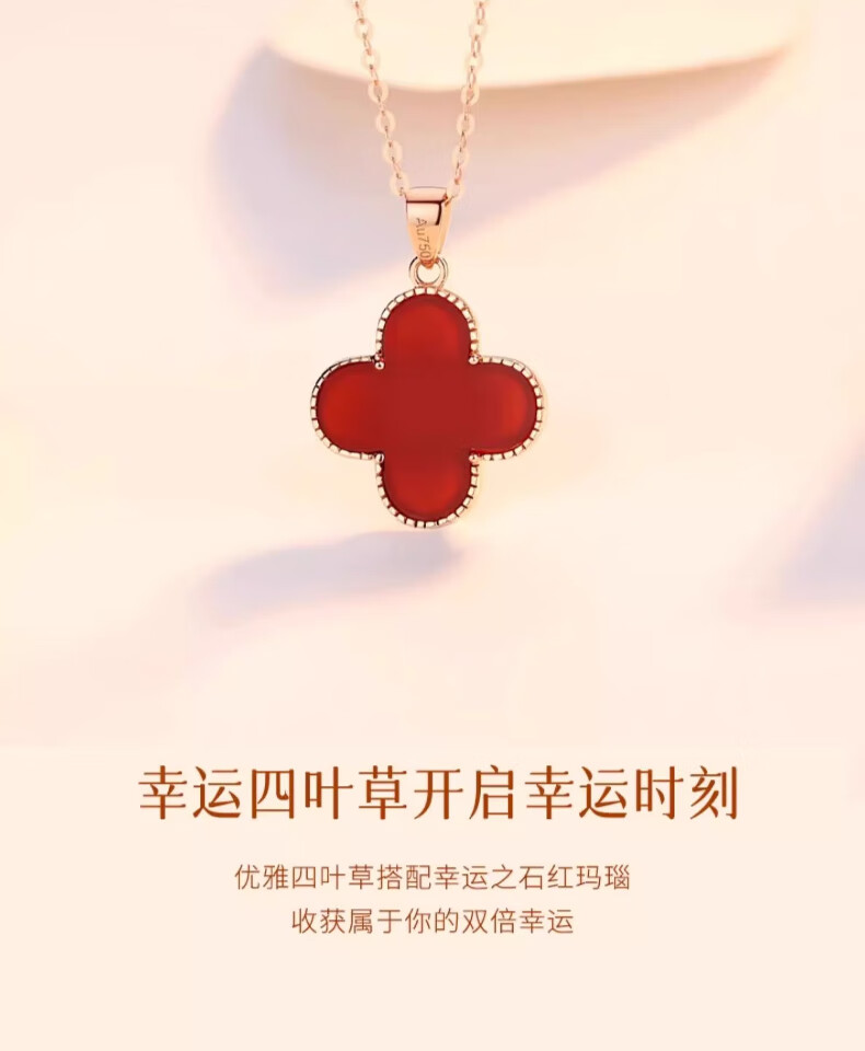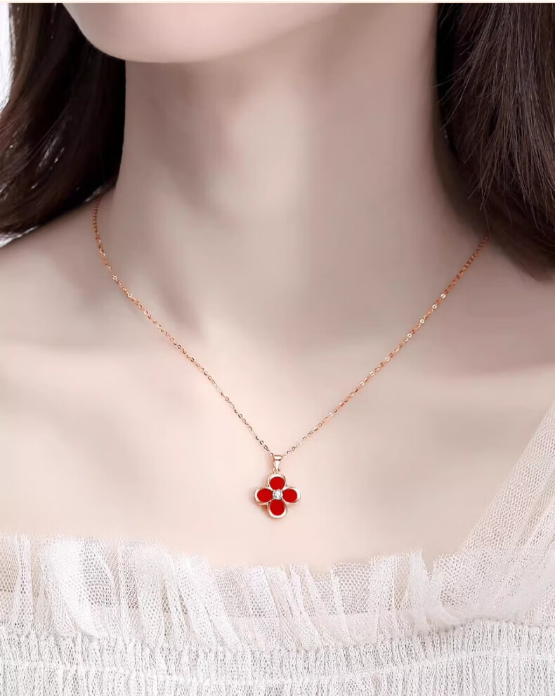 Lirokini necklace for women 18k gold four-leaf clover red agate pendant high-end niche jewelry birthday gift for girlfriend 18k gold four-leaf clover necklace brand gift box