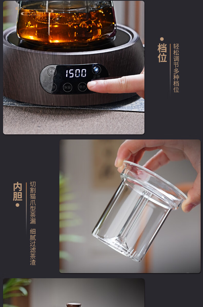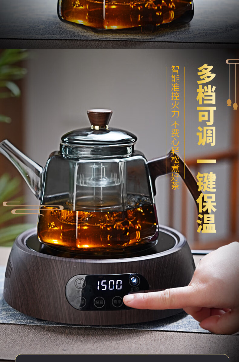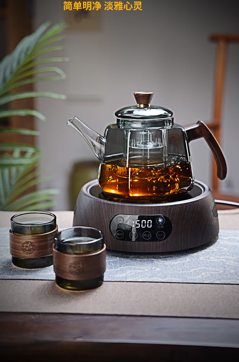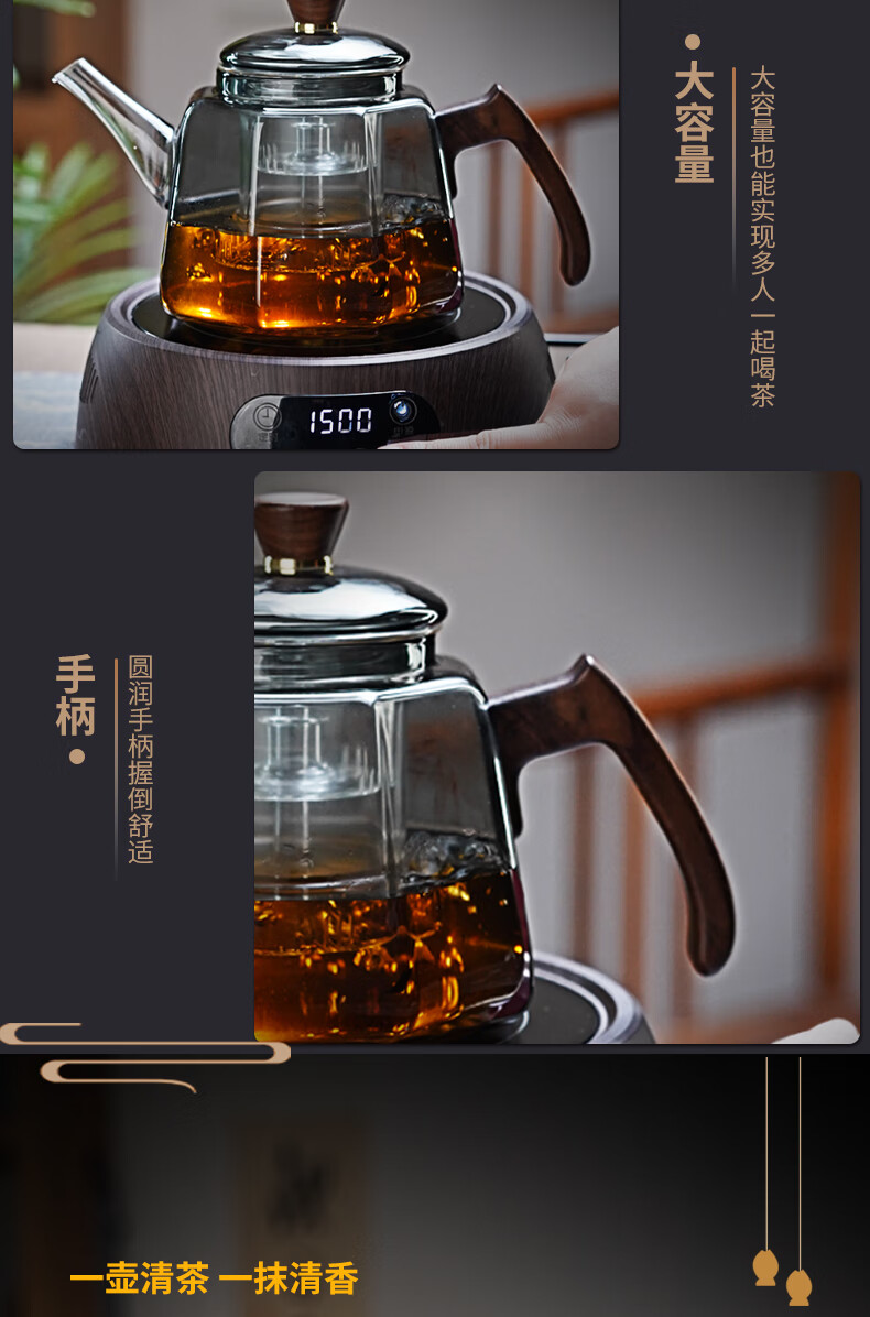 Fully high temperature resistant thickened glass tea kettle large capacity kettle side handle tea kettle household kettle Babao kettle + wooden electric ceramic stove