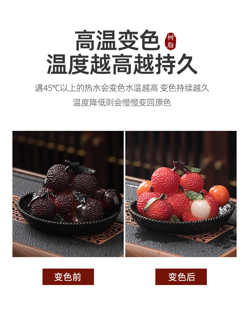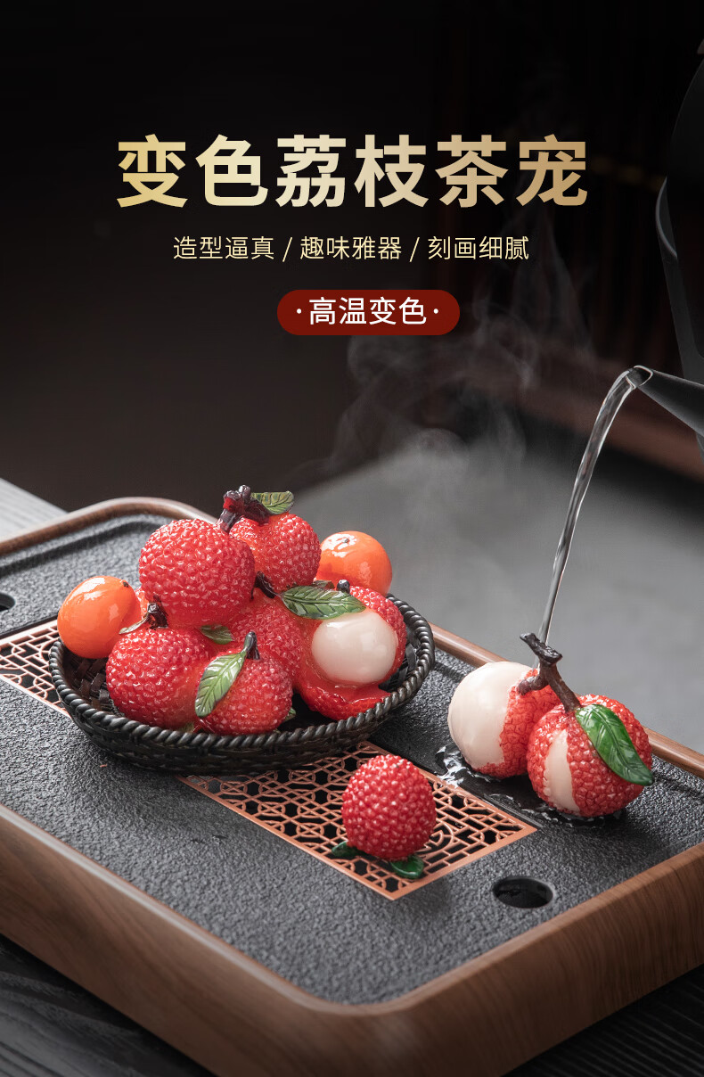 Rentang (RENTANG) fun watering color-changing lychee tea pet ornaments boutique can be used to grow tea and play tea sets accessories tea table tea table creative ornaments warm-changing lychees (2 pieces)