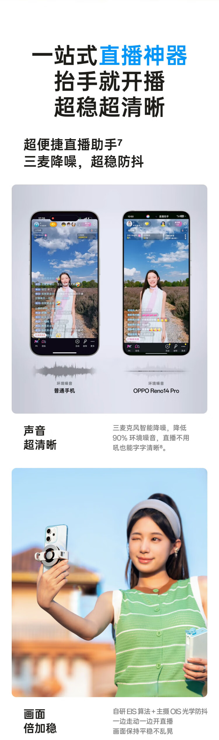 OPPO 15% national subsidy Reno14 Pro Mermaid Ji live broadcast artifact super beautiful direct screen high-definition telephoto live photos student photography AI mobile phone national supplement 16GB+512GB Mermaid Ji
