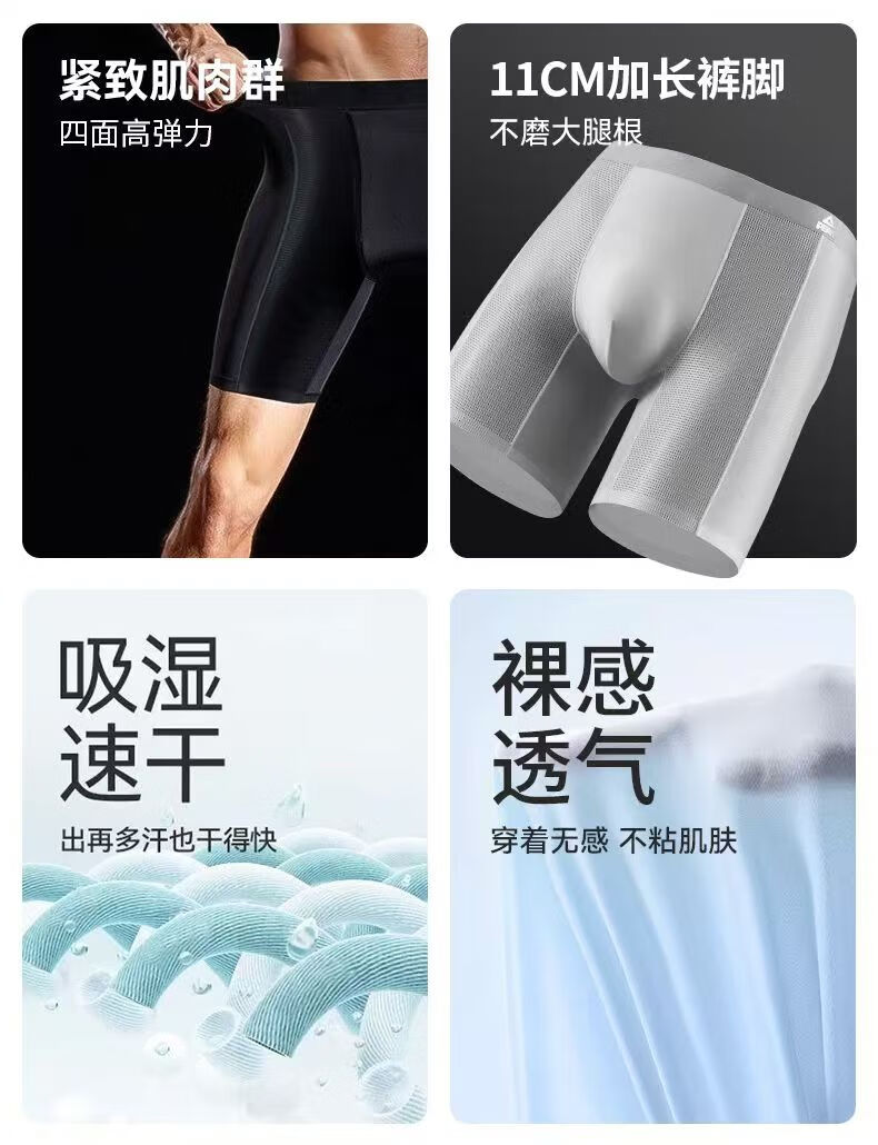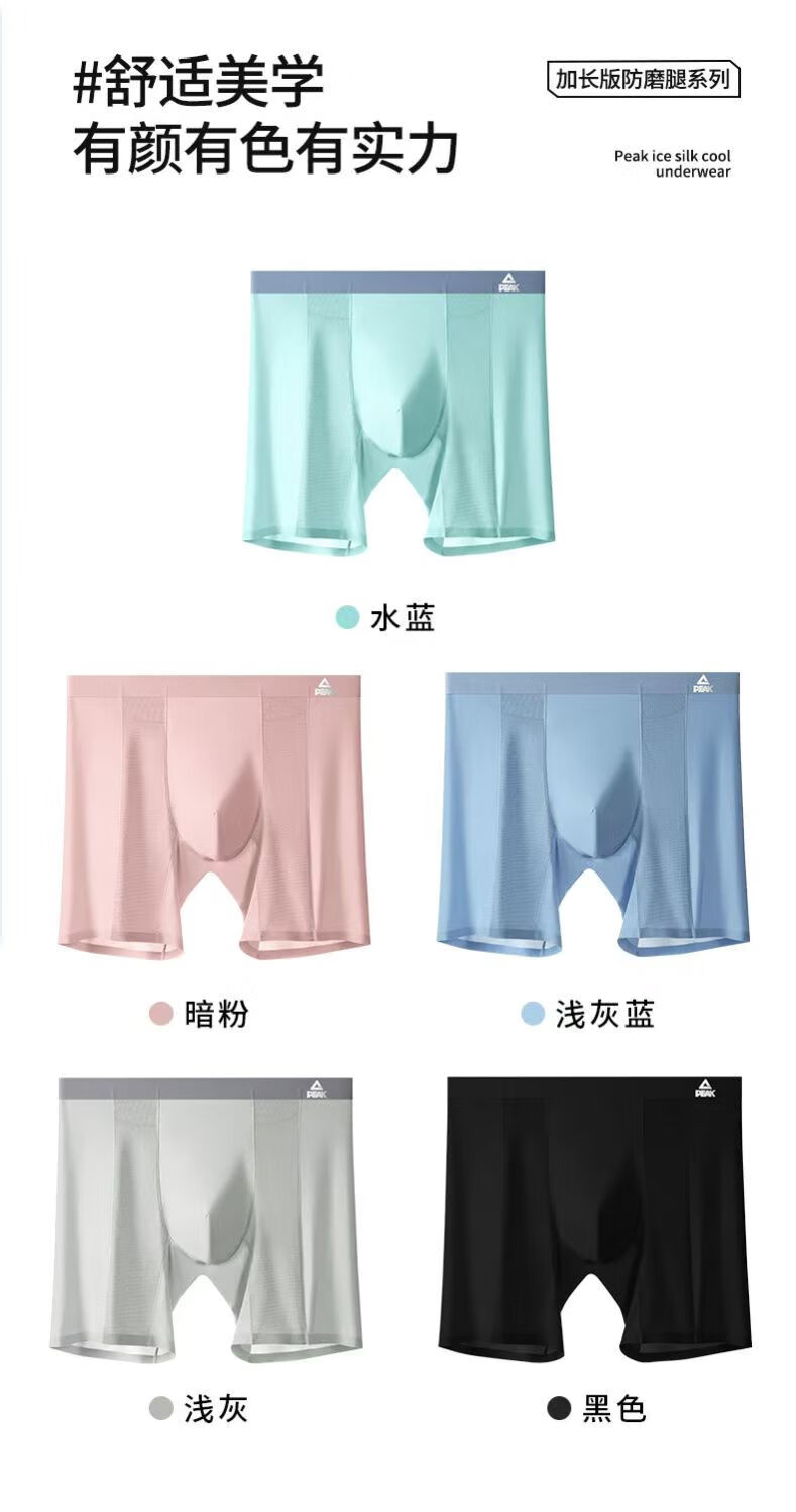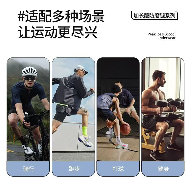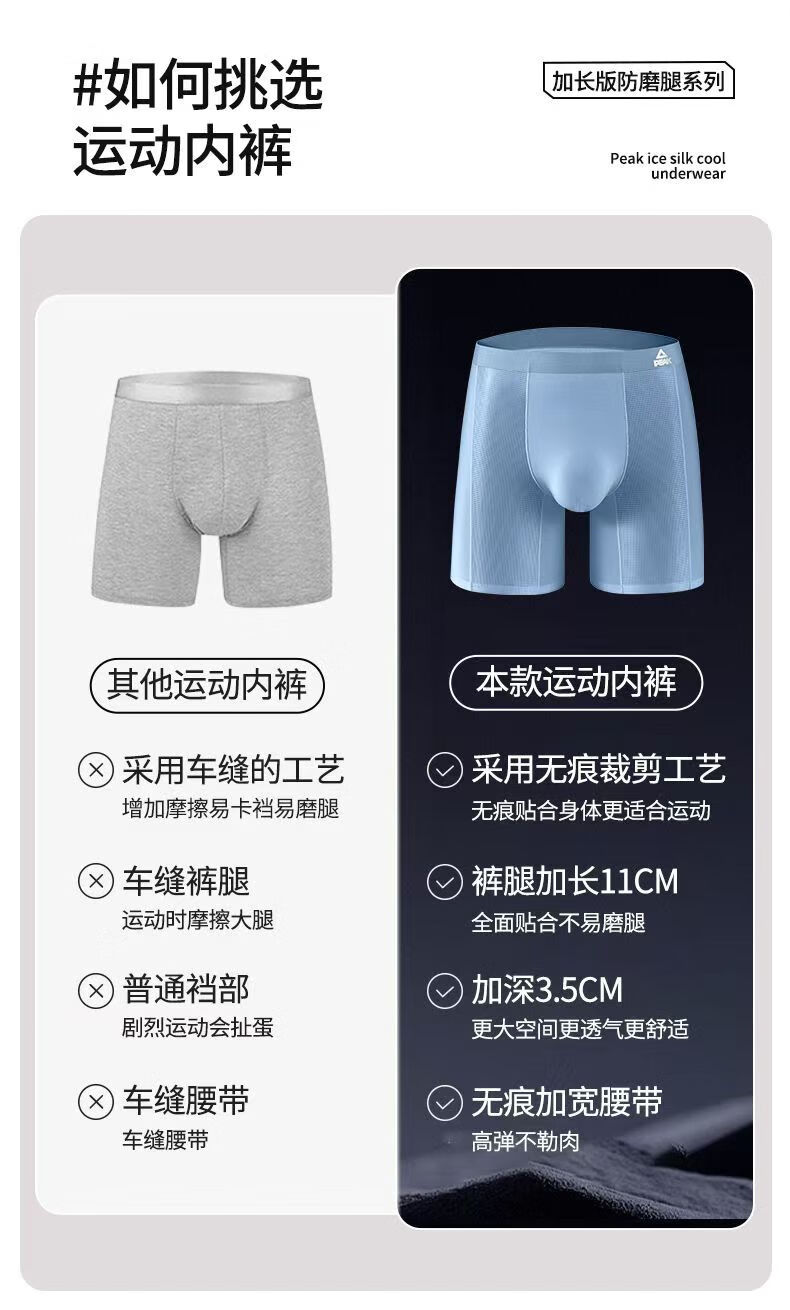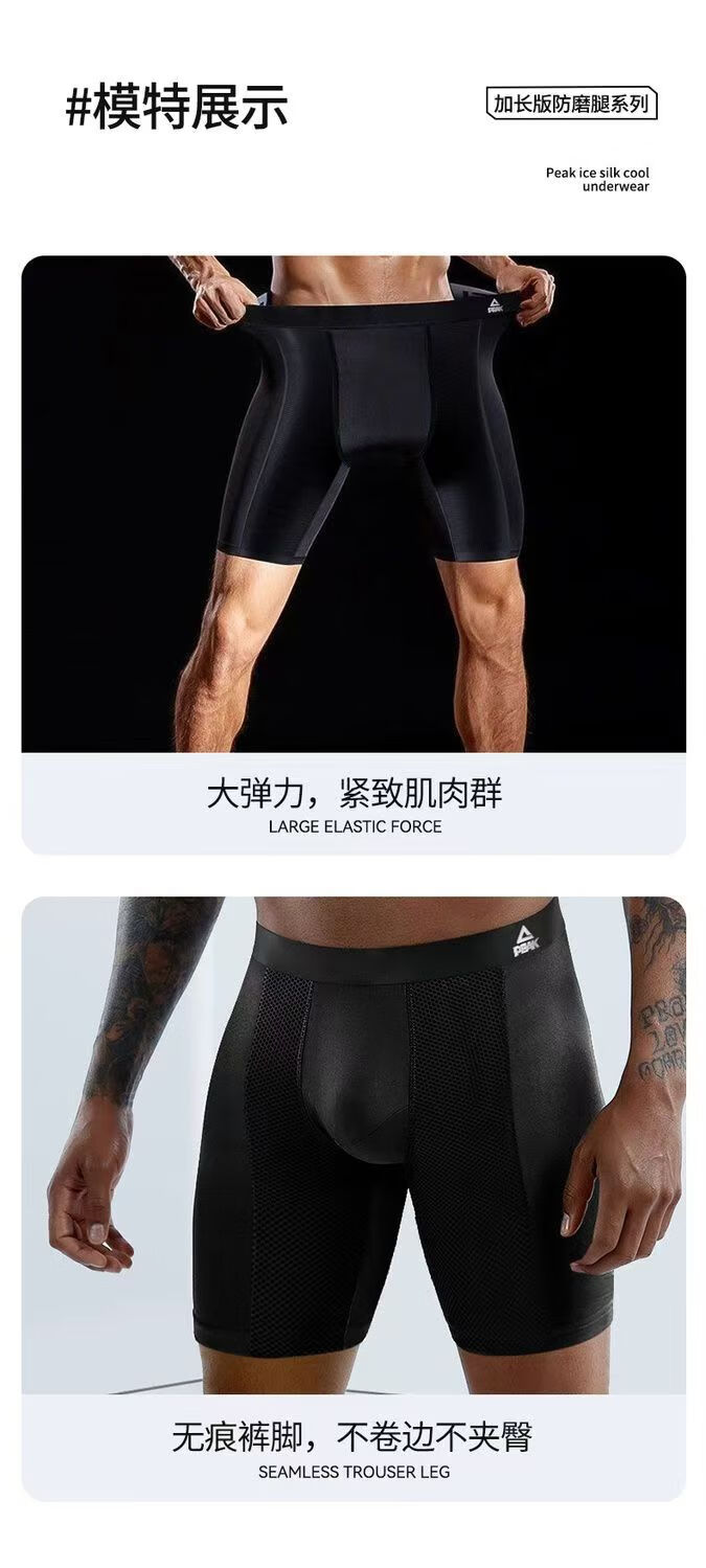Peak Men's Ice Silk Sports Underwear Extended Anti-wear Leg Crotch Quick-drying Boxer Briefs for Running Marathon Basketball Summer 2 Pack Black + Black 2XL (Suitable for 70-80 kg)