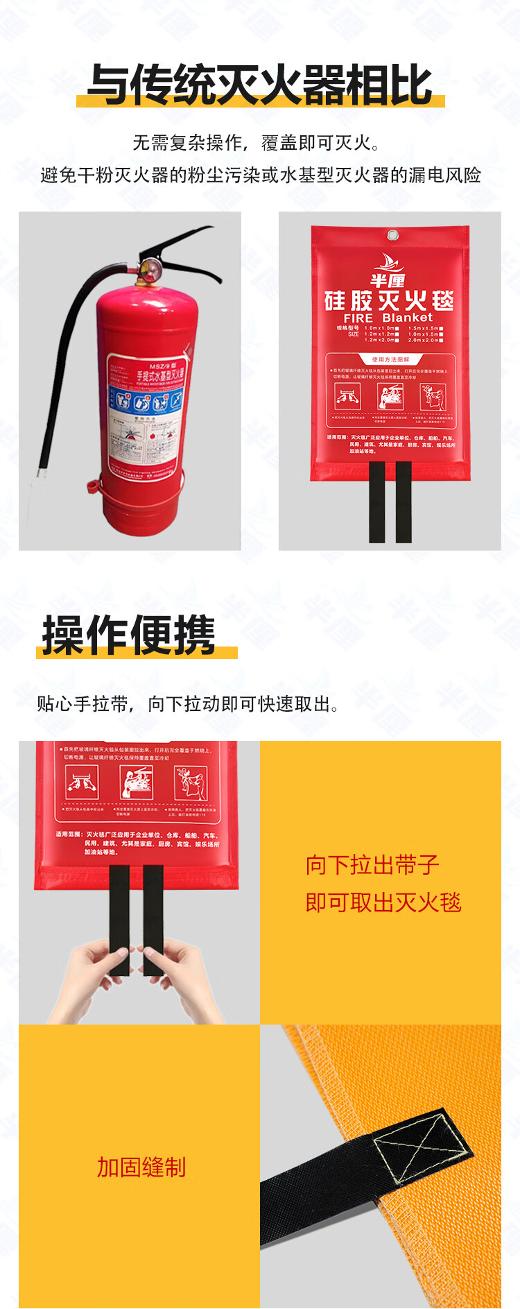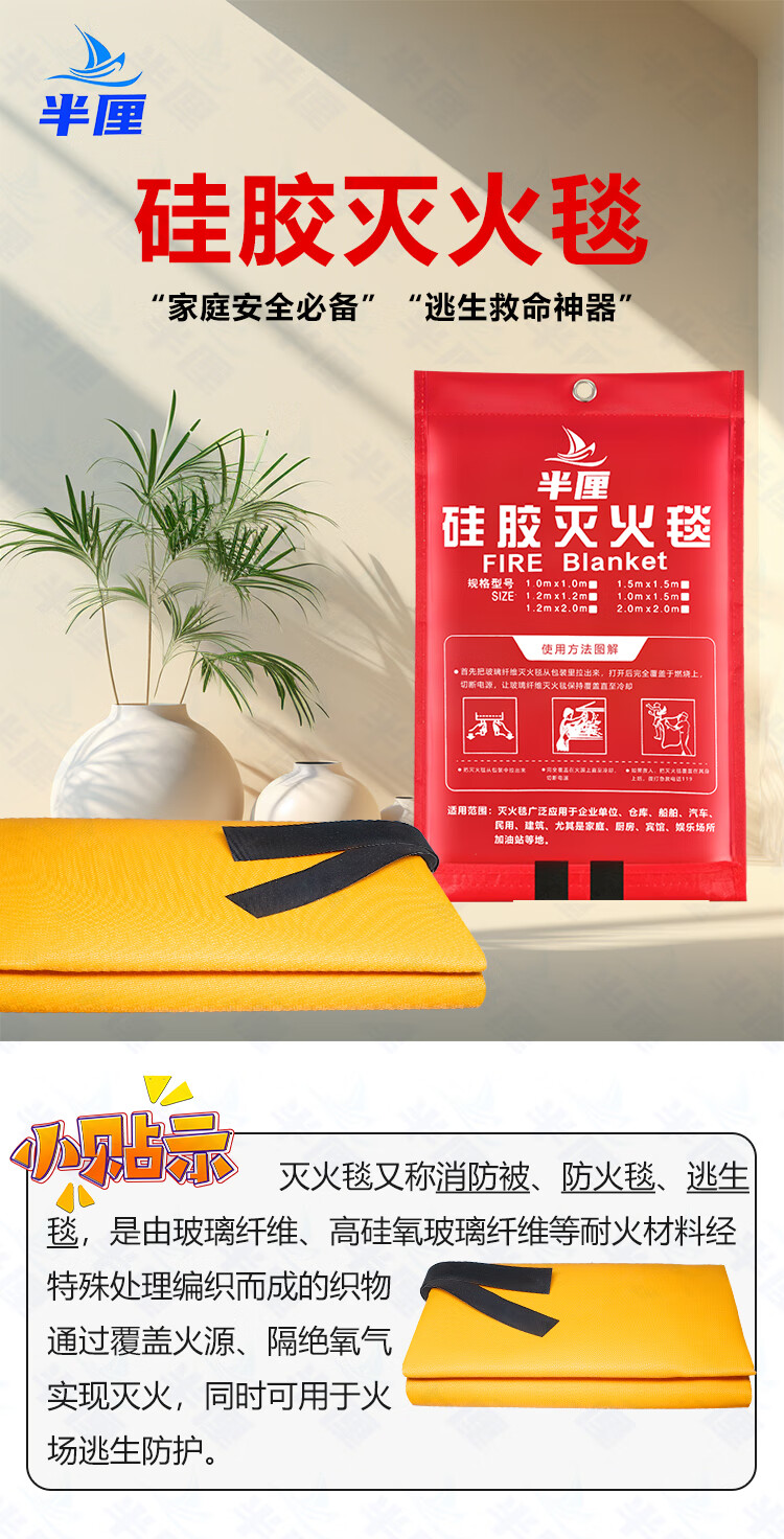 Half-centimeter fire blanket 1.2m*1.2m silicone fiberglass national standard fire blanket fire protection industrial commercial kitchen home hotel office building fire escape heat insulation flame retardant high resistance silicone fiberglass cloth 1.2m*1.2m