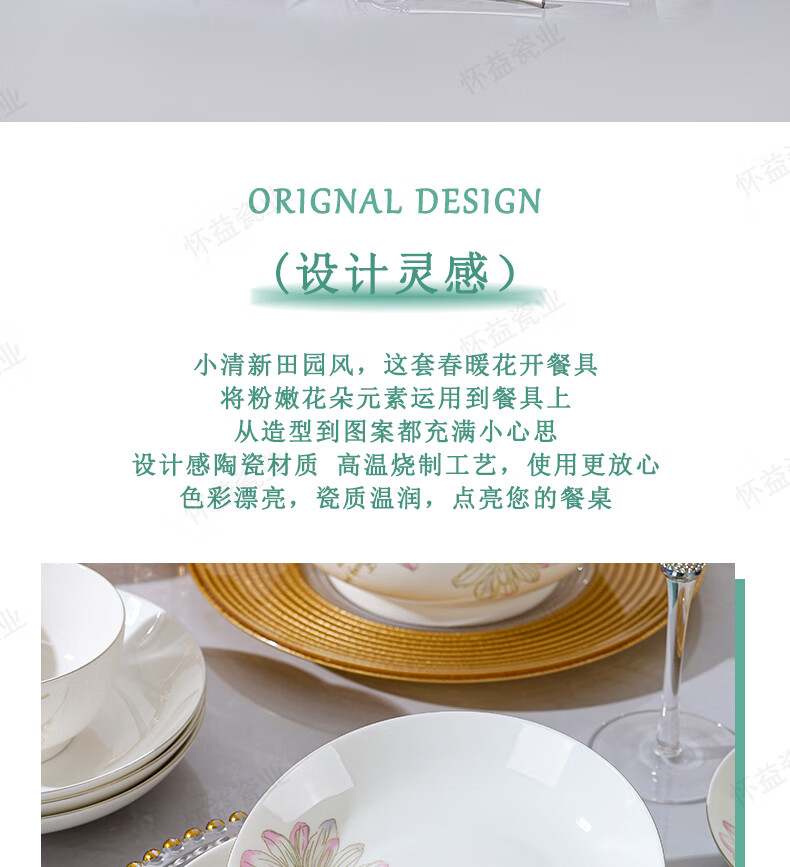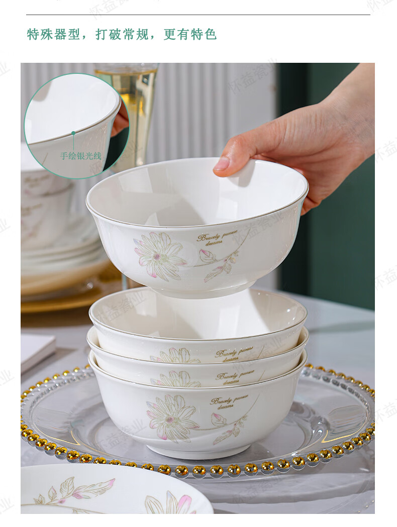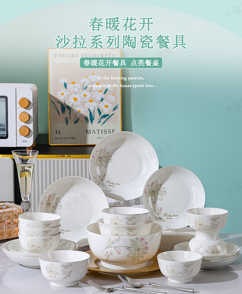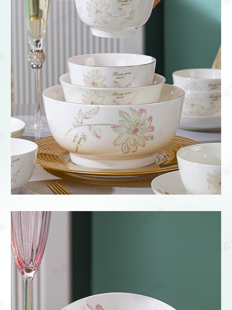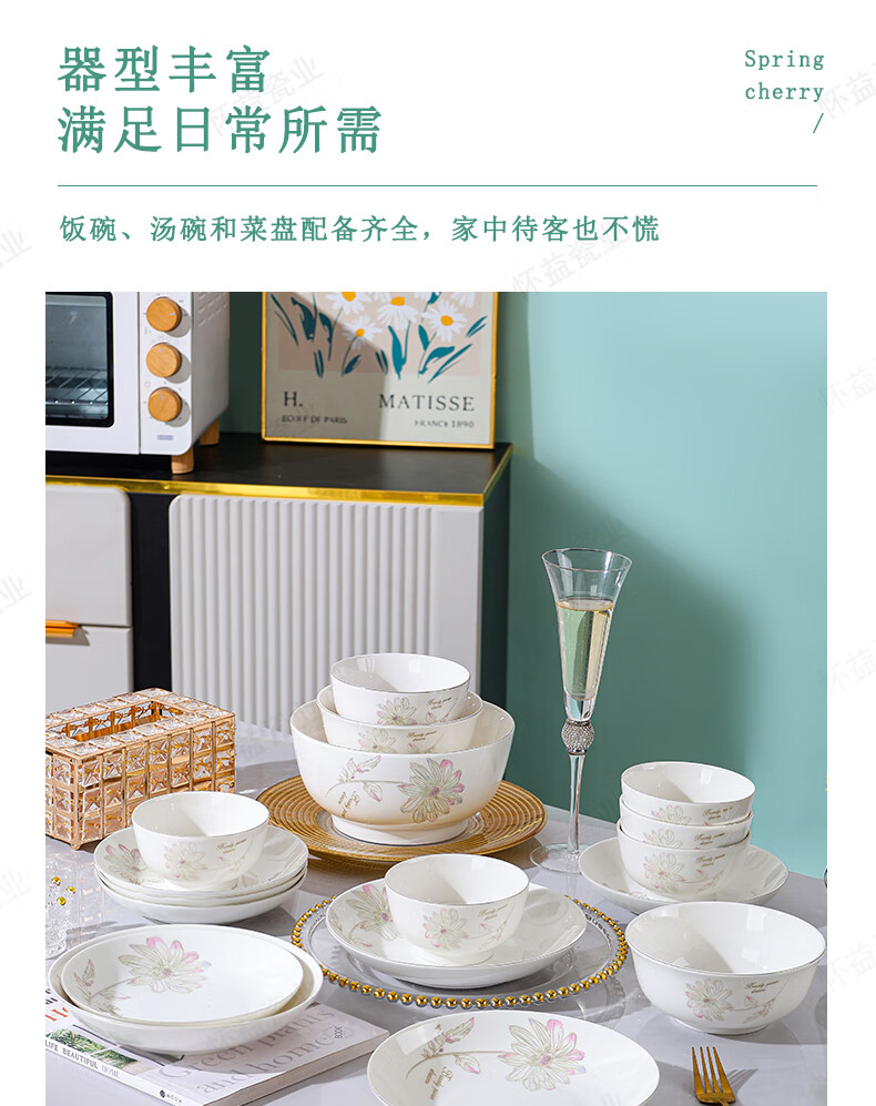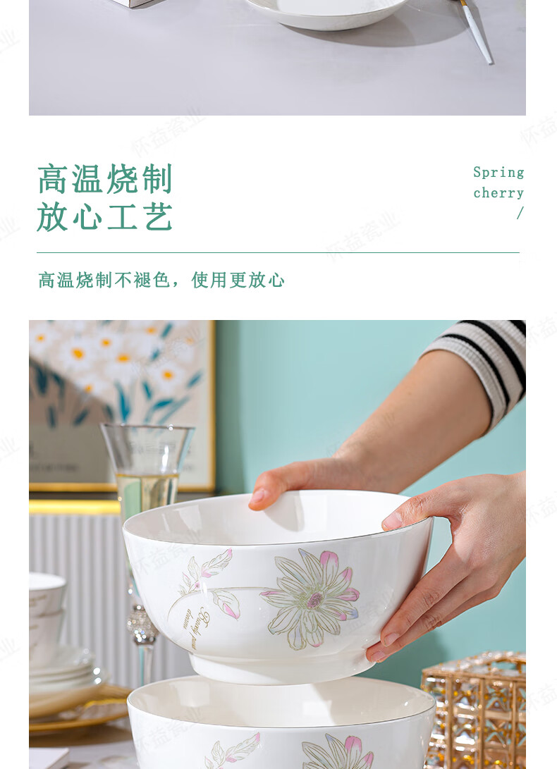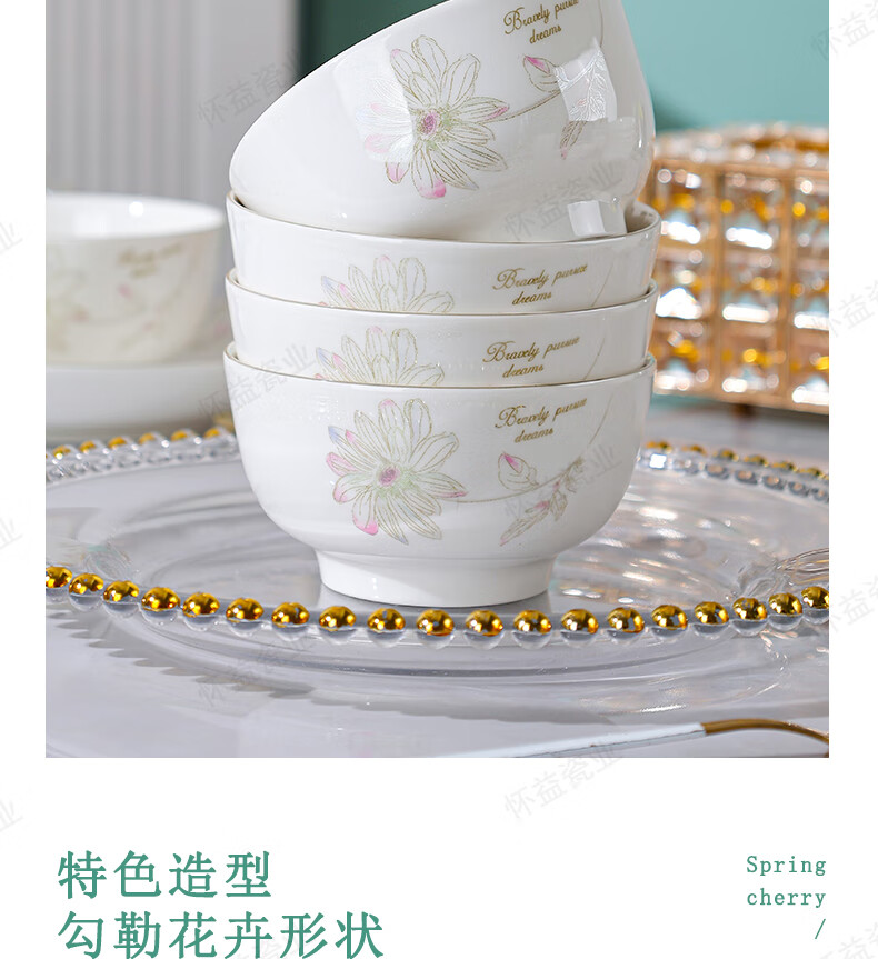 New bone china Chun Nuan Hua Kai series tableware bowls and plates exquisite porcelain set Chun Nuan Hua Kai 4.5-inch salad bowl 1 piece