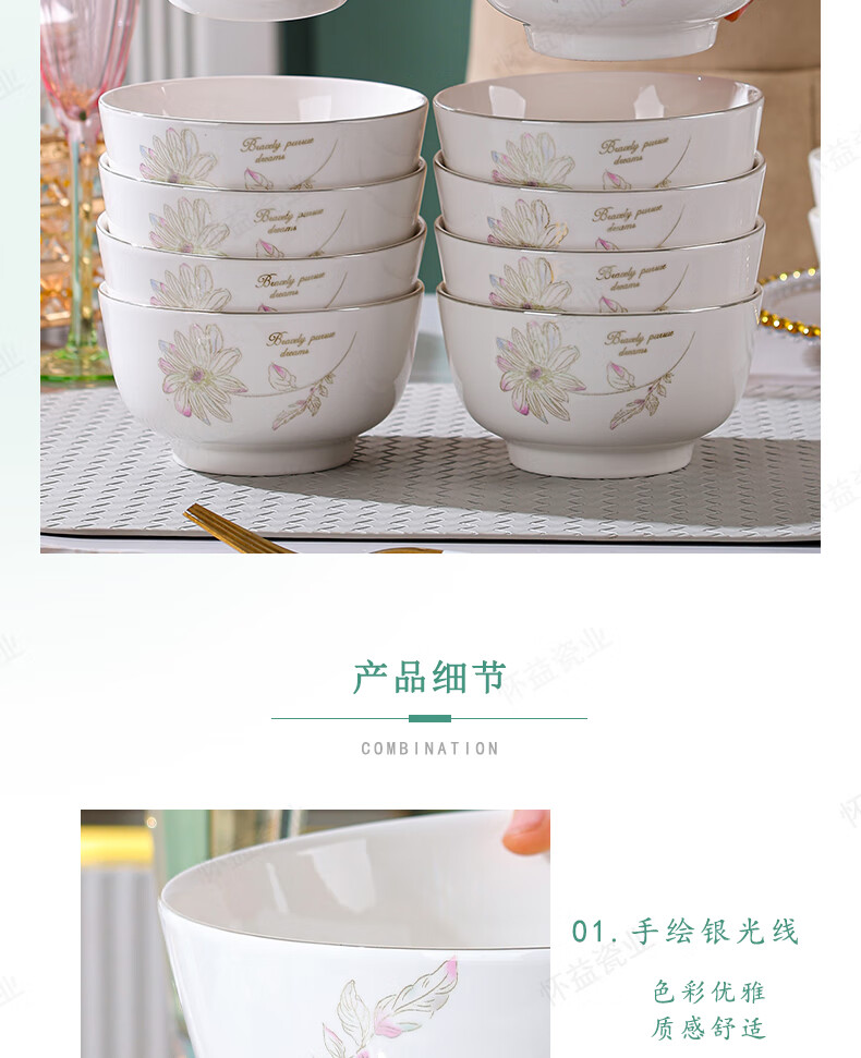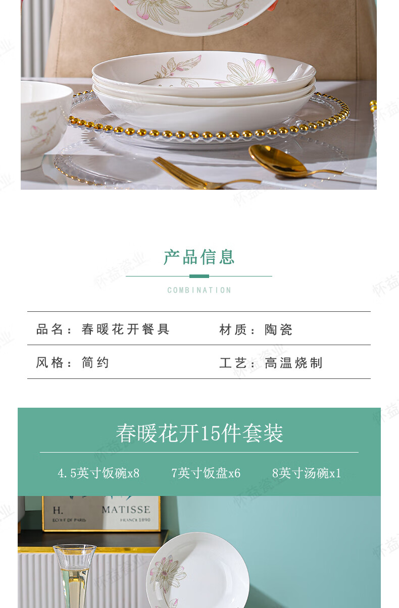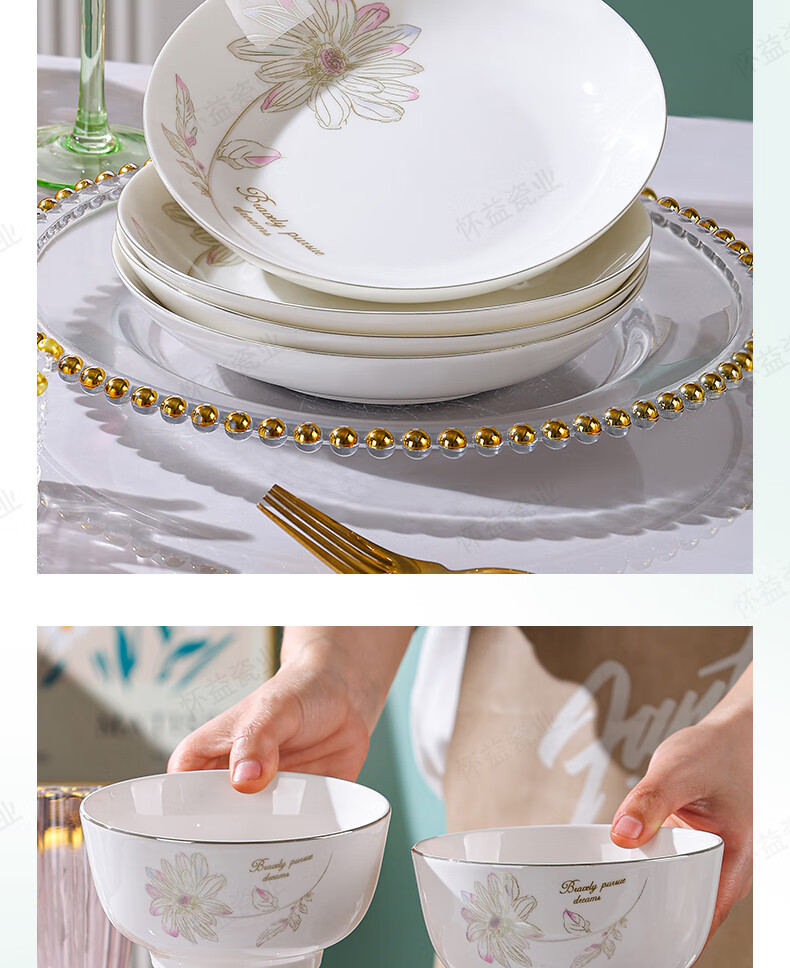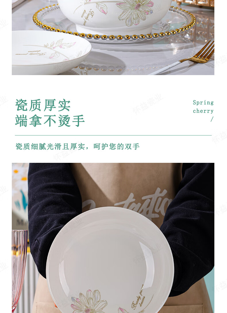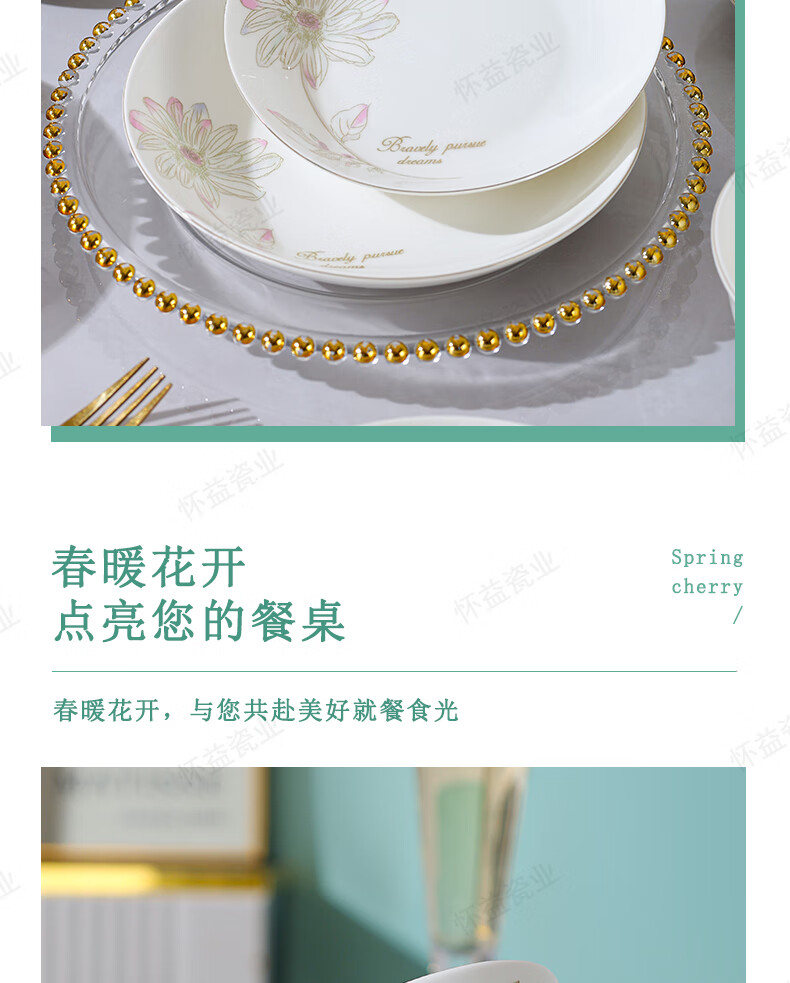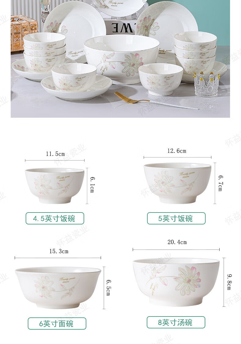 New bone china Chun Nuan Hua Kai series tableware bowls and plates exquisite porcelain set Chun Nuan Hua Kai 4.5-inch salad bowl 1 piece