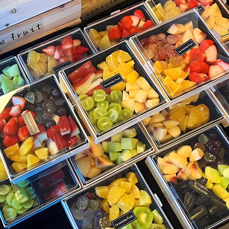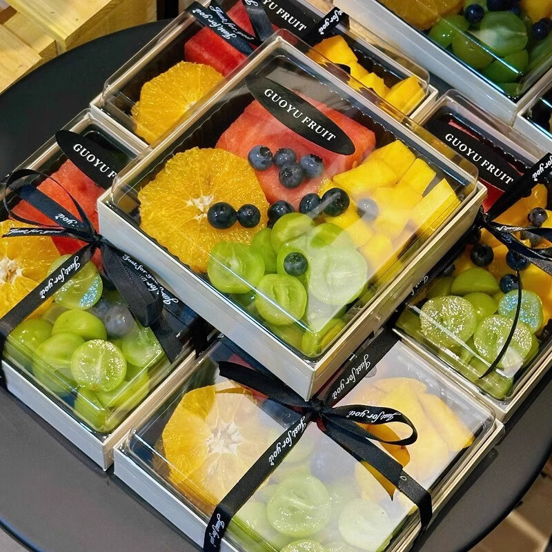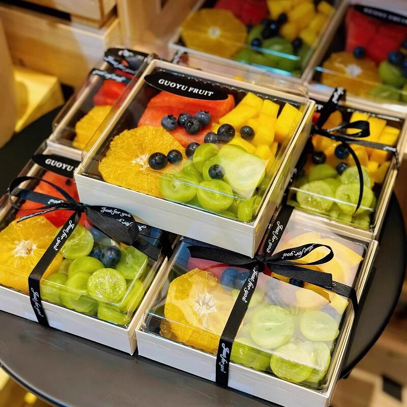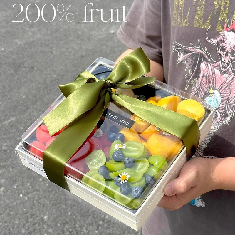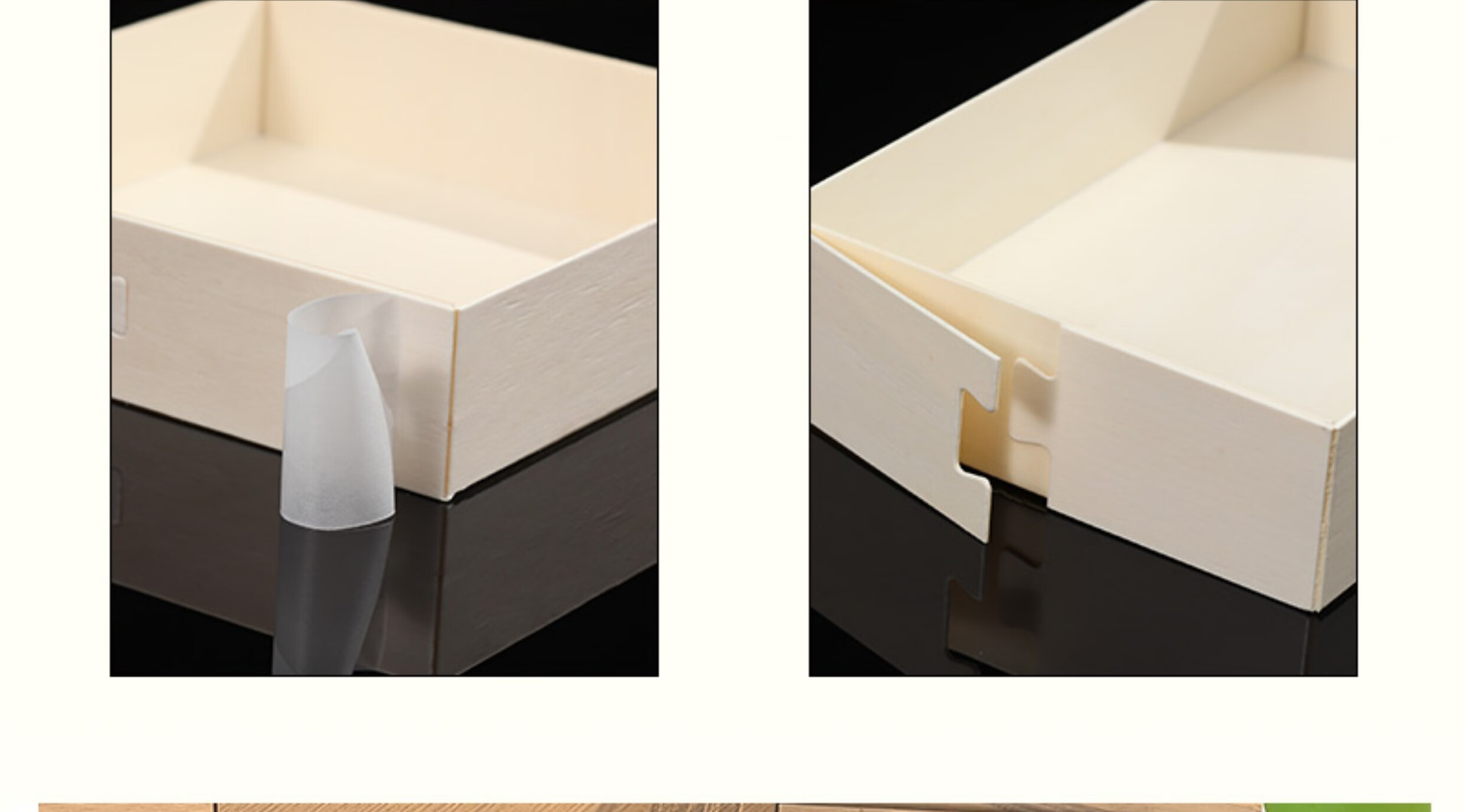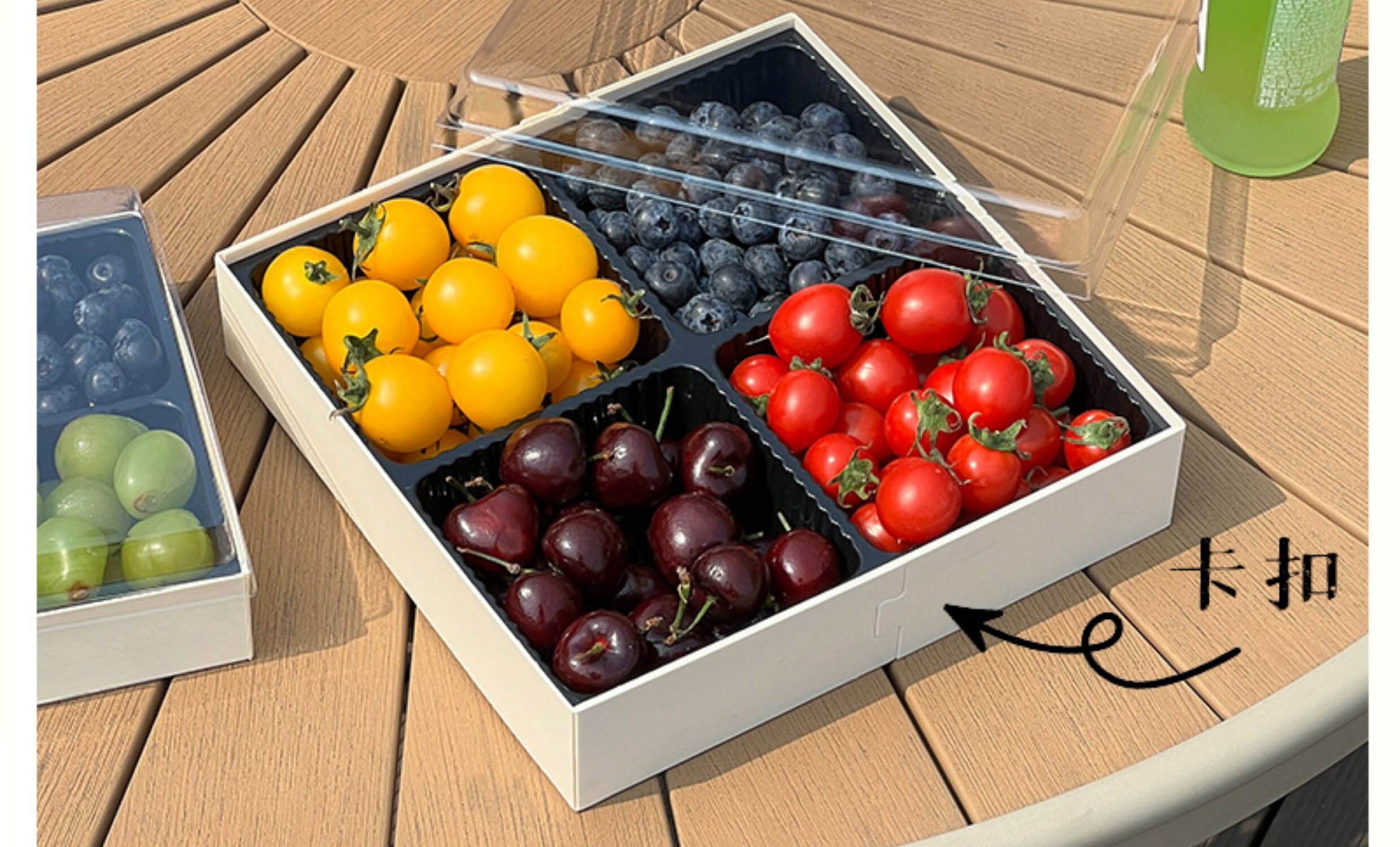 Le Xicong disposable fruit cutting packaging box dessert four-grid wooden paper high-end packaging box sushi sashimi packaging box four-grid wooden packaging box 18cm 10 pieces with ribbon