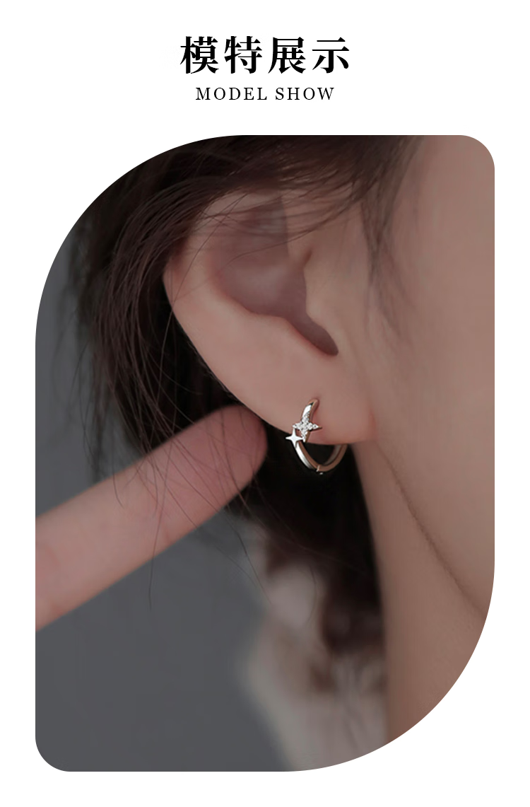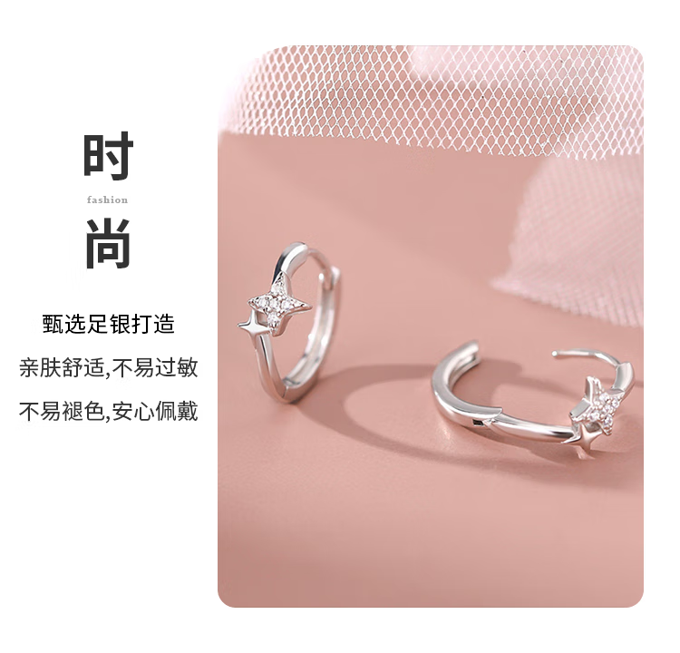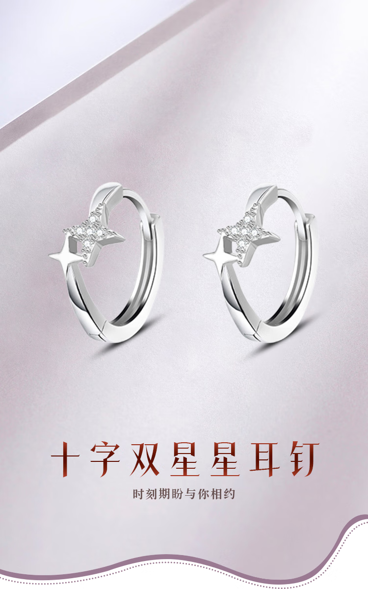 Lao Fengxiang pure silver cross double star earrings women's earrings jewelry light luxury niche Valentine's Day birthday gift for girlfriend when/next day delivery - pure silver cross double star earrings