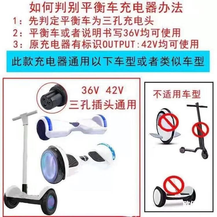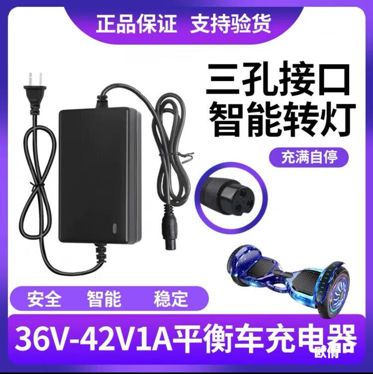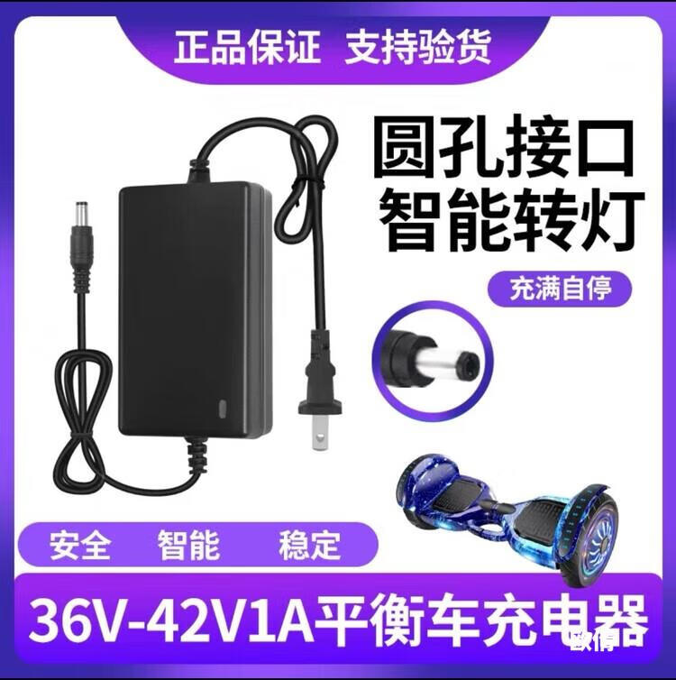 Electric balance car charger universal intelligent protection two-wheel lithium battery 36V three-hole DC round hole plug Arlang 42V1A type with cable 36V/42V2A balance car charger aviation flagship model