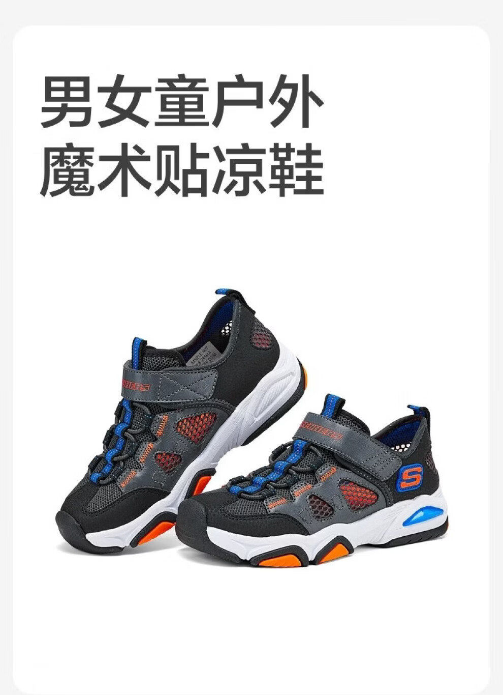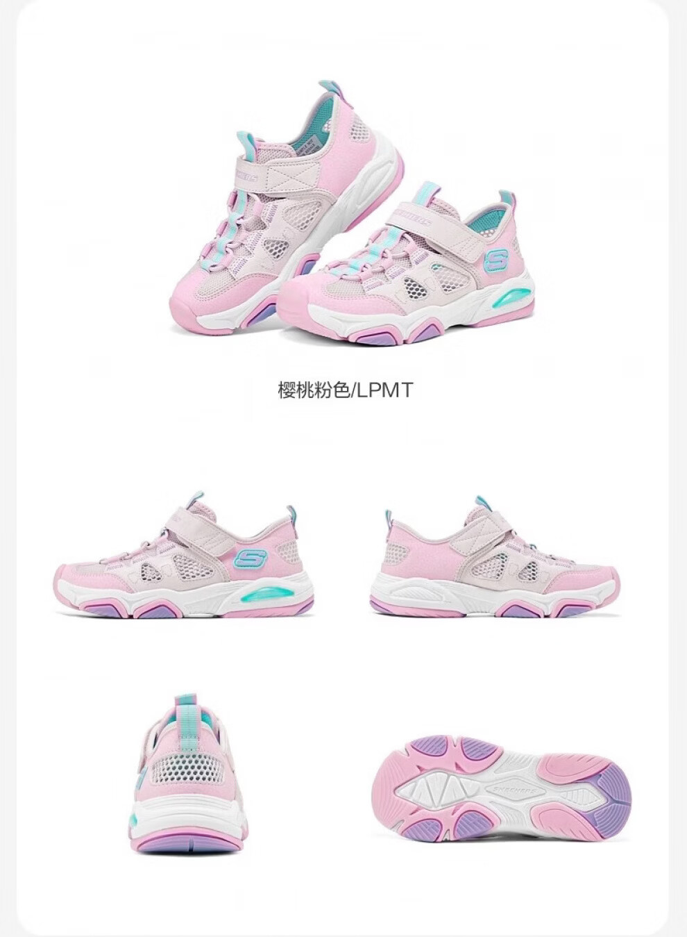 Skechers Skechers small armor sandals outdoor river sandals children's soft and comfortable versatile toe-toe sandals 319202L girls/natural color/multi-color/NTMT 36