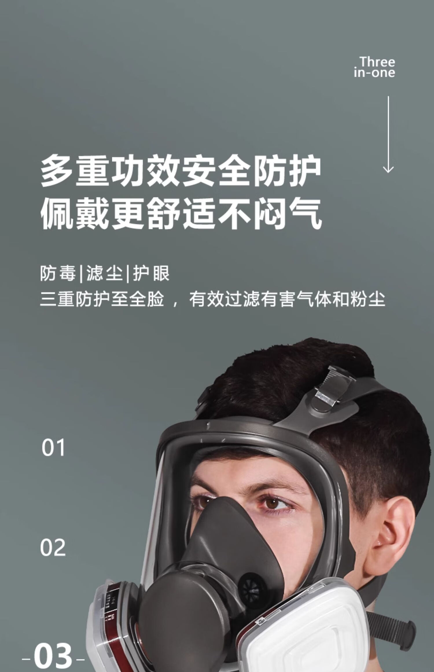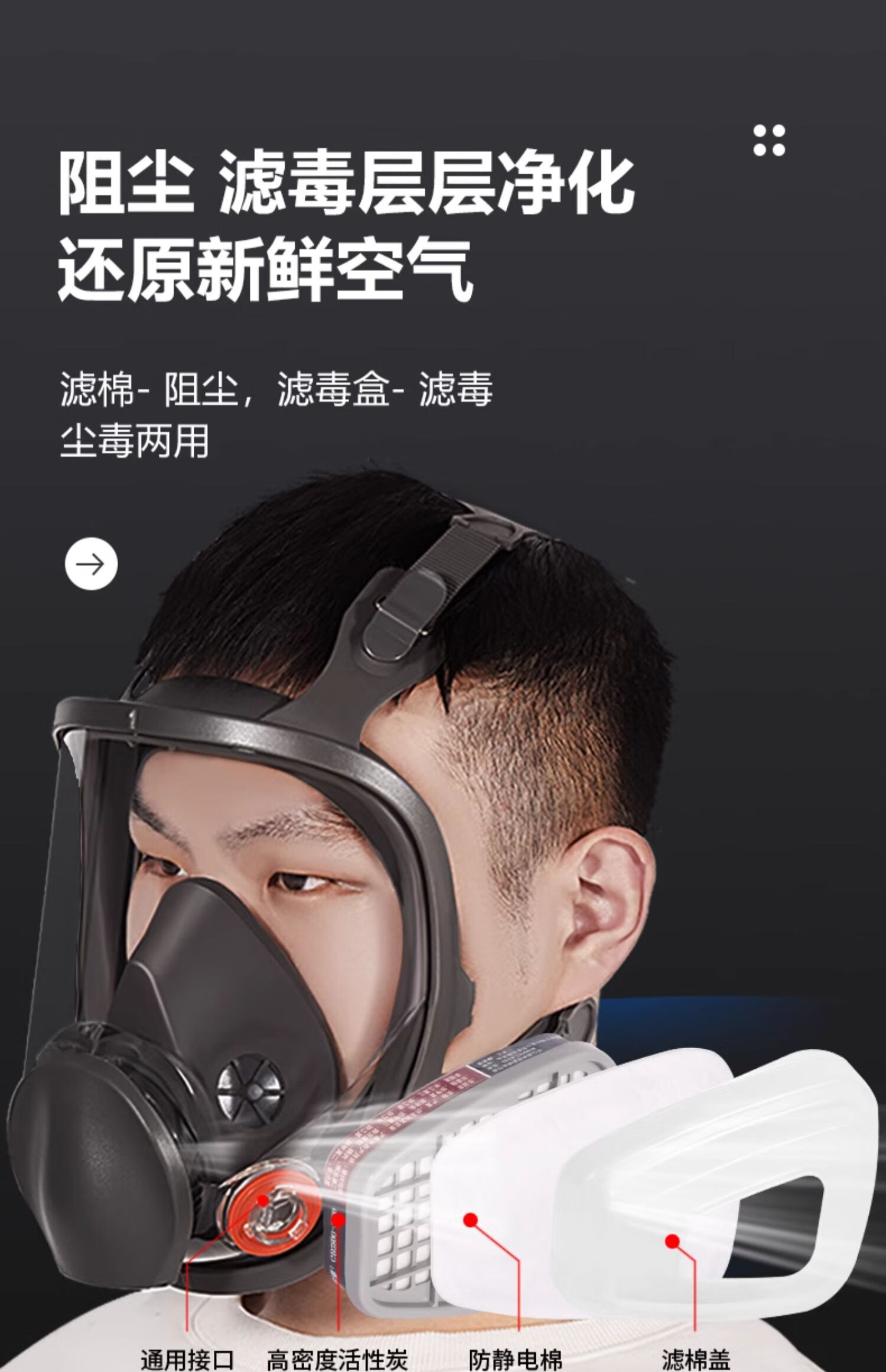 Gas mask, carbon monoxide, poisonous gas spray paint, smoke mask, dust mask, industrial dust, advanced full face protection, toxic chemical gas special fire escape G500 mask + No. 3 box dust and poison + 20 pieces of KN95 filter cotton