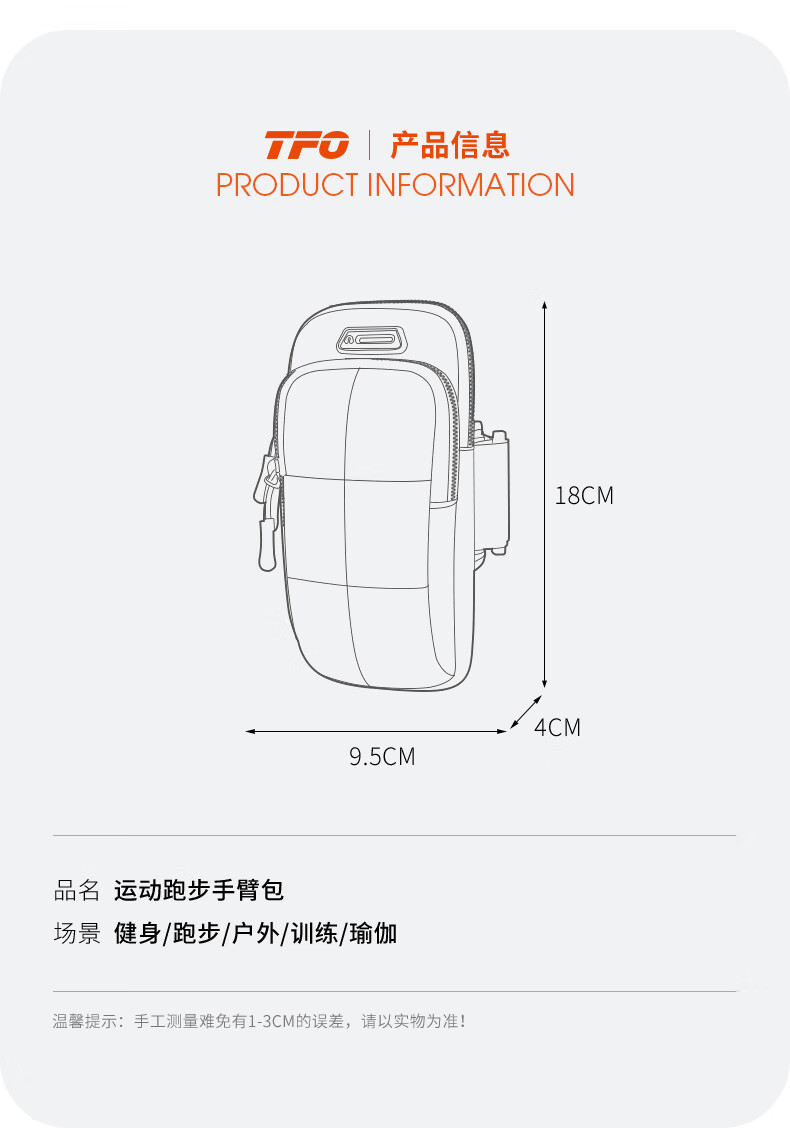 TFO running arm bag, outdoor fitness phone bag, wrist arm sleeve, casual small bag, sports storage bag, gray