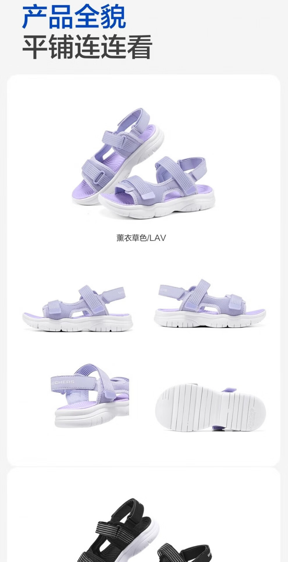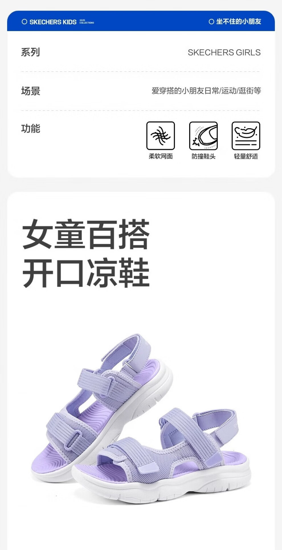 Skechers Skechers Girls' Versatile Open Sandals Children's Summer Velcro Casual Open-Toe Beach Shoes 319203L Lavender/LAV 36