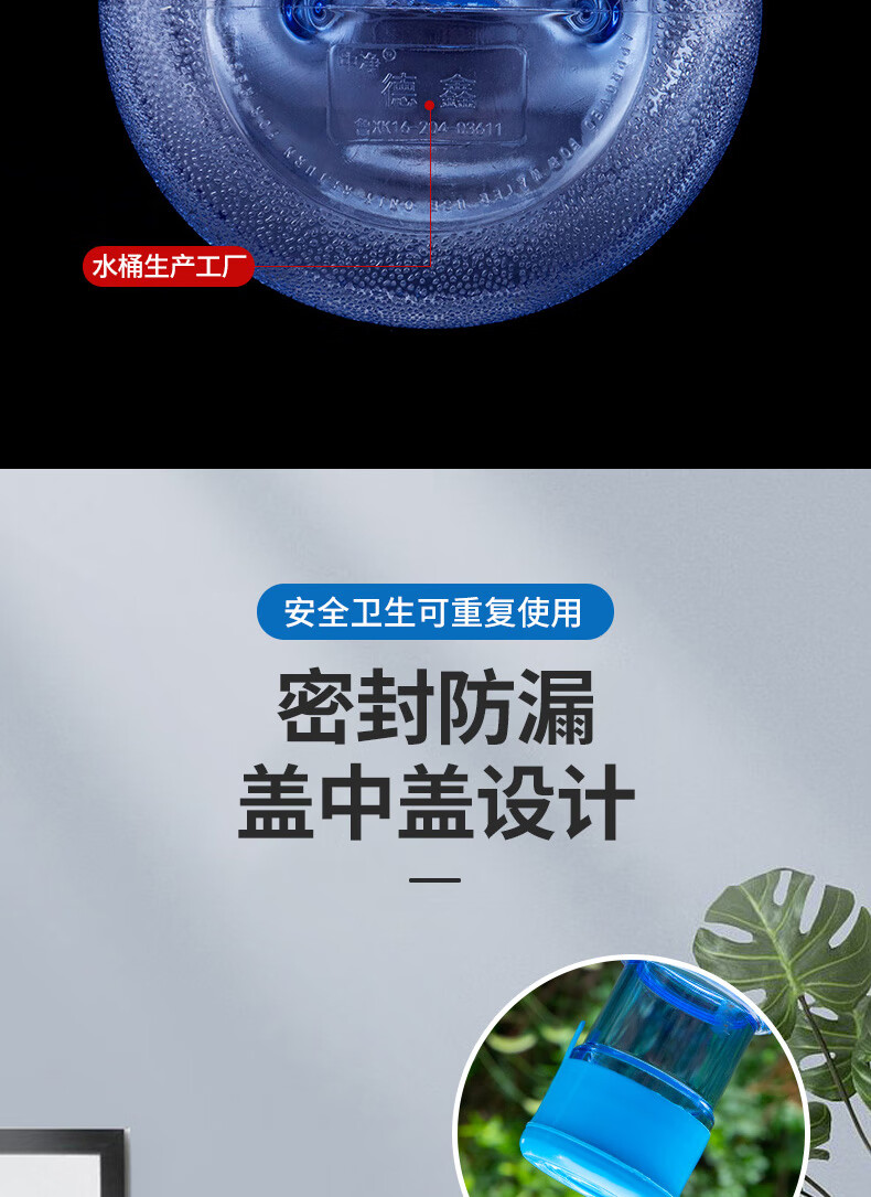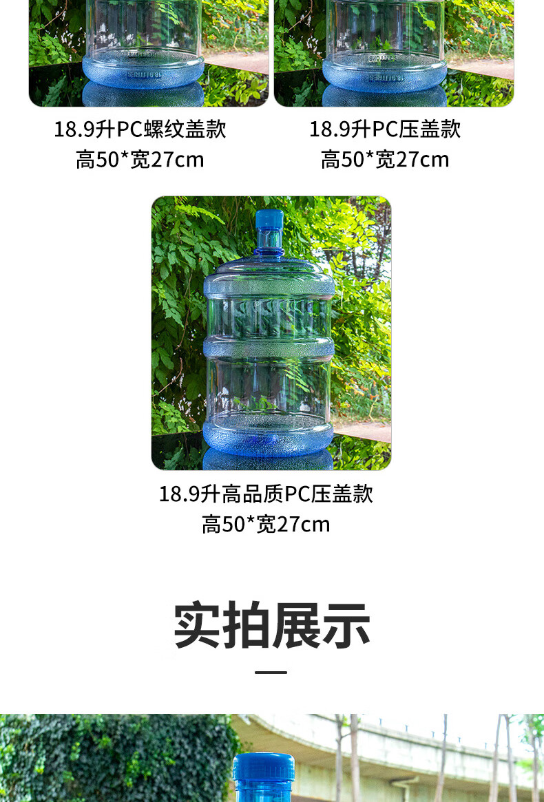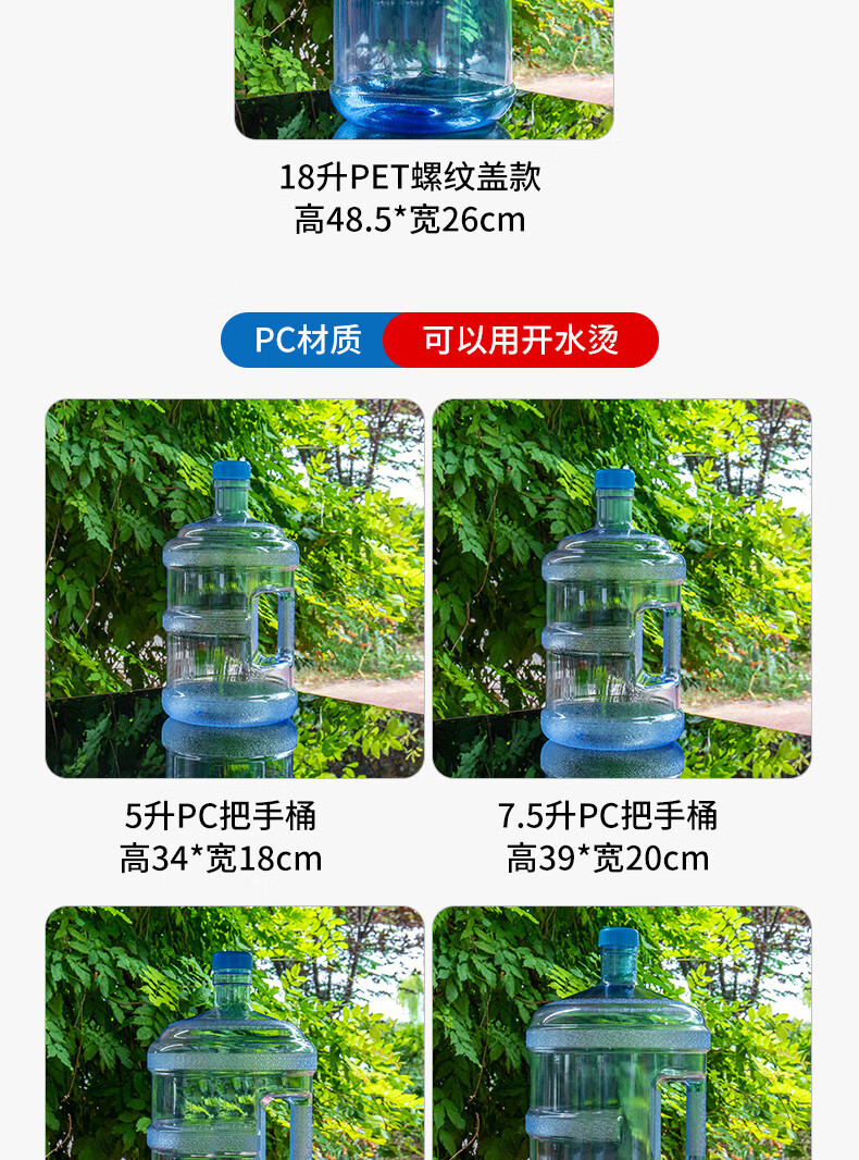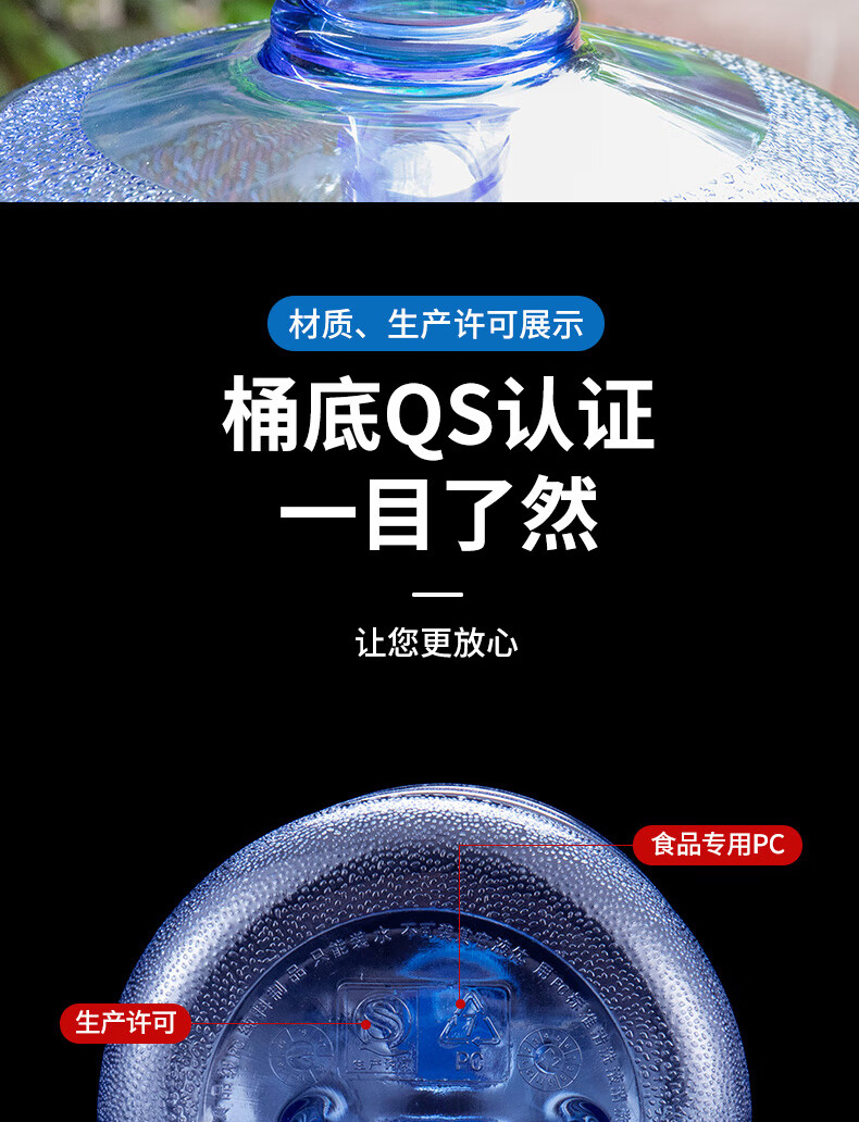Jiwen water dispenser barrel mineral water barrel empty barrel household pure water barrel with lid thickened large barrel car drinking water barrel PC tempered (threaded cover) 18900ml
