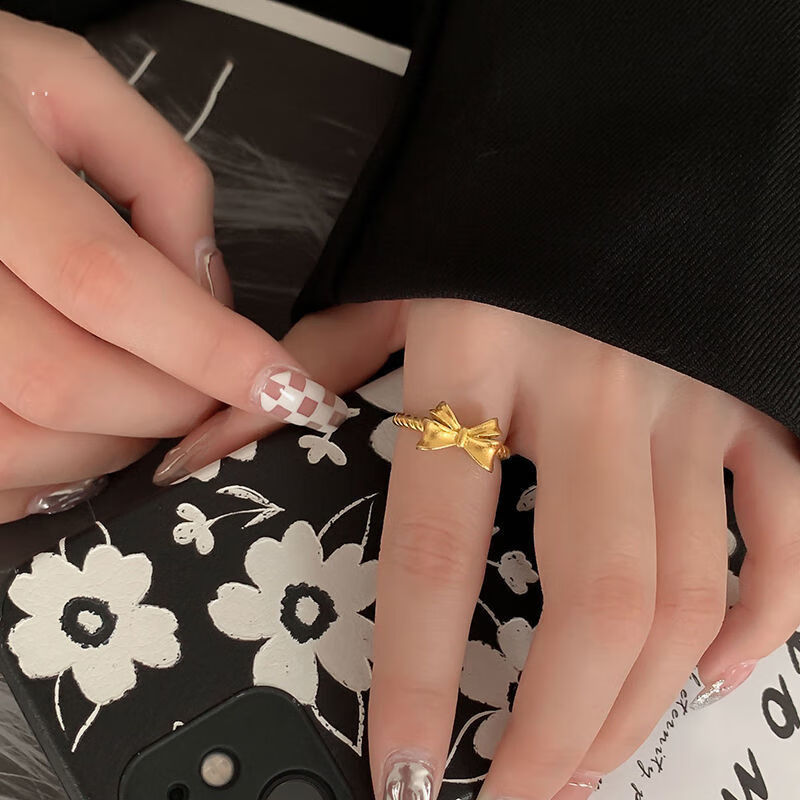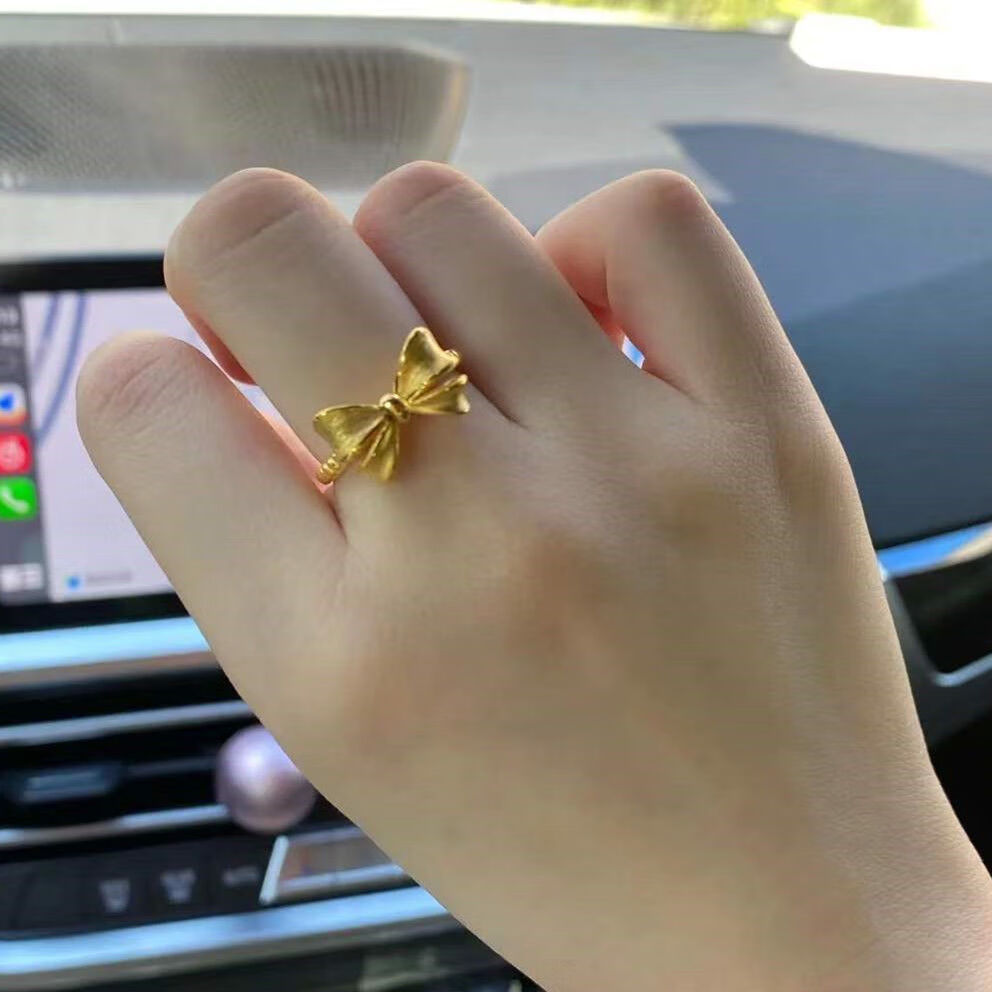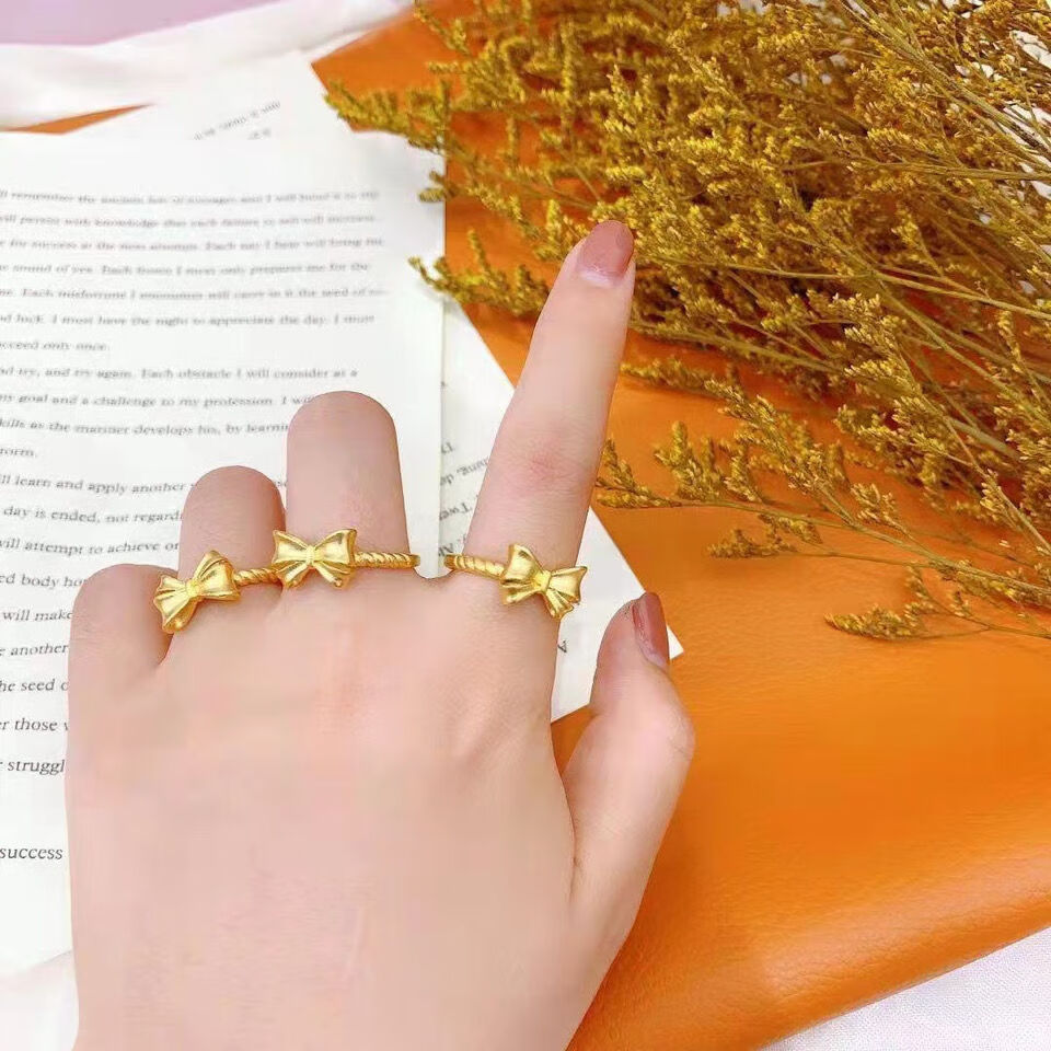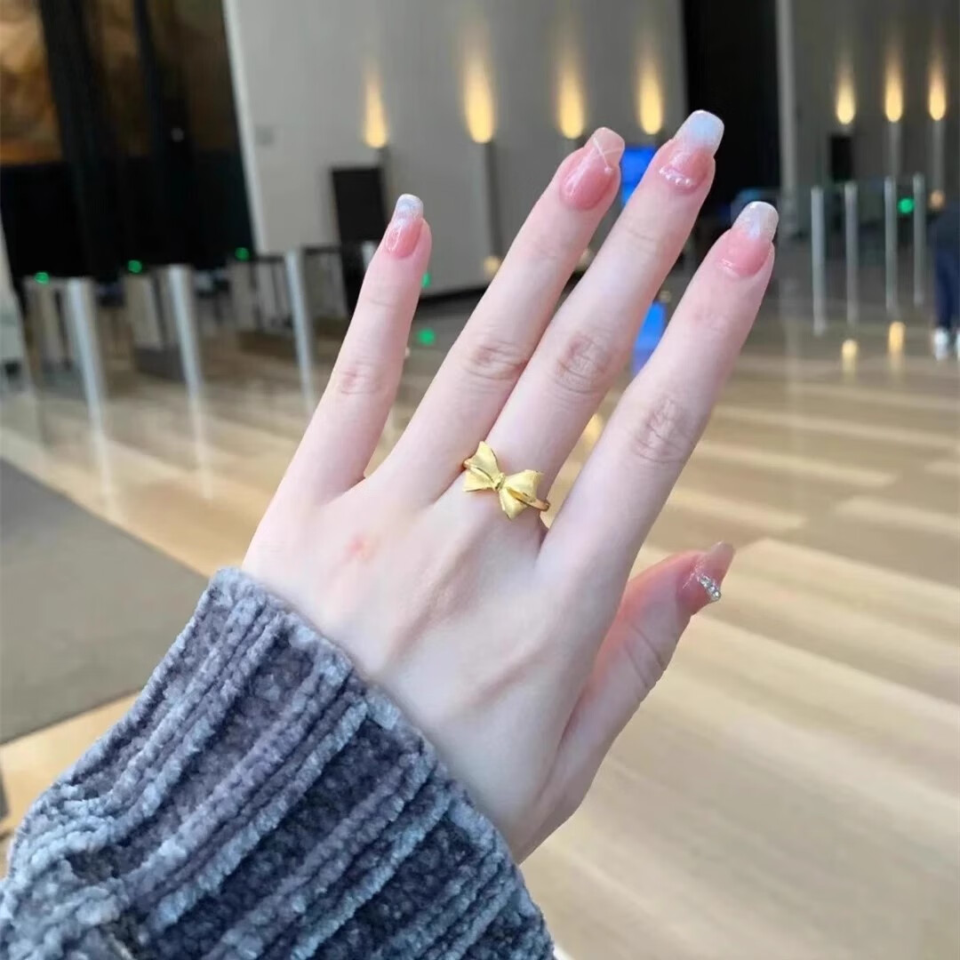 Half Vietnamese sand gold ring for women, butterfly ending ring, girl gift, high-end niche, simple and fashionable gift for girlfriend, bow ring